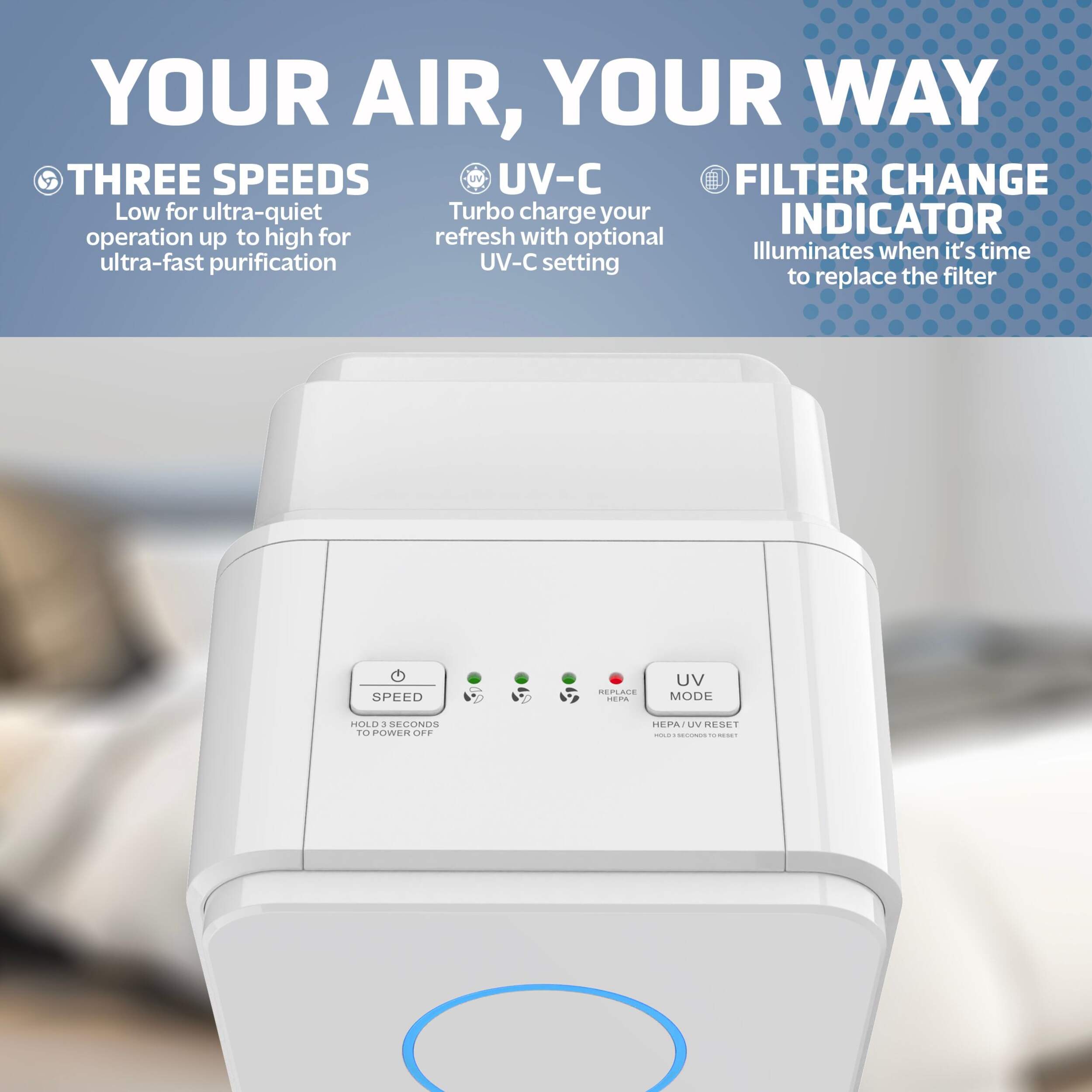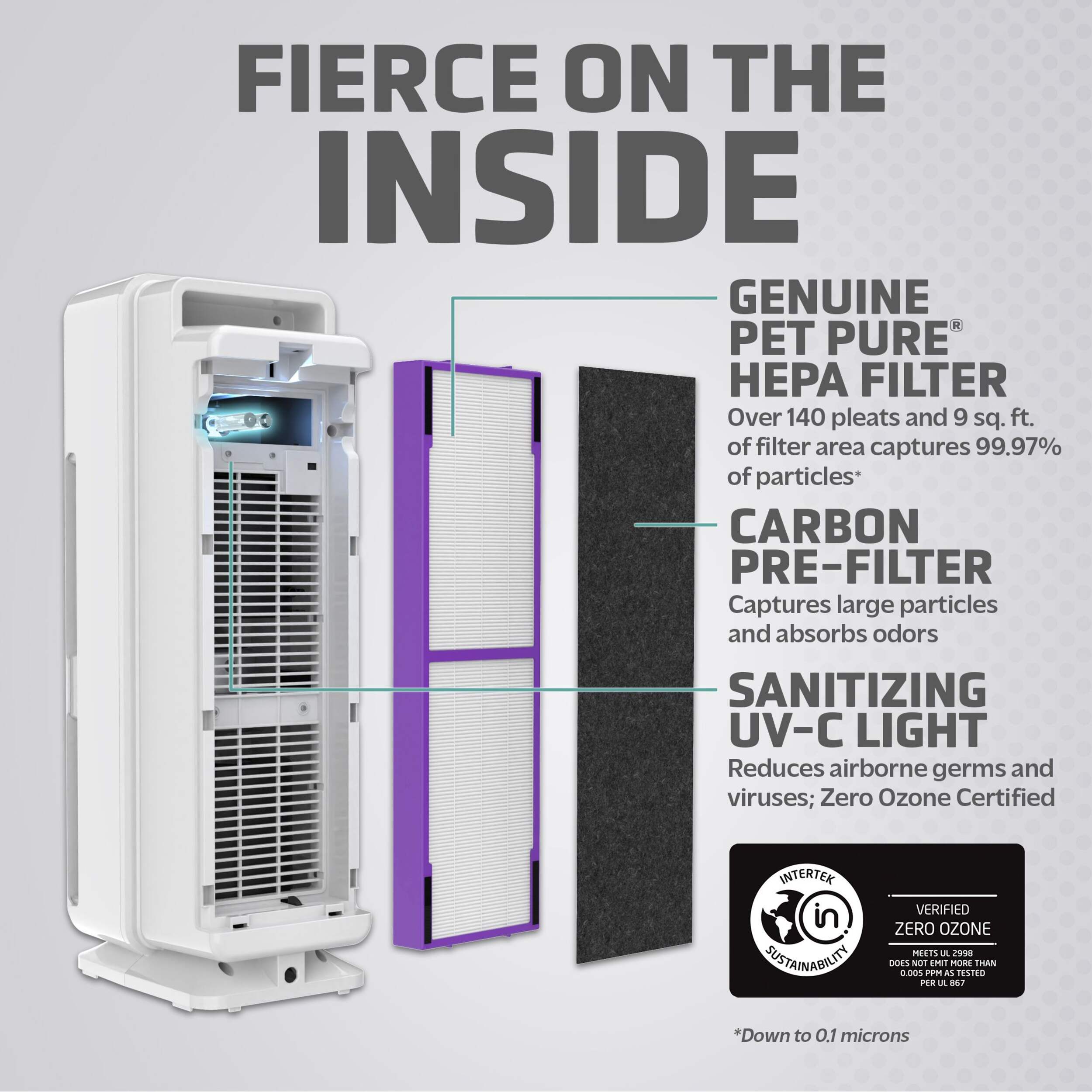 Breathe fresh and cleaner air! This GermGuardian air purifier reduces germs, filter odors, and traps allergens with a True HEPA Pet Pure filter and optional UV-C light. Additional anti-microbial Pet Pure treatment reduces unwanted odors and traps allergens to deliver refreshing air to your home. Your at home comfort can be customized with 3 speed settings, ultra-quiet mode on the lowest speed setting, and an optional UV-C light on an easy to use digital display panel. Ideal for medium to large sized rooms such as: dorm rooms, bedrooms, and other living areas! Your purifier is only as powerful and effective as the filter you put inside, and our Genuine GermGuardian replacement parts are essential for maintaining product performance. Each filter or bulb is designed specifically for a particular unit style. Not only will genuine replacement parts fit like a glove, but they also have the combination technology to match so that you can get the most out of your air purifier.