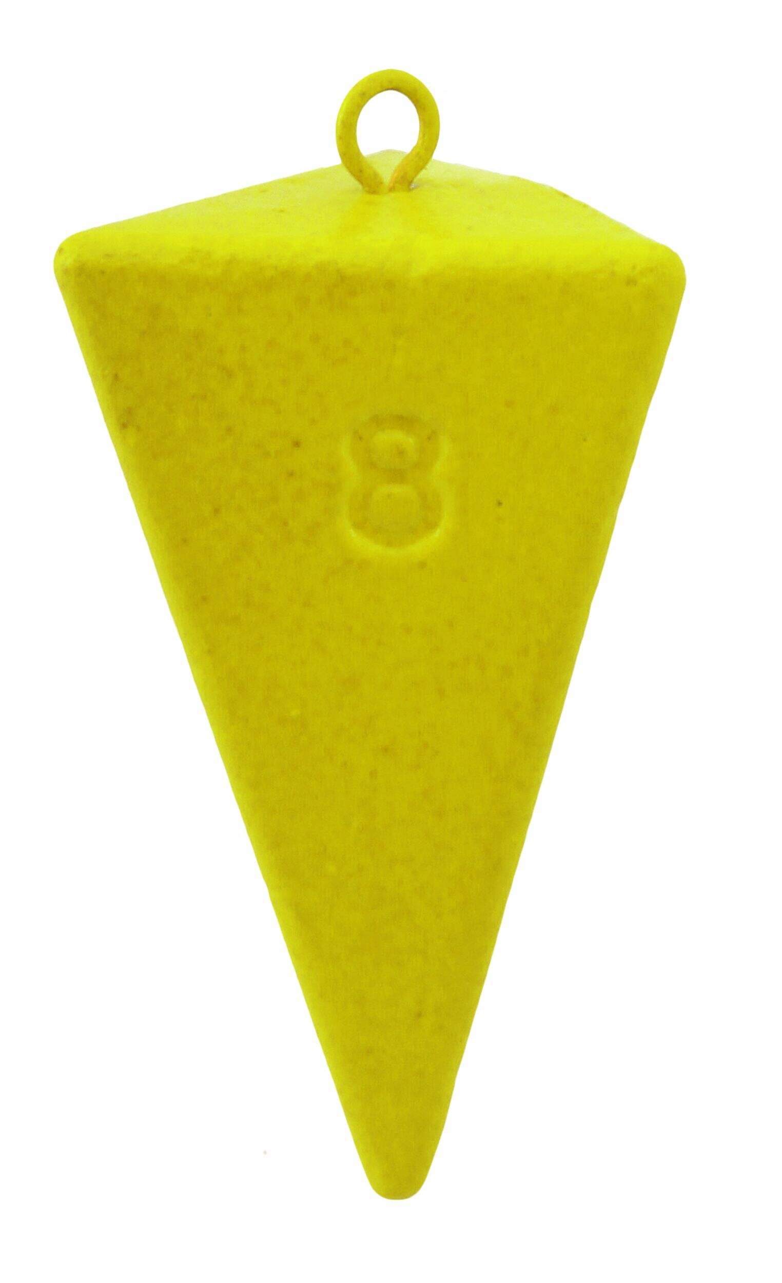 The Pyramid Weight is a triangular shaped piece of lead with a brass eyelet for slide, tie or snap on applications.