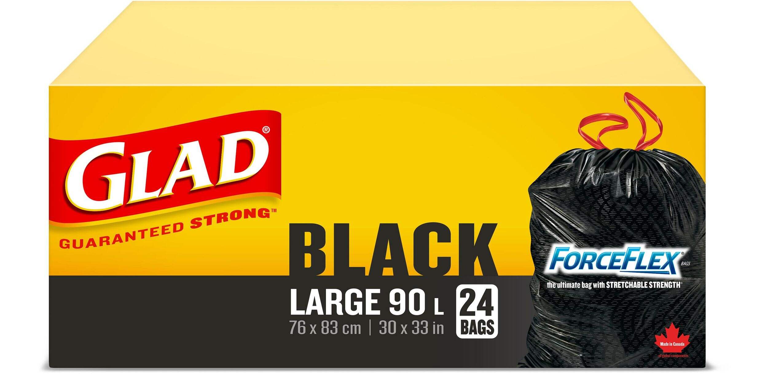 Count on GLAD bags to measure up to the task. Strong and sturdy, they help you avoid the messiest garbage disasters. The unique ForceFlex® Diamond Texture stretches with your trash to prevent rips and tears. And thanks to the drawstring closure it’s easy to carry even heavy bags out to the curb.