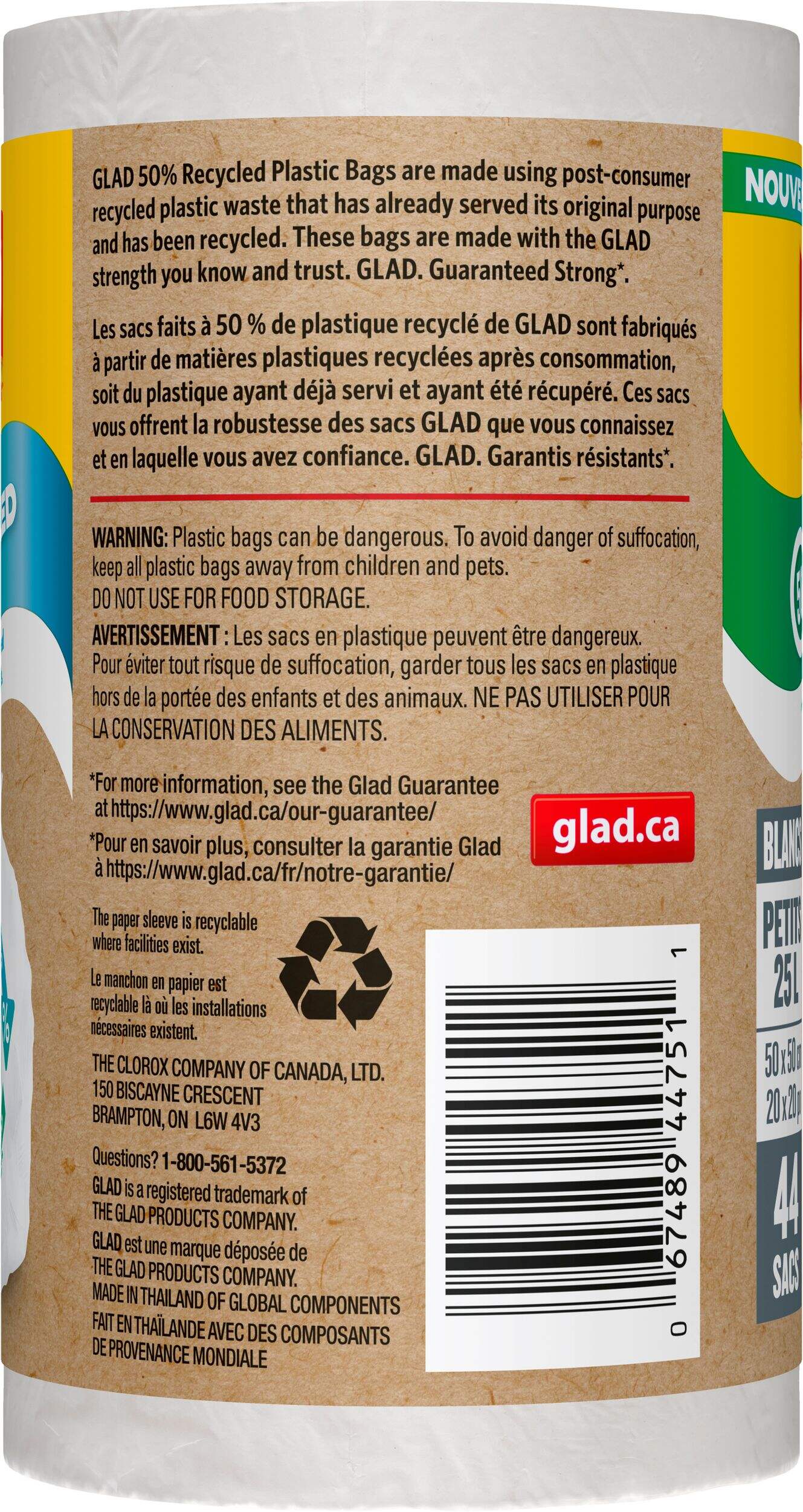GLAD PCR Garbage Bags provide a strong and eco-friendlier solution for managing household waste. Made from post-consumer recycled plastic, these durable bags help reduce environmental impact by giving plastic a second life. Designed with Easy-Tie four-flap closures for secure and mess-free disposal, even full bags are simple to lift and carry. Ideal for use in the kitchen, bathroom, bedroom, or office, these garbage bags deliver trusted Glad strength while promoting sustainability.