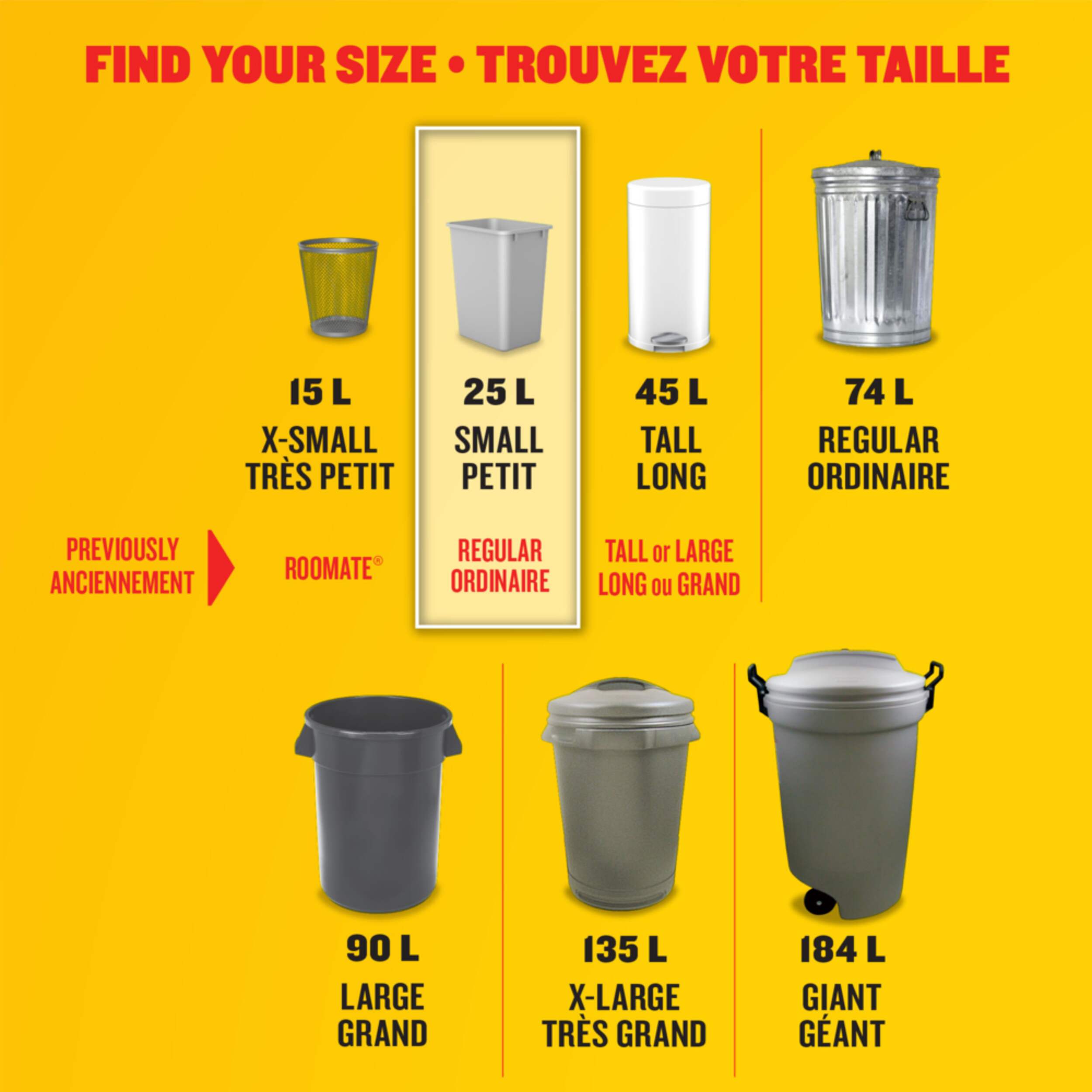Ready and prepared to handle all your garbage, this bag suppresses the worst trash odours. And with the Easy-Tie closure you just tie, grab, toss, and you’re done. Ideal for kitchen, bathroom, bedroom or office.