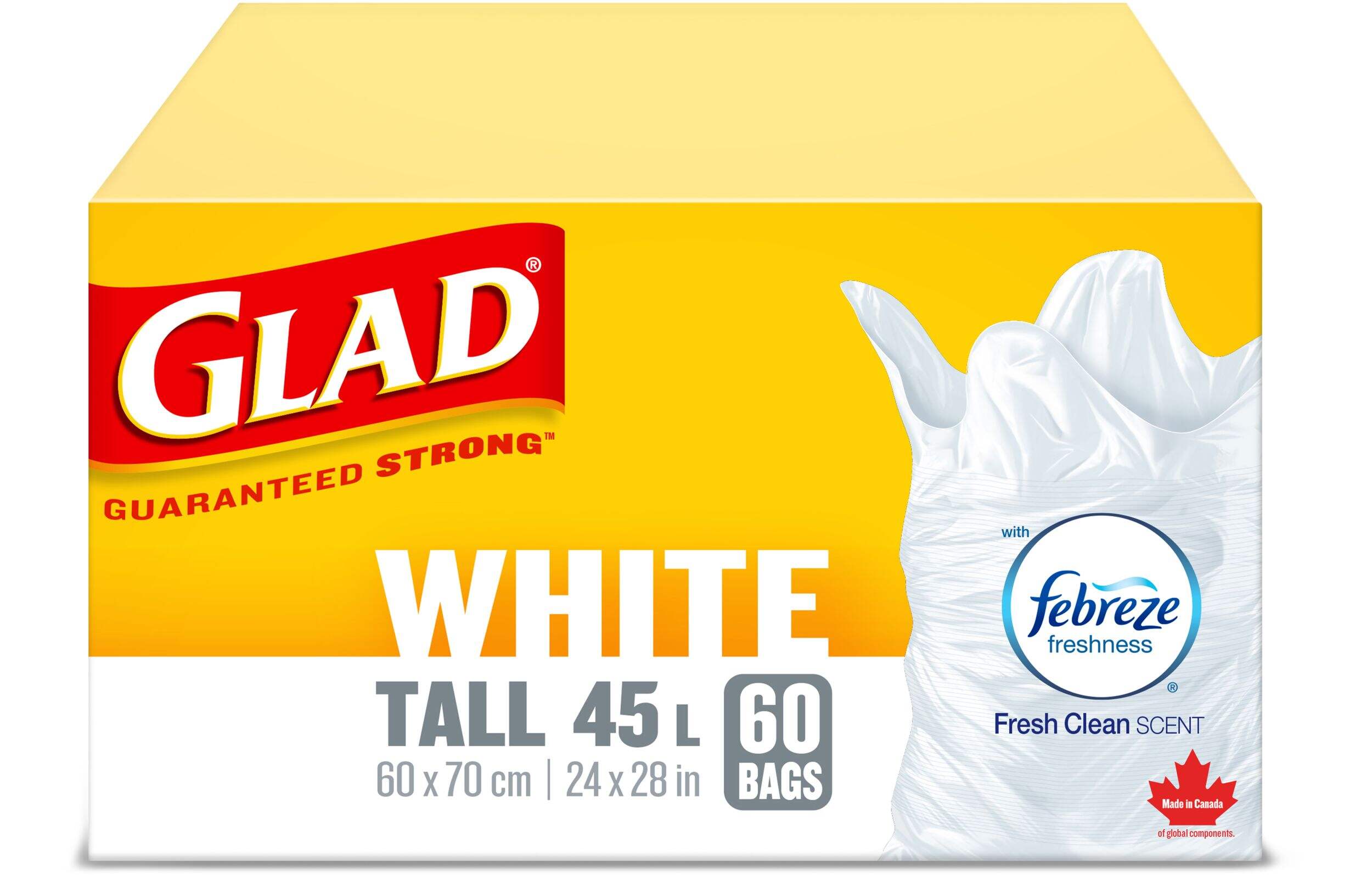 Glad White Kitchen Garbage Bags are ideal for your kitchen, bathroom, bedroom, or office