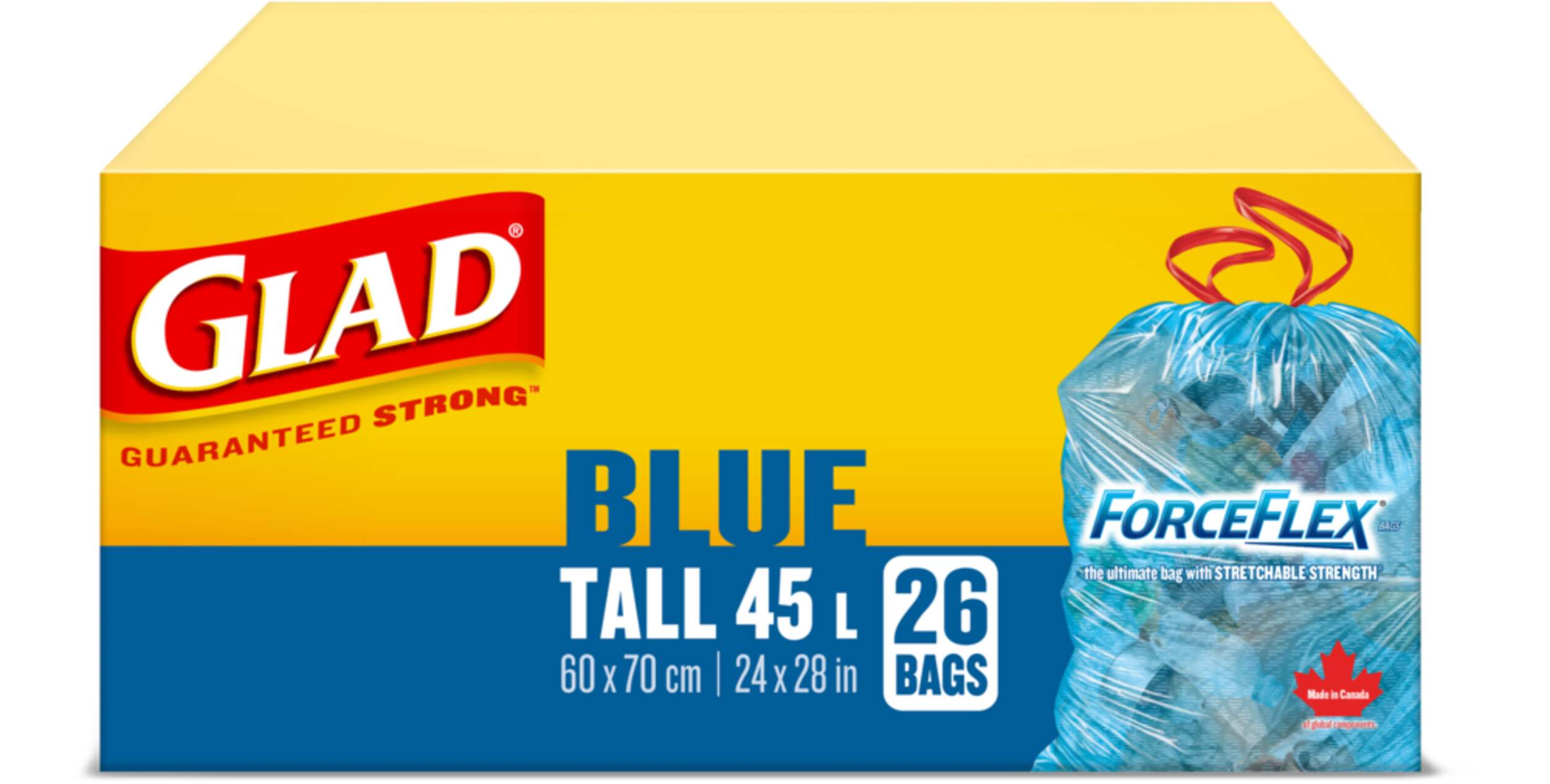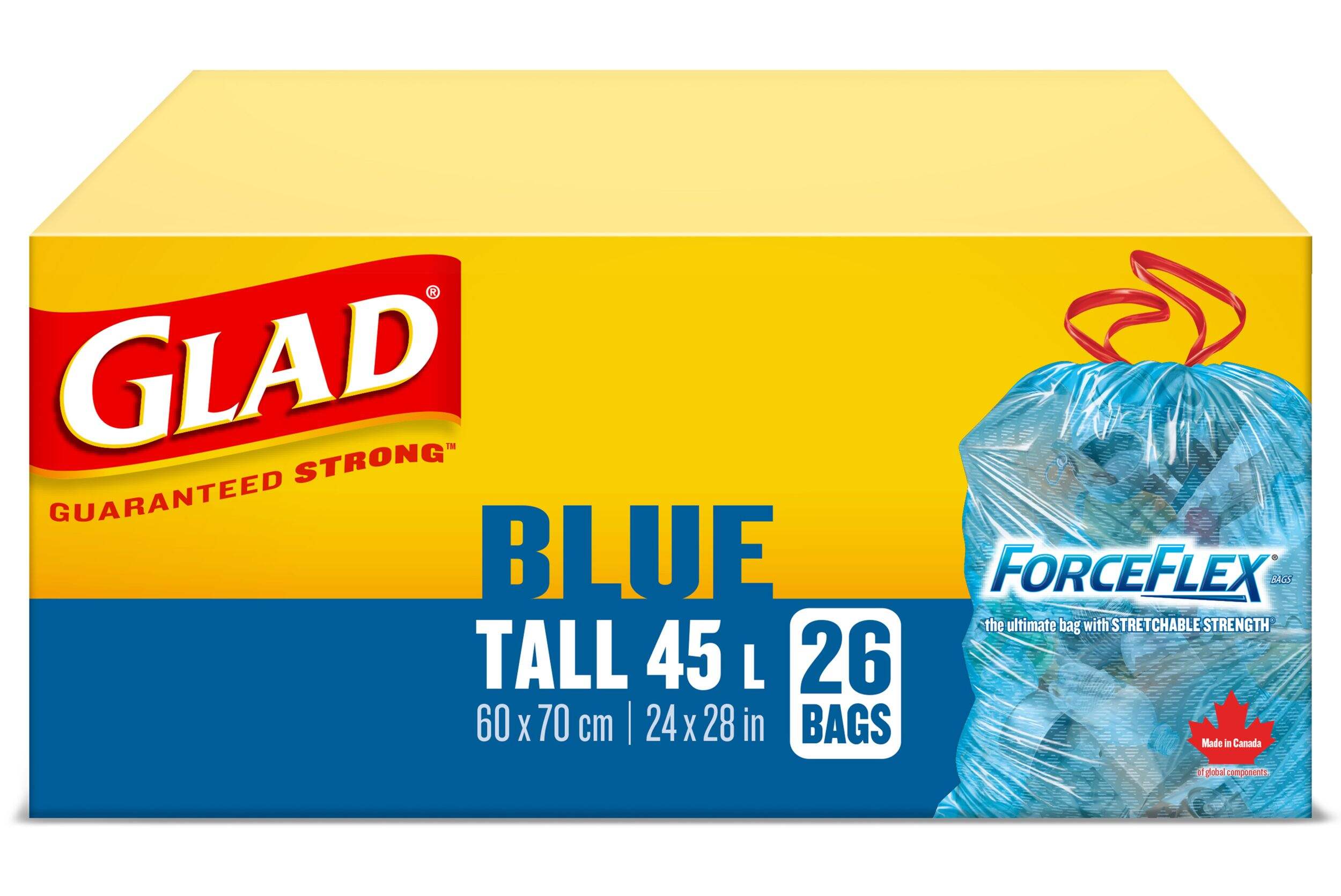 Specifically for customers living in municipalities that allow plastic bags, GLAD blue bags can handle all your recyclables and help you avoid the hassle of overflowing blue boxes. The unique ForceFlex Diamond Texture stretches with your trash to prevent rips and tears. Their dependable strength and large capacity means you can recycle more without the spills or messy clean up. And thanks to the drawstring closure it’s easy to carry even heavy bags out to the curb.