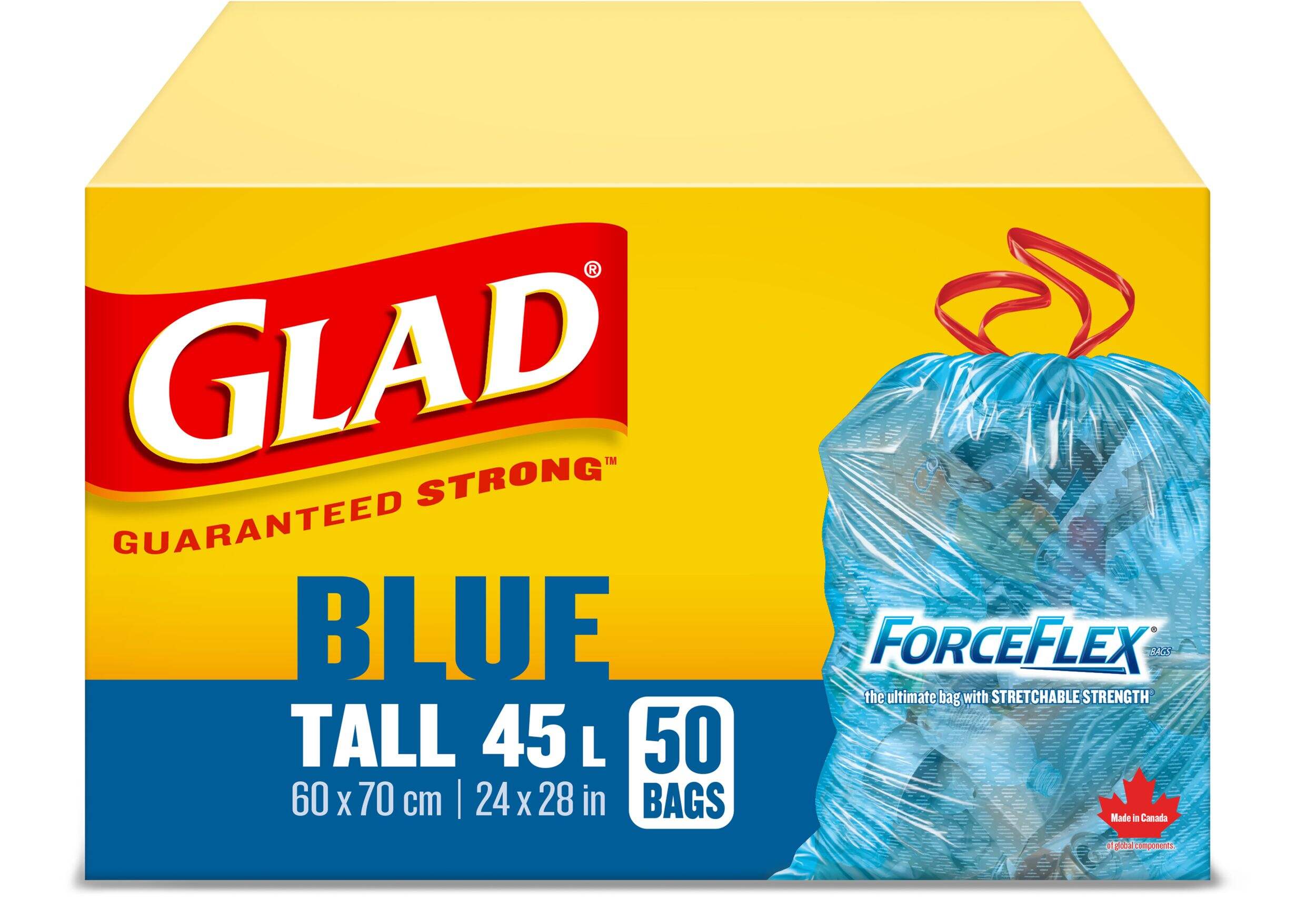 Specifically for customers living in municipalities that allow plastic bags, GLAD blue bags can handle all your recyclables and help you avoid the hassle of overflowing blue boxes. The unique ForceFlex Diamond Texture stretches with your trash to prevent rips and tears. Their dependable strength and large capacity means you can recycle more without the spills or messy clean up. And thanks to the drawstring closure it’s easy to carry even heavy bags out to the curb.