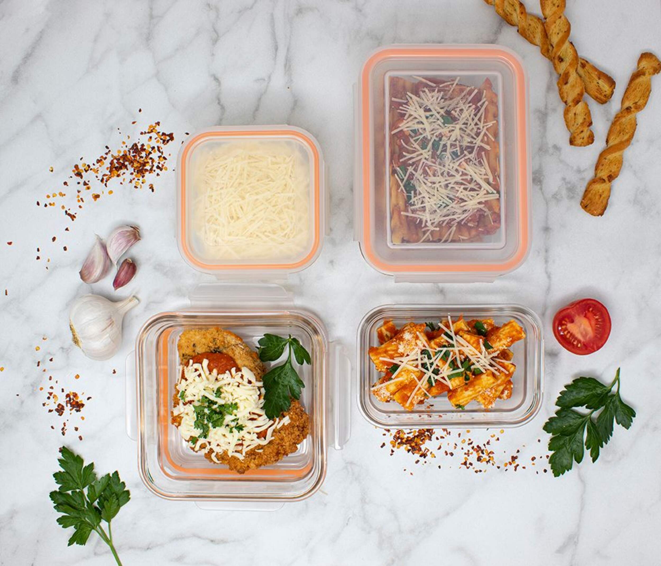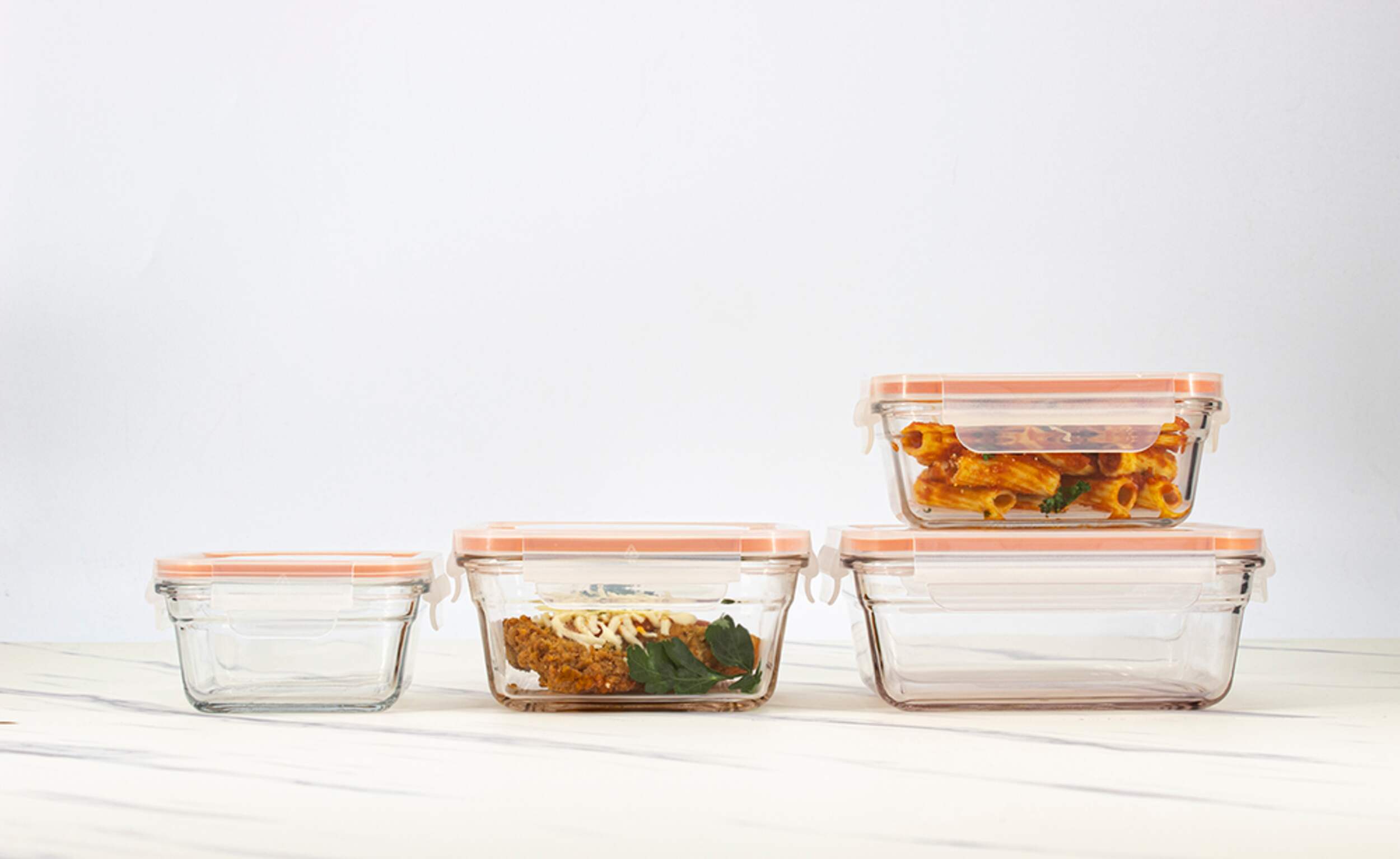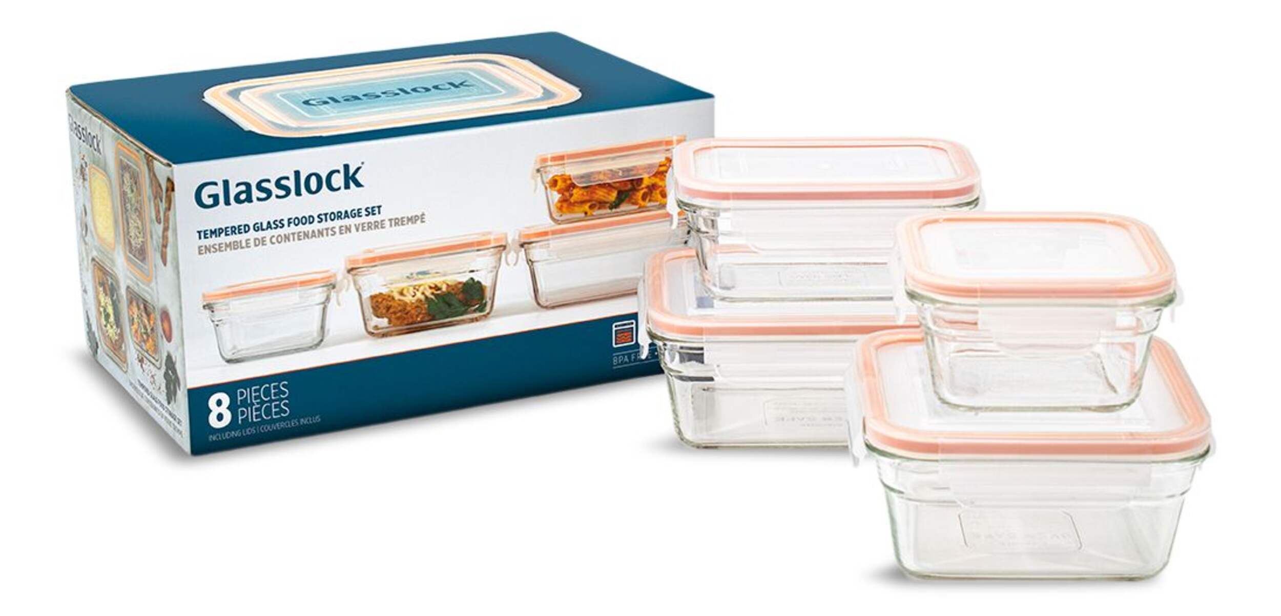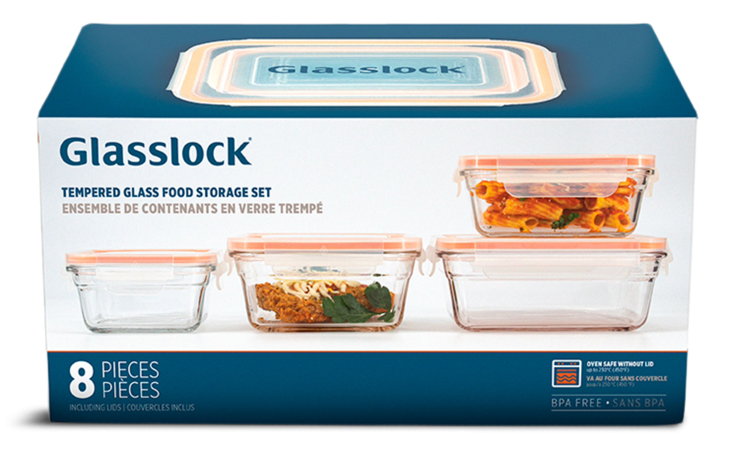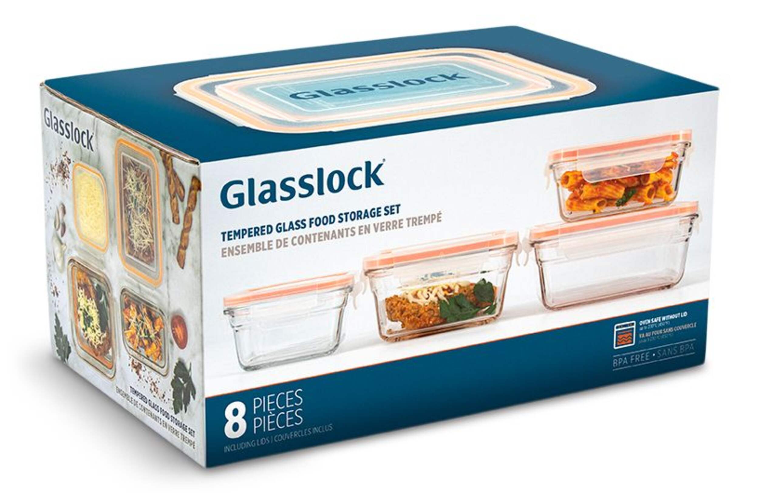 Prevent food spoilage and save money by storing foods in the Glasslock Glass Food Storage Container Set. This 8-piece container set is made from tempered Soda-Lime glass that is three times harder than normal glass, so it stands up to everyday use while resisting stains and odours. These containers are air- and moisture-tight to ensure your food stays fresher for longer, helping to avoid food waste.