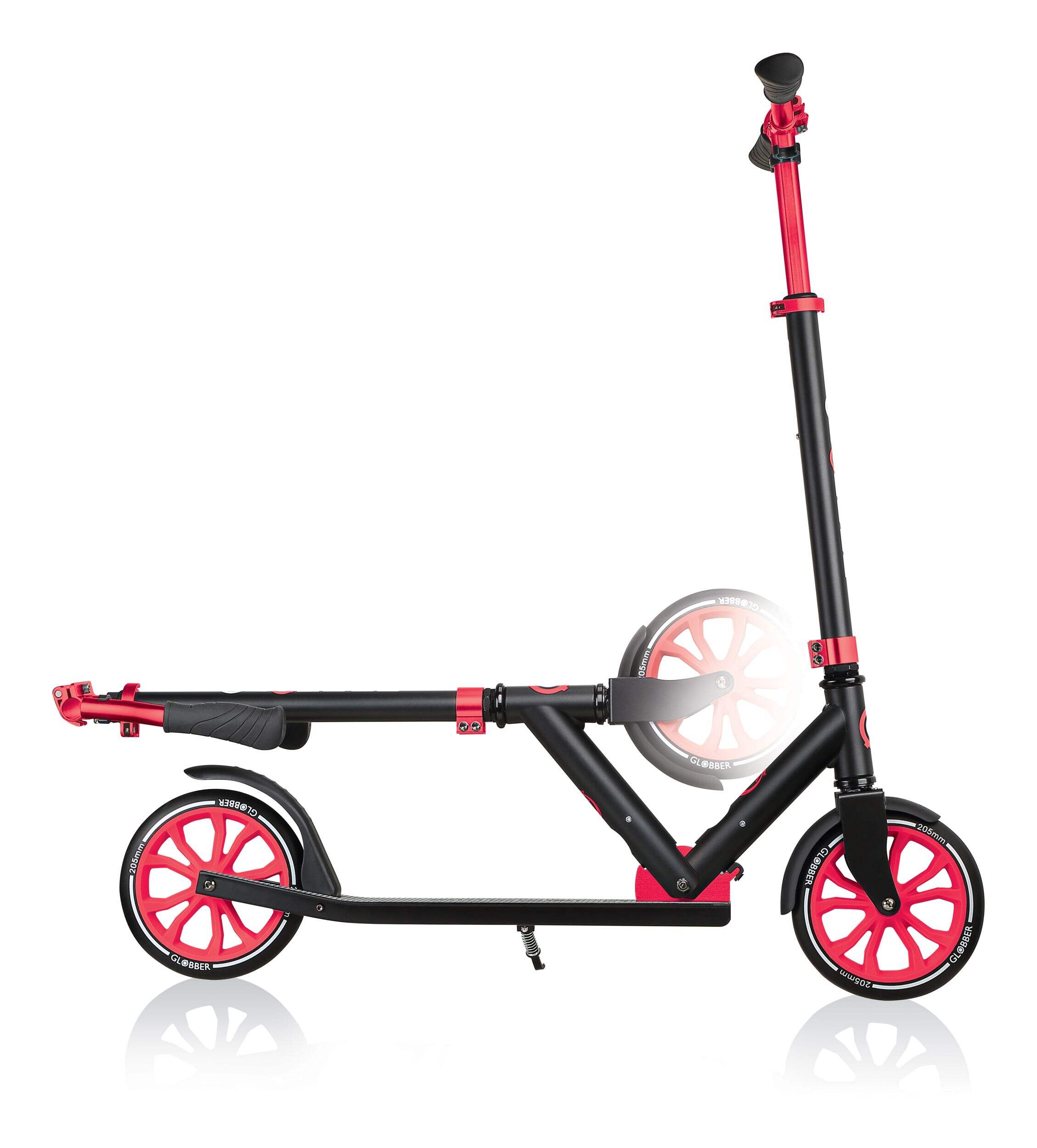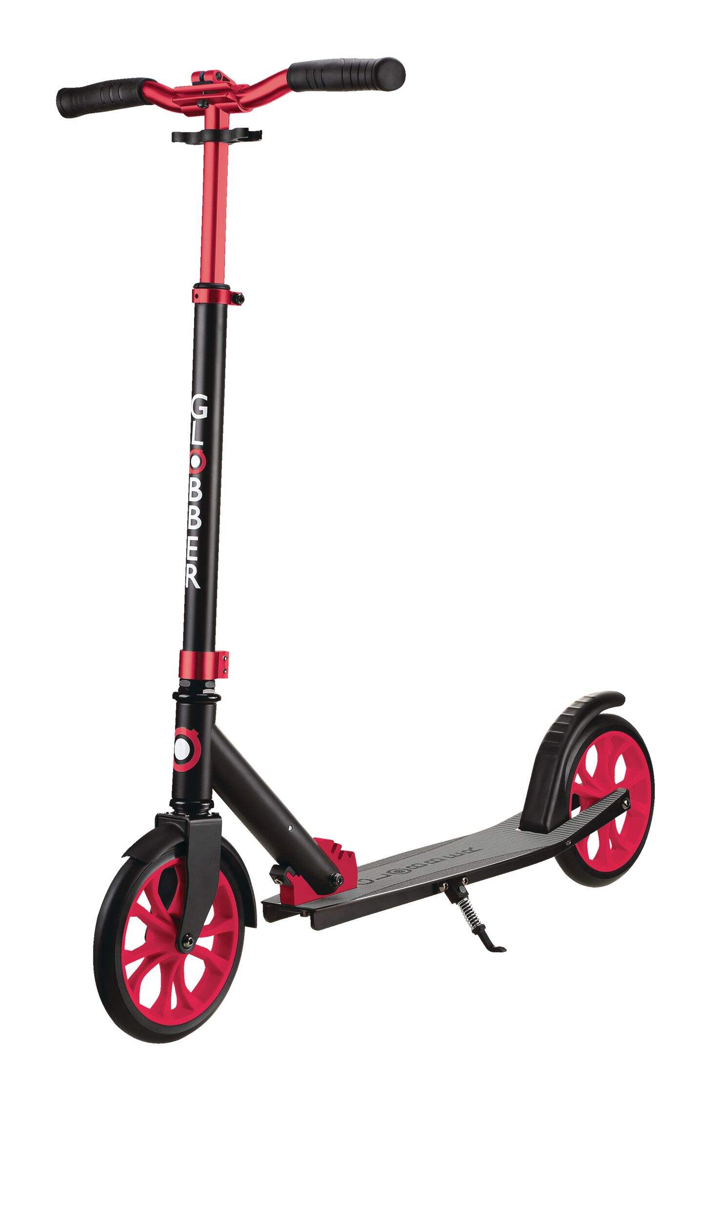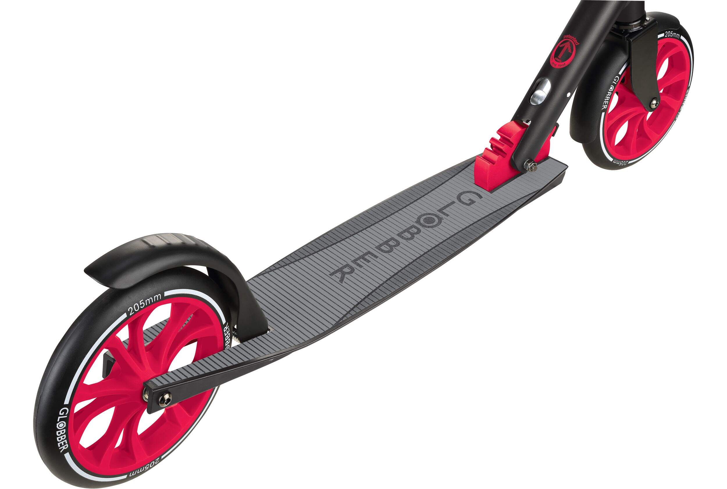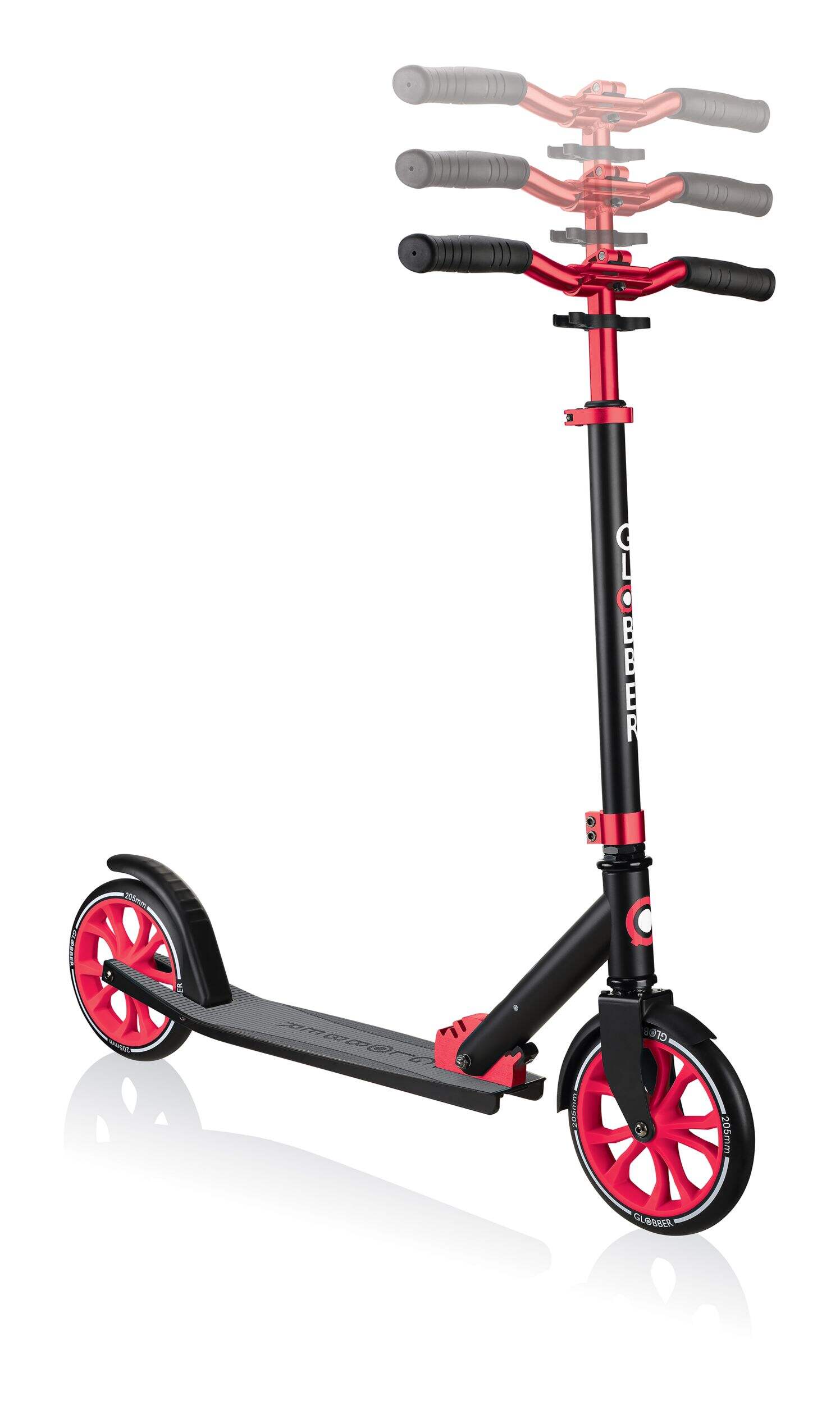 Ride in comfort with the Globber NL205 Collapsible/Foldable Adjustable Kick Scooter. Designed for speed, this scooter features large wheels and a built-in front suspension for a smooth ride over city streets. Its sturdy aluminum deck ensures durability, while the patented folding system makes it easy to store and carry. With a T-bar that adjusts to three heights, this scooter is ideal for riders of various sizes.