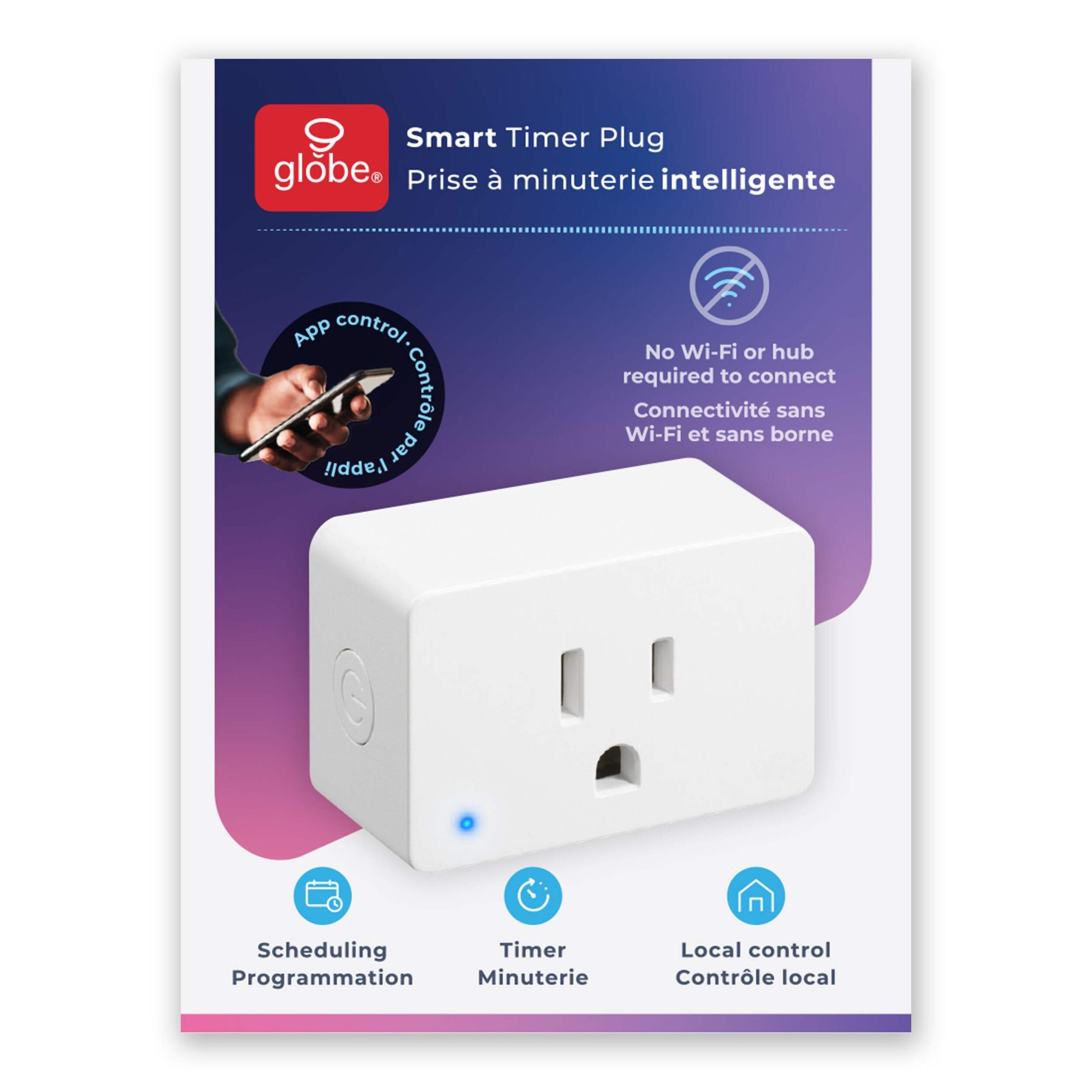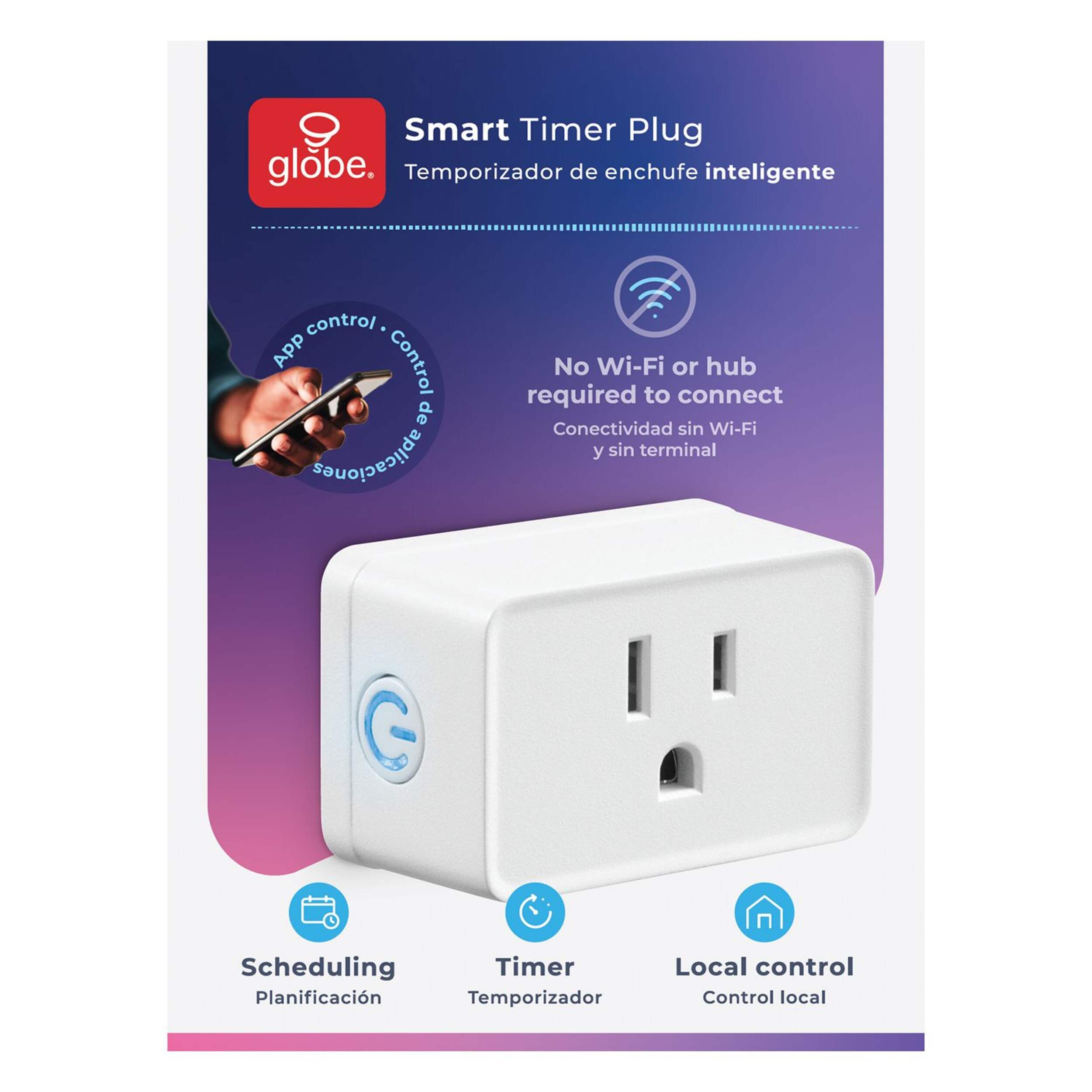 The Globe Bluetooth Indoor Smart Timer Plug uses Bluetooth app control to turn ordinary outlets into smart devices. This single-outlet plug allows you to connect and control lamps, coffee machines, seasonal lighting, and more from a distance and pairs instantly to smartphones without the need for Wi-Fi access or a smart hub.