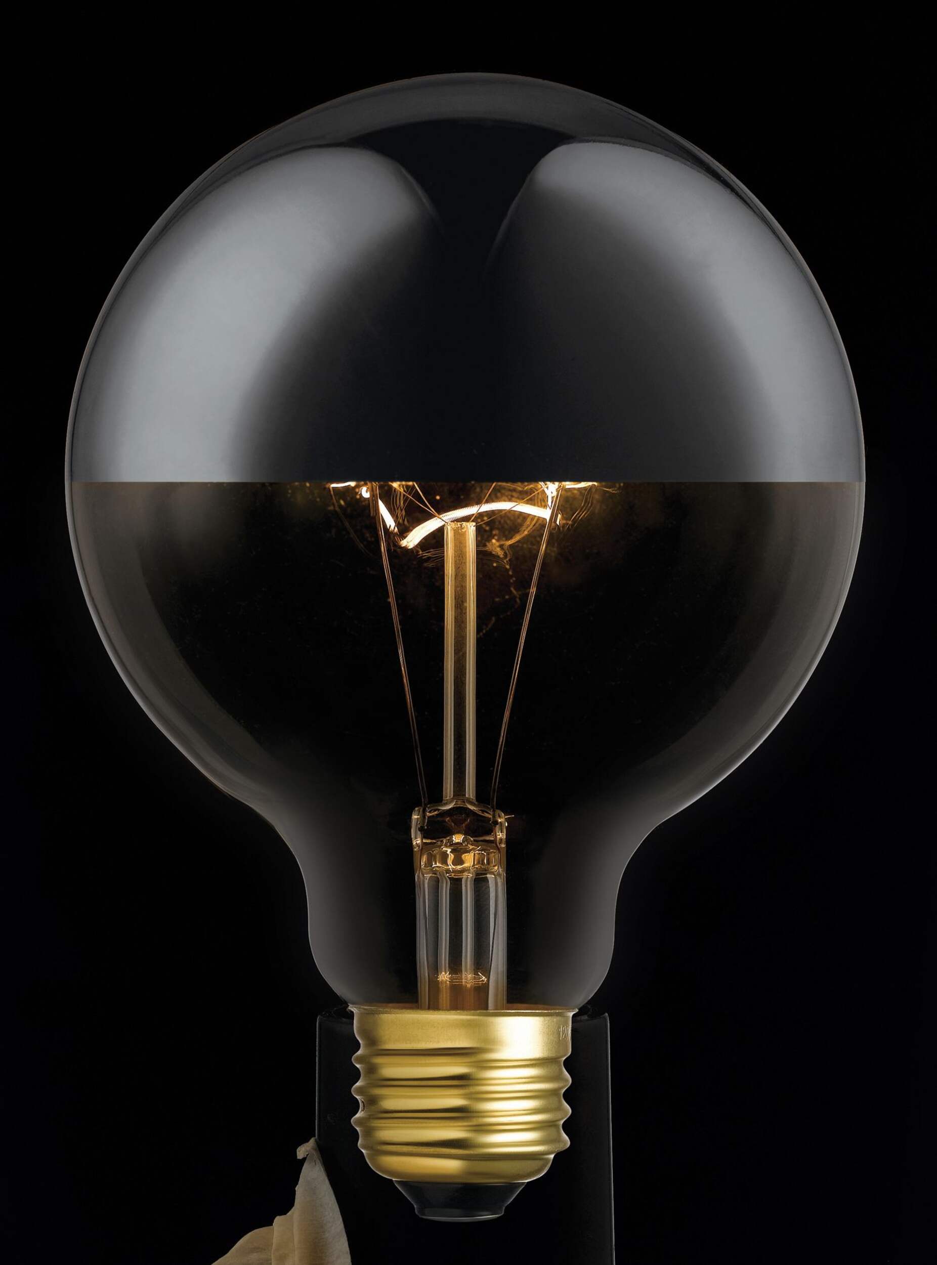 This Globe Electric Dimmable Incandescent Light Bulb replicates the vintage look of early 20th century lighting. The chrome-tipped top helps direct the light while also reflecting its surroundings. Use this light bulb as an accent light within a clear shade or exposed socket to enjoy its shape and soft glow. Crafted to preserve the design of old-fashioned lighting, this 40-Watt 120-Volt medium base bulb is a great way to add ambience. The glass has a golden amber hue which can vary from light to medium. The bulb can be dimmed to suit your mood. Plus, it produces less light compared to modern ones of the same wattage.