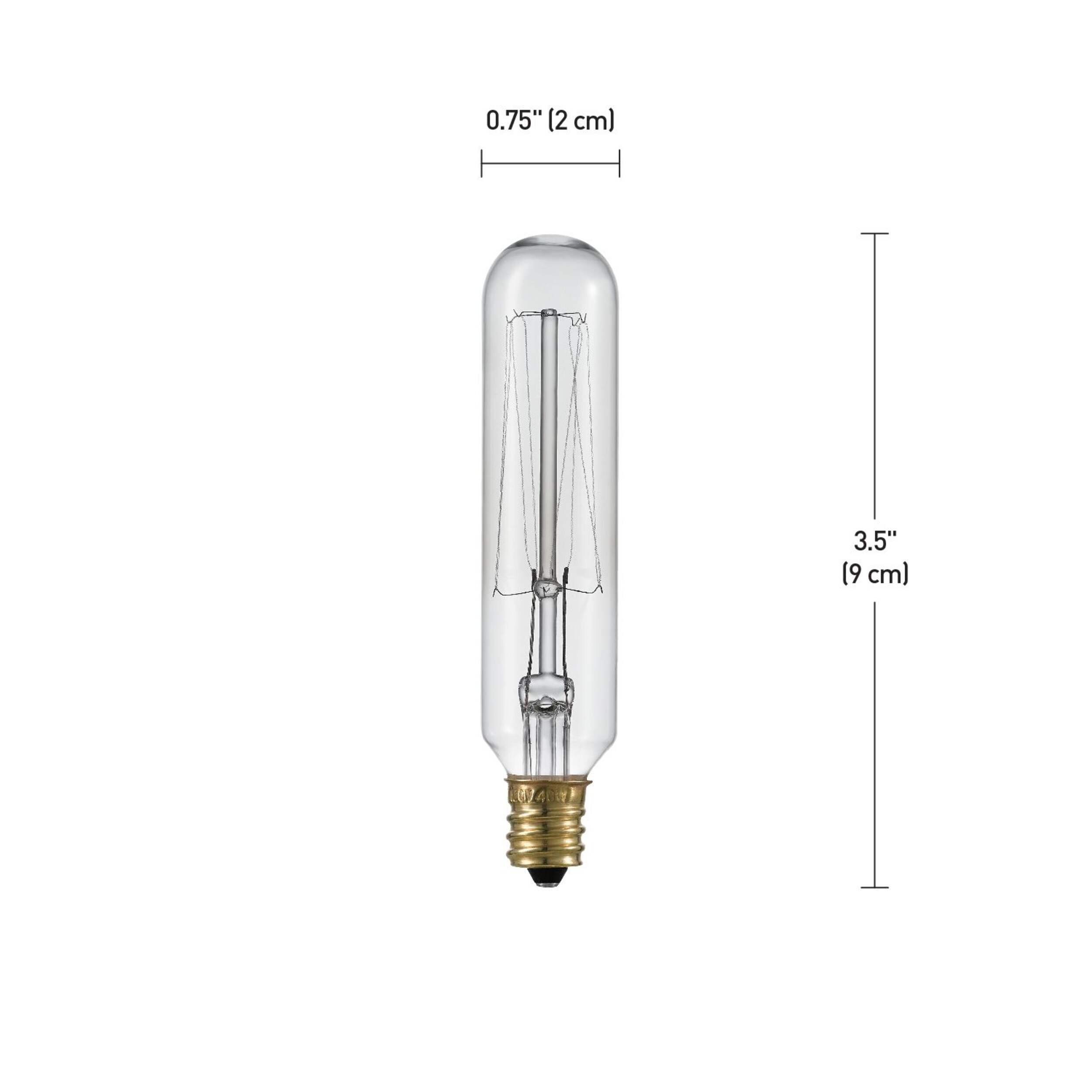 Perfect for use in candelabra fixtures, Globe Electric’s T6 40W Incandescent Light Bulb brings old-world charm to any space. A tungsten filament is used to reproduce the single hairpin loop of a vintage design. Position it within an exposed socket pendant or fixture to enjoy its shape and ambient candlelight glow. This Edison-inspired bulb is a Steampunk favourite with its glowing spiral-shaped filament surrounding a central glass support. Crafted to preserve the look of early 20th-century lighting, Globe’s mini tube-shaped bulb is a great addition to the centerpiece for any room.