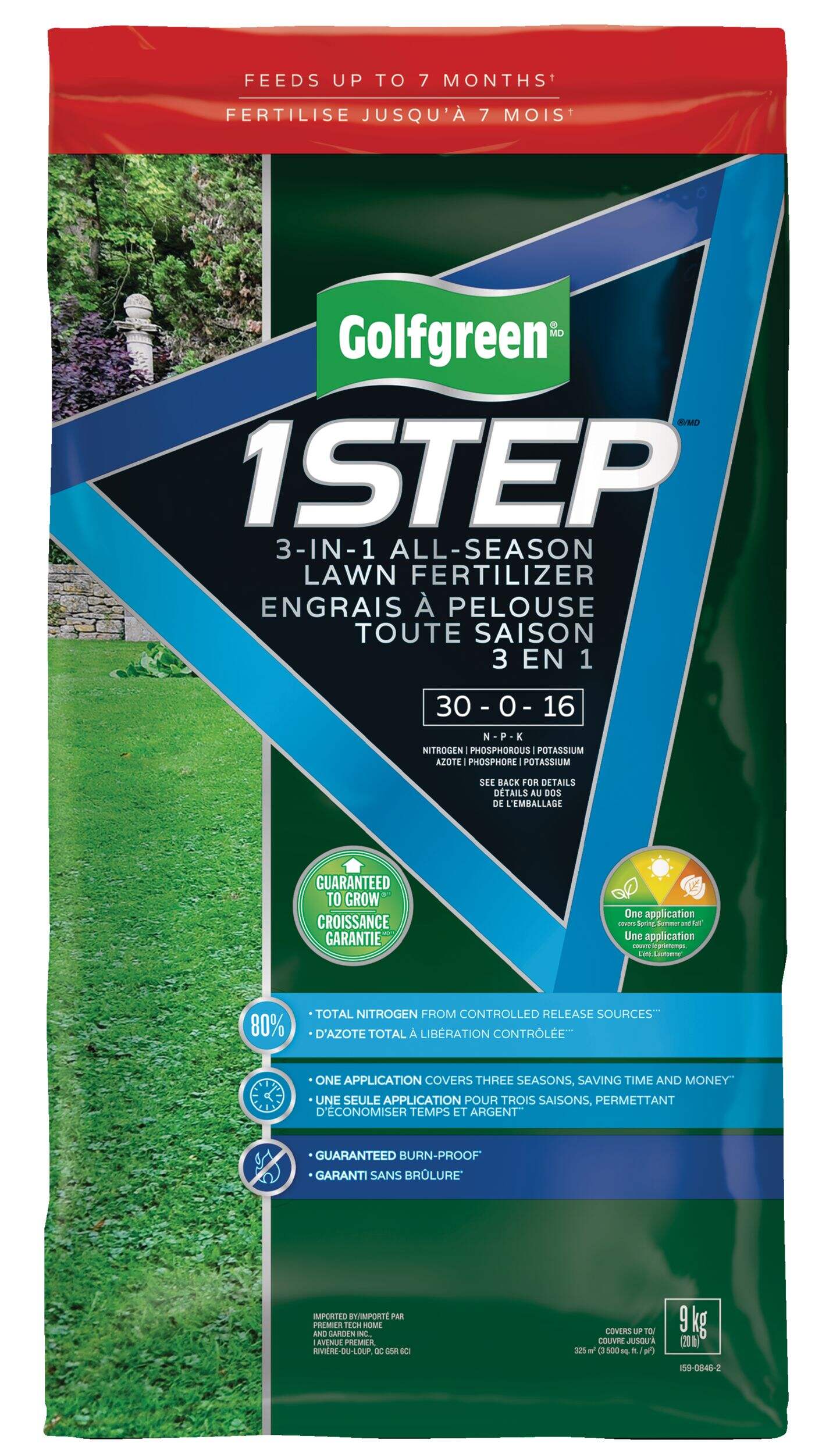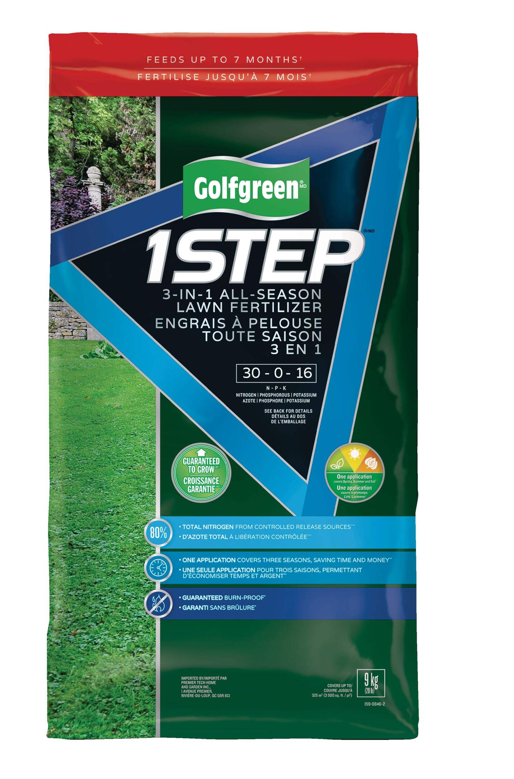 The Golfgreen 1-Step All Season 3-in-1 Lawn Fertilizer is specially formulated to continuously feed all season long for a golf course quality lawn. With this lawn fertilizer, you save time and effort with only one application and less mowing because of less grass surge growth. The fertilizer is made from a blend of nitrogen, phosphorous and potassium (NPK) and is guaranteed to grow.