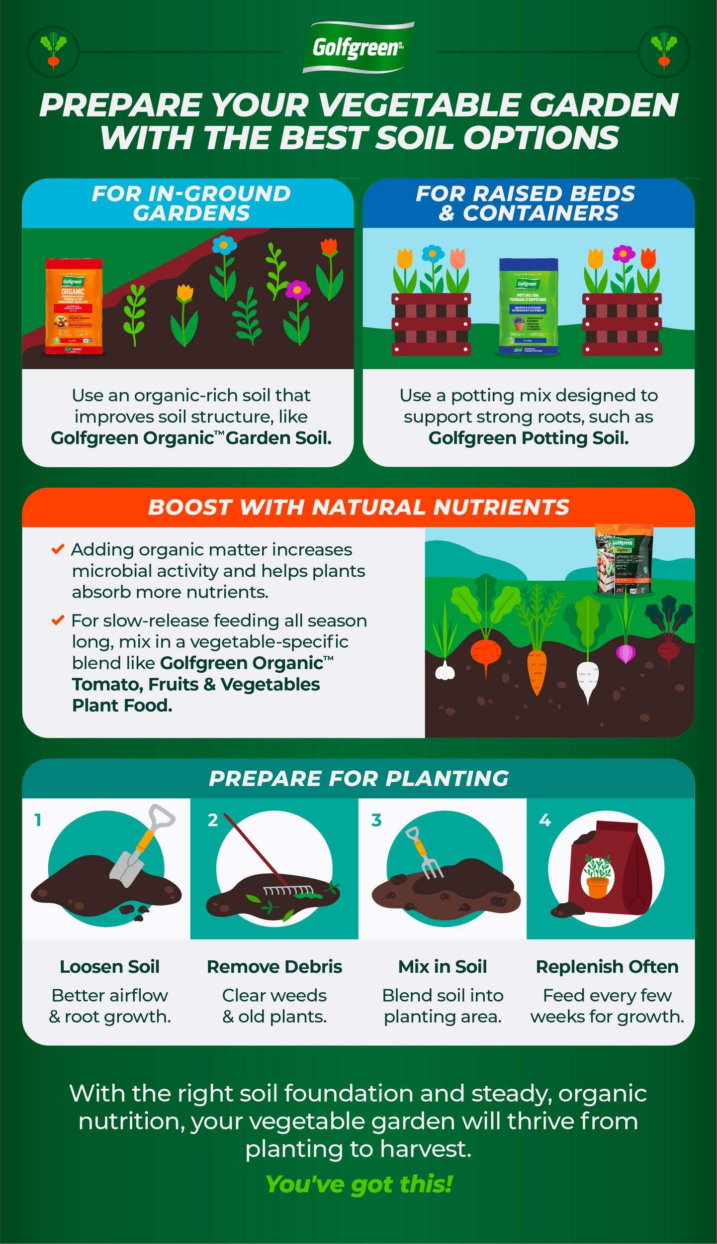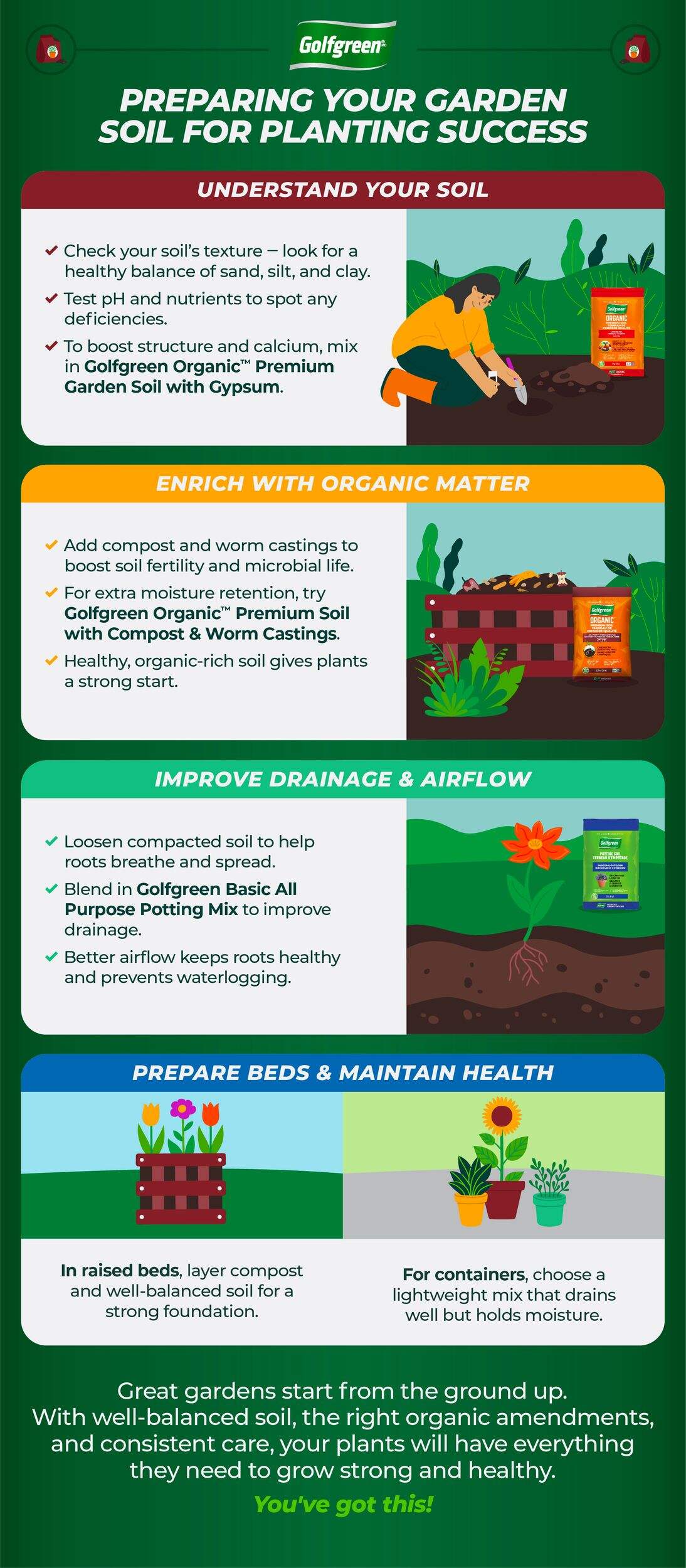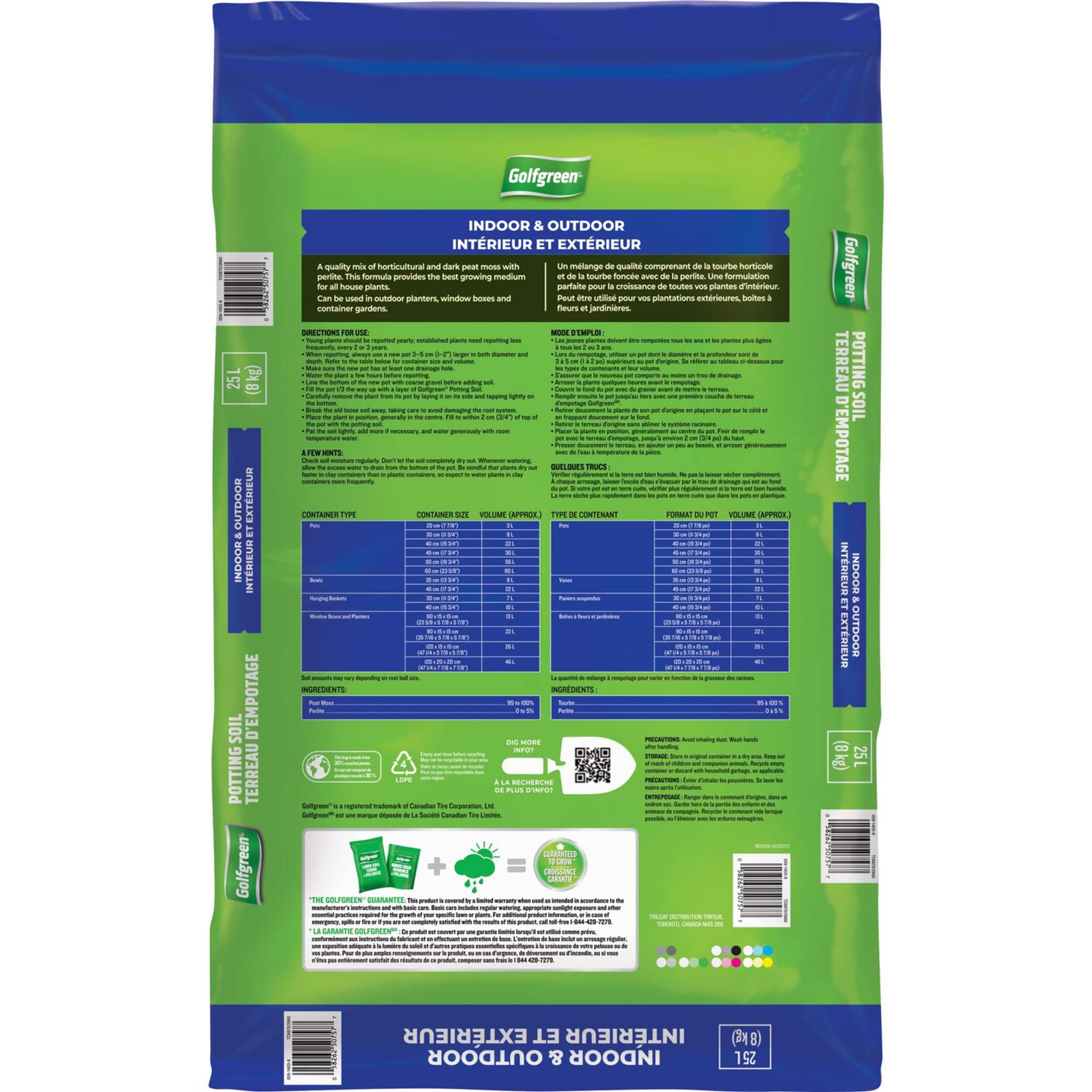 Golfgreen Potting Soil is the perfect potting soil for indoor and outdoor plants in your house, offering a blend of soil, peat moss and perlite. This potting soil mix is perfectly textured and easy to mix with your existing soil, and is textured just right to provide the ideal conditions for drainage and aeration for your plants.