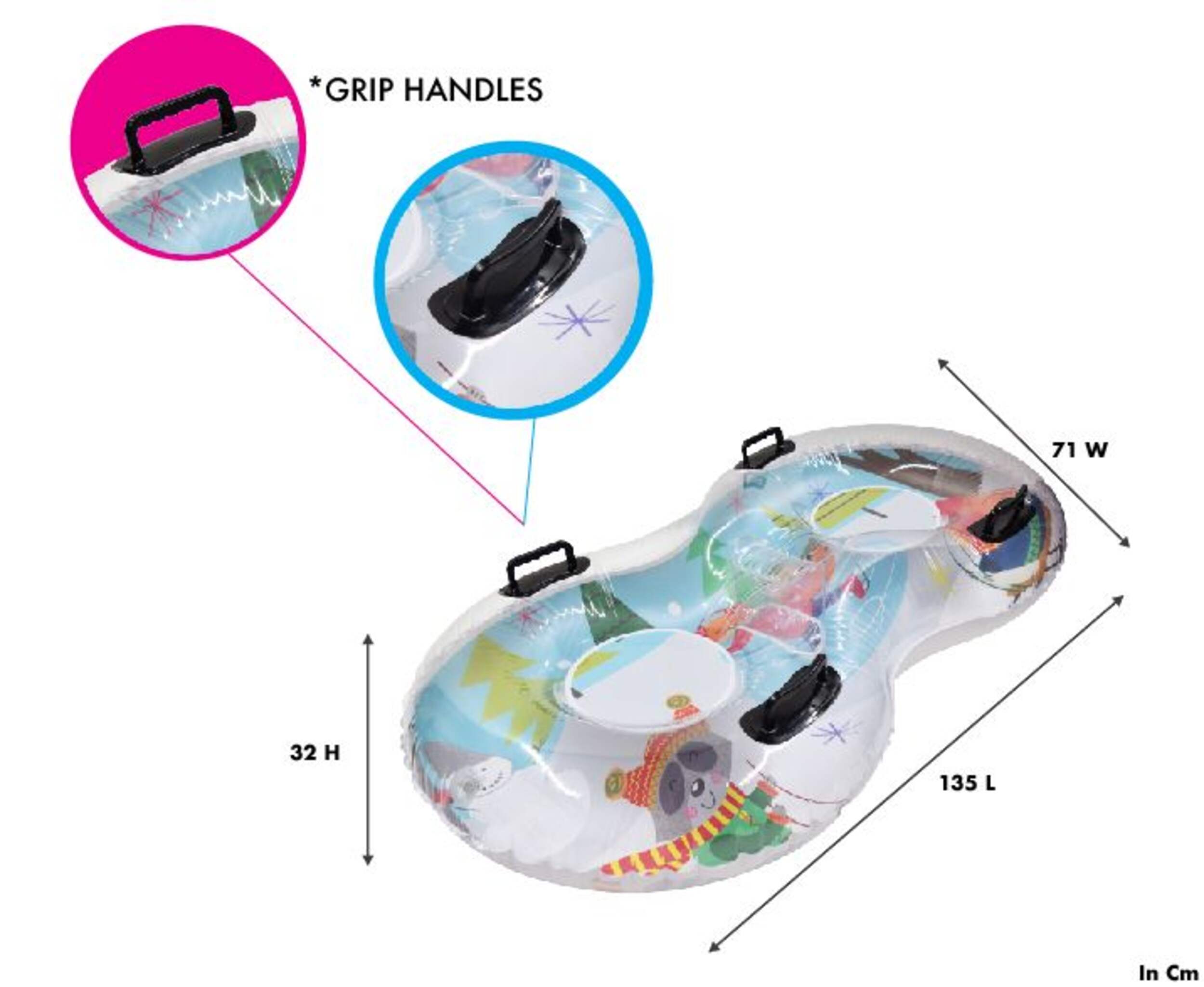The Gracious Living 2-Person Duo Inflatable Winter Snow Tube is designed for exhilarating winter adventures. With its spacious seating, this inflatable snow tube allows you to glide down the hill with a friend, creating unforgettable memories on the slopes. Its durable construction ensures safety and stability as you speed down snowy hills, while the convenient valve system makes it easy to inflate and deflate. Enjoy hours of fun and laughter with this reliable winter sledding companion.