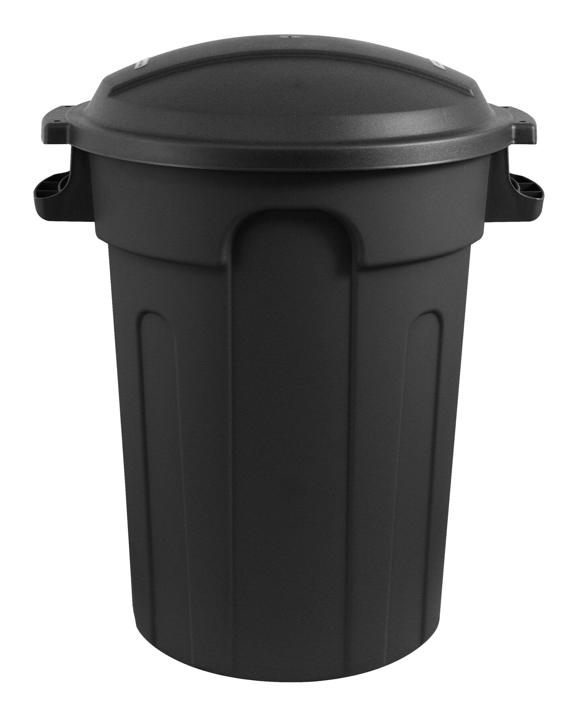 The Gracious Living Outdoor Garbage Can is a substantial 80-litre (21 US gal) container, perfect for keeping waste enclosed and pests at bay. Crafted from robust resin, it's designed to endure all weather conditions and heavy use. The domed lid provides added capacity, and both lid and handle are designed to accommodate a tie strap for secure closure. This black, circular garbage bin from Gracious Living offers both practicality and durability for outdoor waste management.