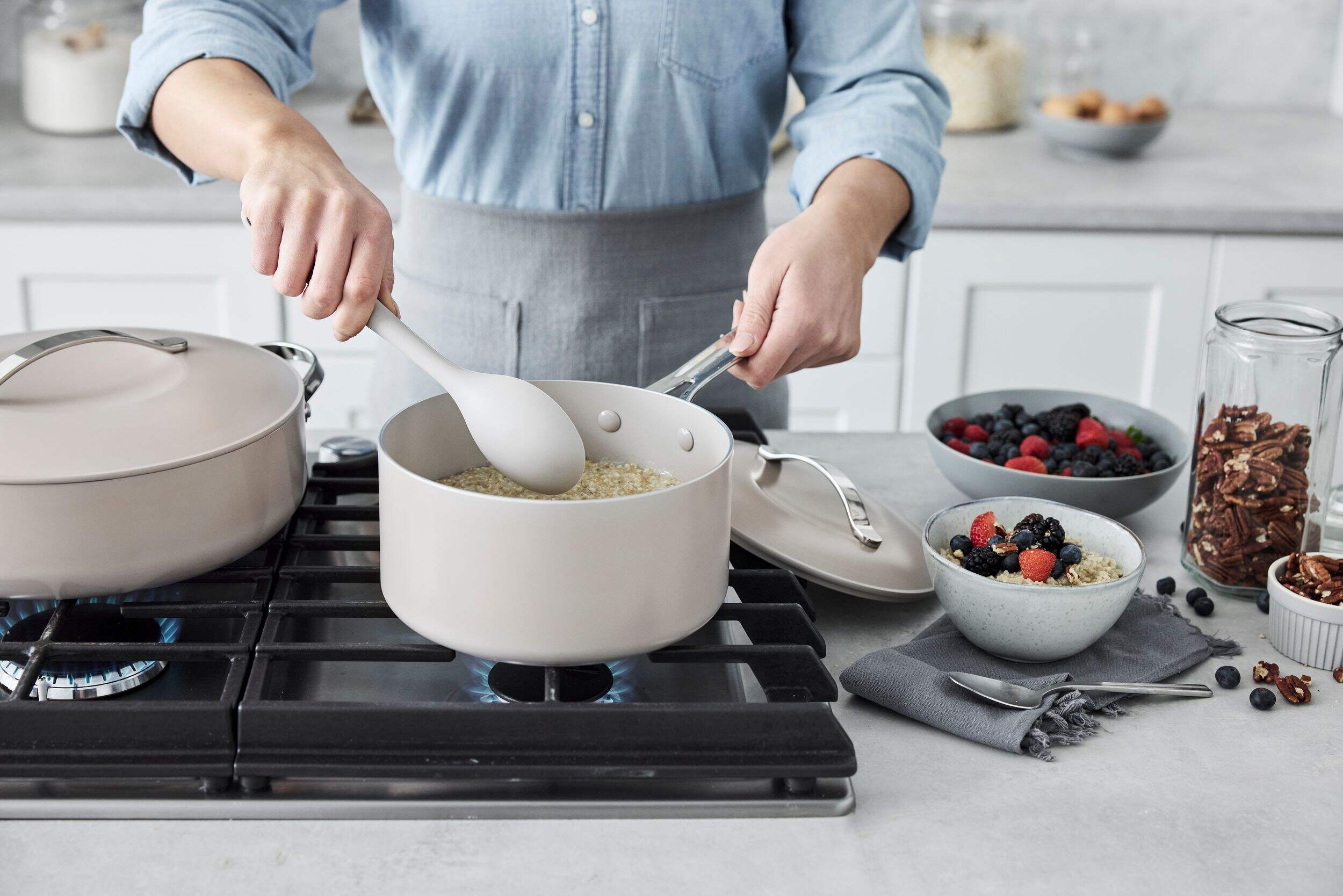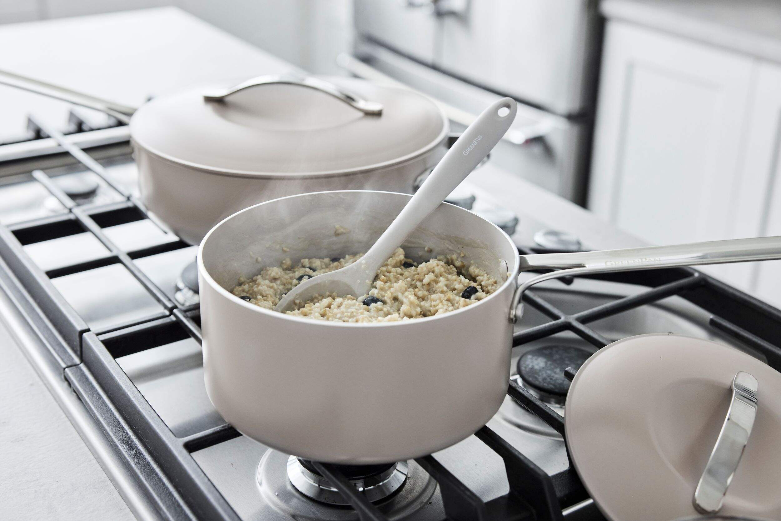 Finished in bold hues that elevate every space, this 11-Piece Cookware Set from GreenPan Nova includes all you need to cook with confidence. Our Thermolon healthy ceramic nonstick coating features diamond-enhanced layers is free of PFAS, PFOA, lead and cadmium. The heavy-gauge aluminum bodies are built for daily durability and deliver excellent heat conduction. Take these pans anywhere thanks to the specially designed induction base suitable for all stovetops, including induction.