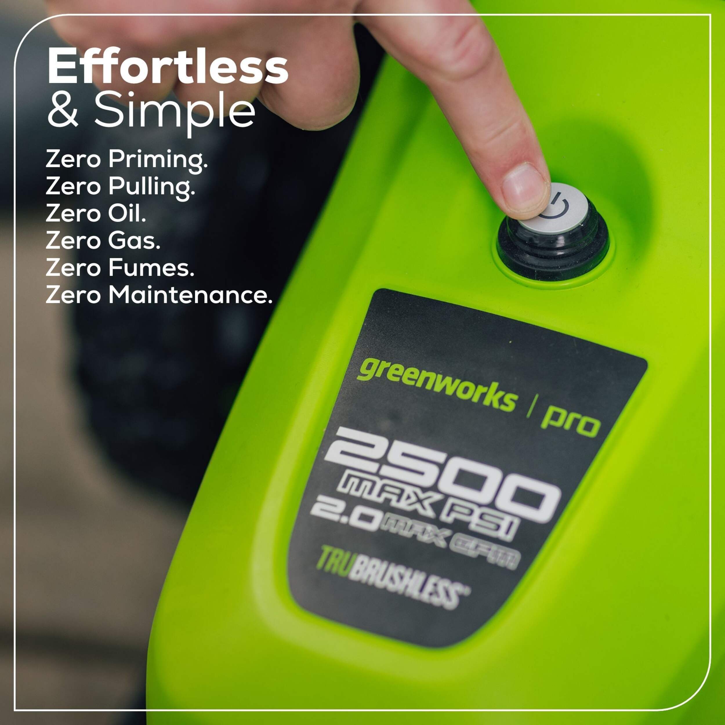 Innovative Greenworks TruBrushless™ Motor Technology: Automatically adapts motor power for maximum cleaning power with any nozzle