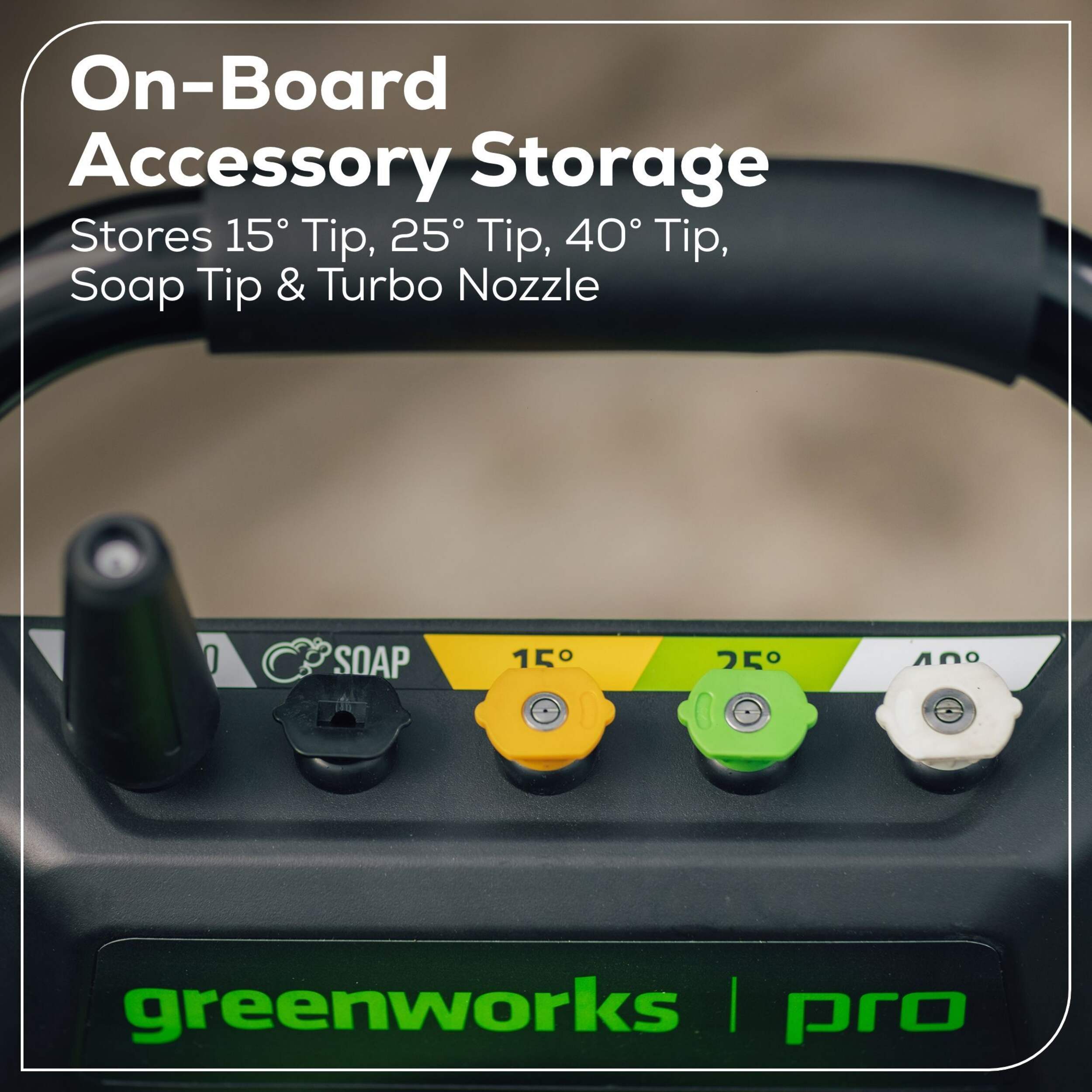| Nozzles Included | 15 Degree, 25 Degree, 40 Degree, Soap |