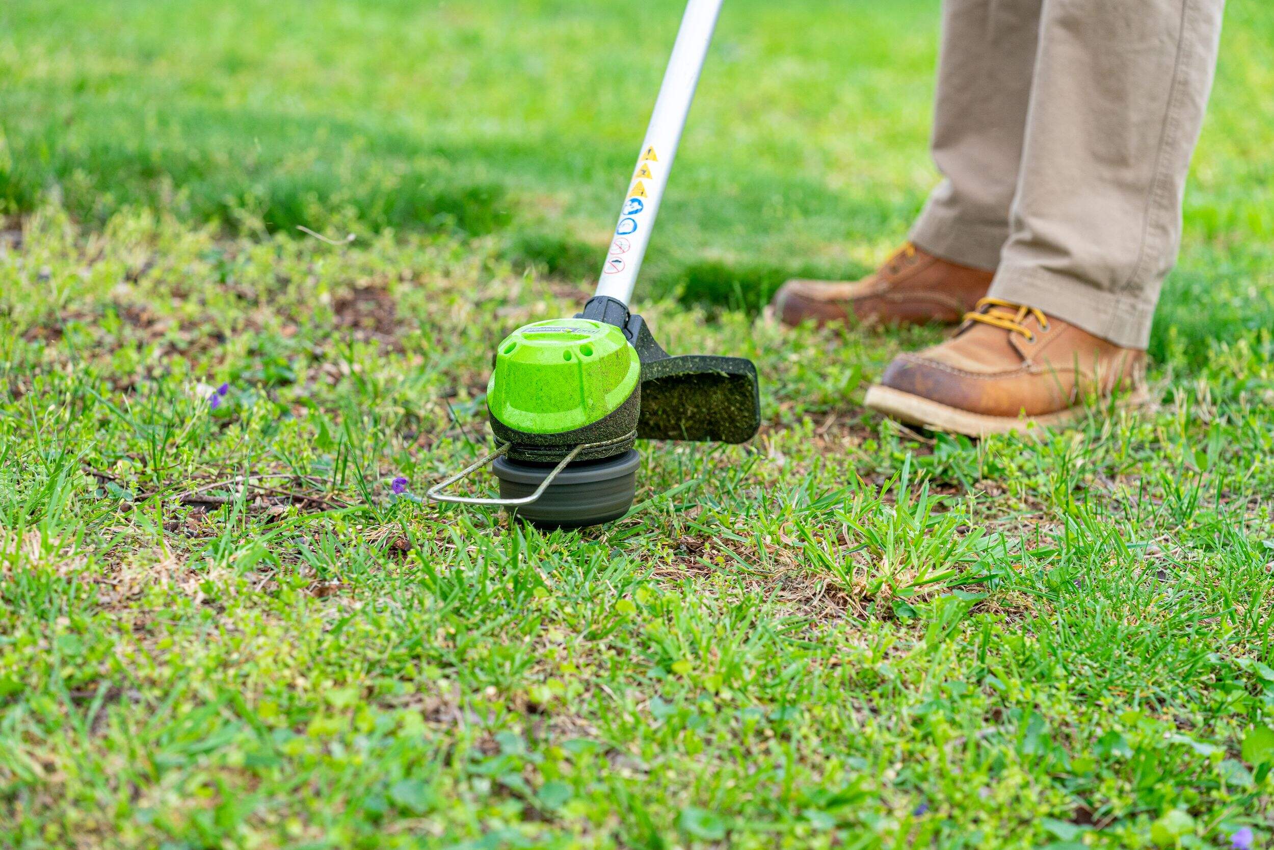 Greenworks Pro 60V Cordless Grass Trimmer features a 13" (33cm) cutting swath to provide ample cutting coverage