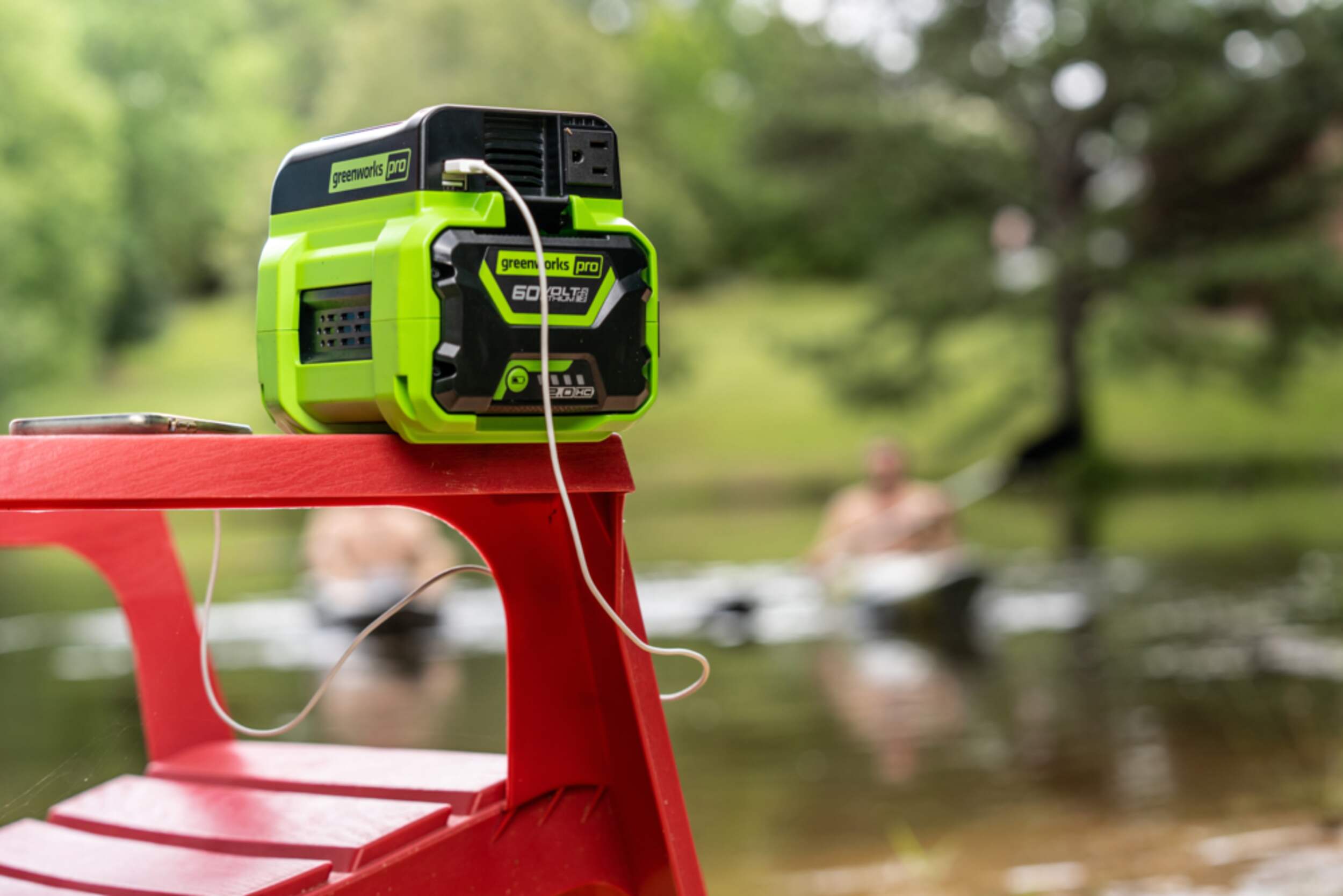 Greenworks Pro 60V Power Inverter provides 300 watts of continuous power whenever and wherever it’s needed