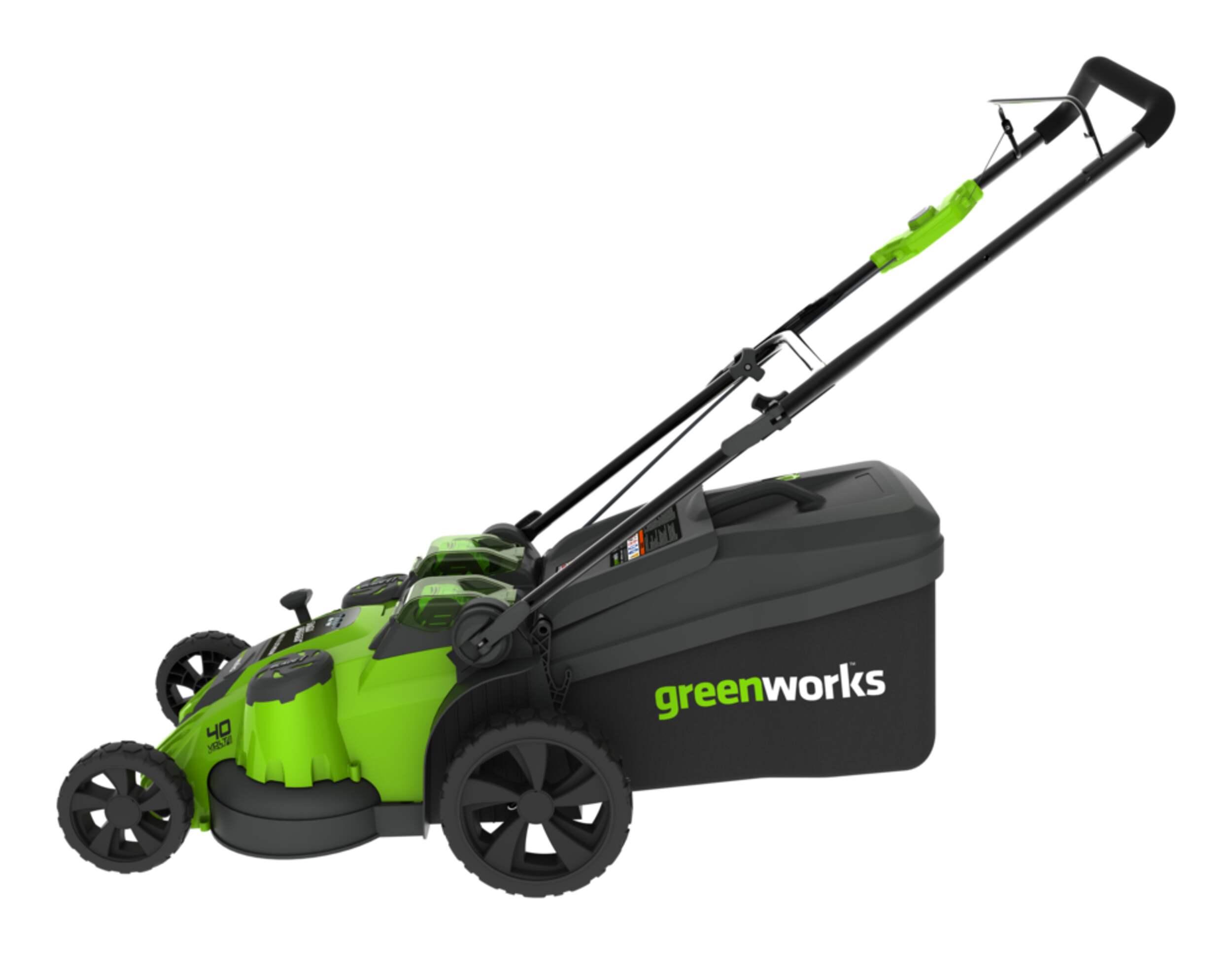 Greenworks TwinForce 40V 2-in-1 Cordless Push Lawn Mower features a dual blade design that deploys 2 powerful 40V lithium-ion batteries to deliver superior cutting performance for up to 70 minutes