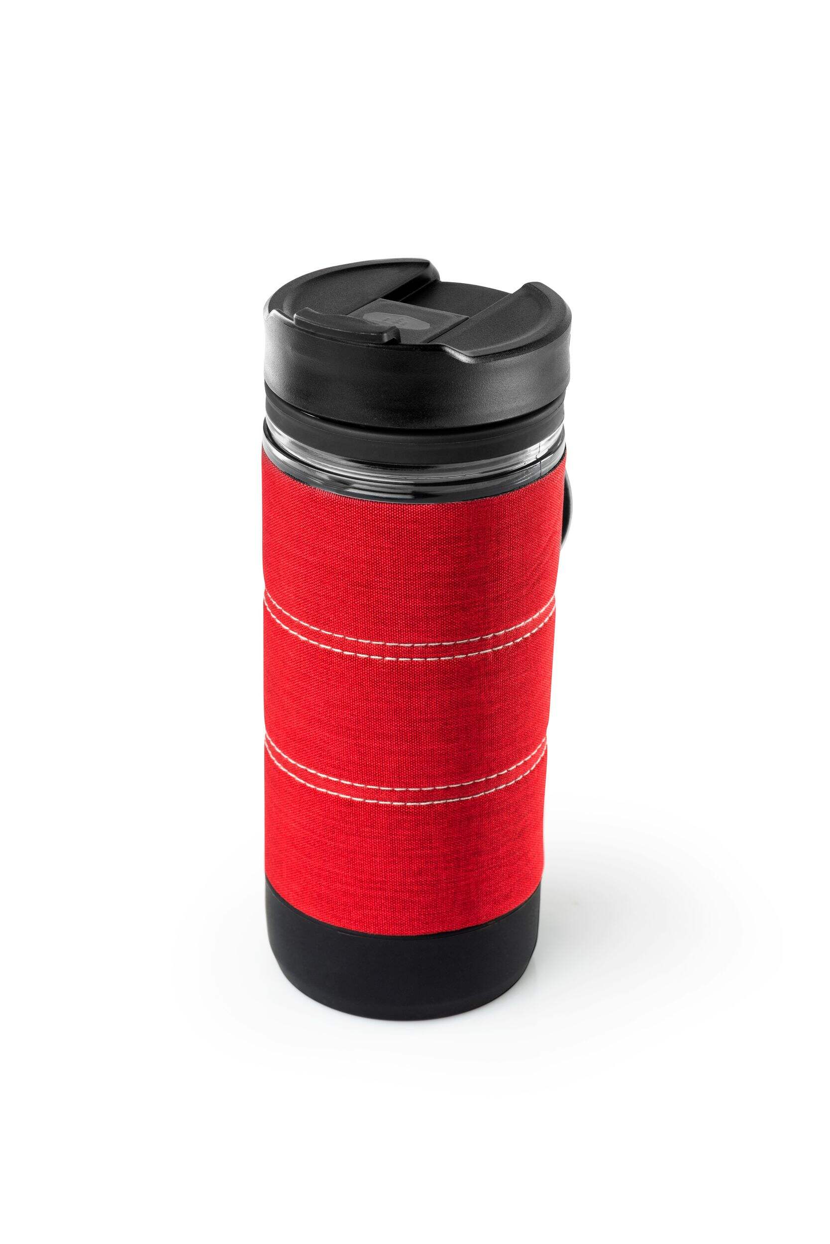 The design is pure GSI genius. The plunger is the mug. No obtrusive rod to poke you in the eye as you drink, no grounds working their way around a flimsy screen. This is the portable coffee press perfected.A precision-engineered inner sleeve acts as a no-mess press, then becomes an additional wall of insulation to keep your coffee – or tea – hot. The copolyester construction is shatter-resistant and BPA-free, the secure top seals in the heat and helps prevent spills, a rPET-wrapped insulated sleeve adds warmth and protects your hands, and the whole thing fits neatly into your cup holder.Engineered sleeve cloth made with rPET that helps to reduce waste.