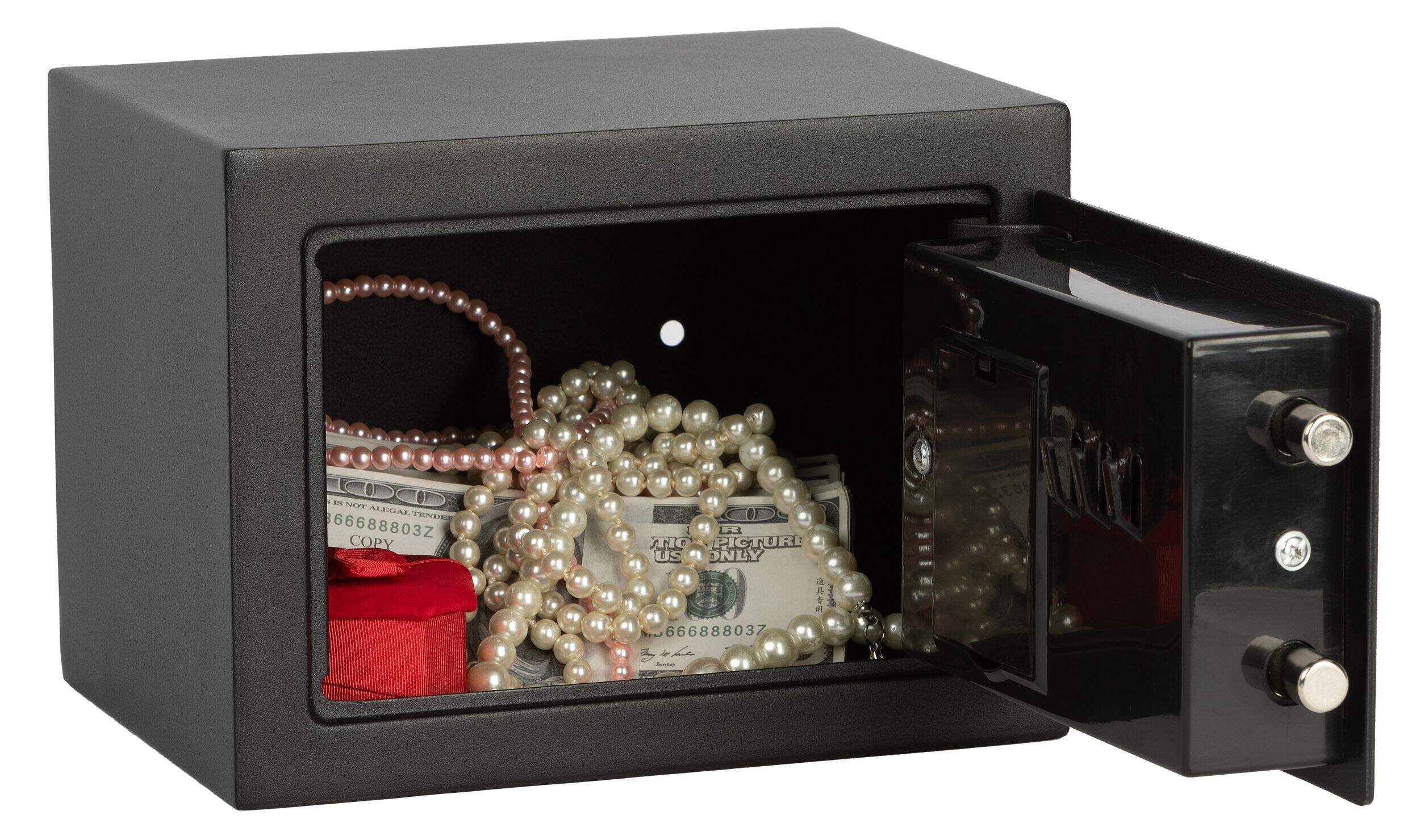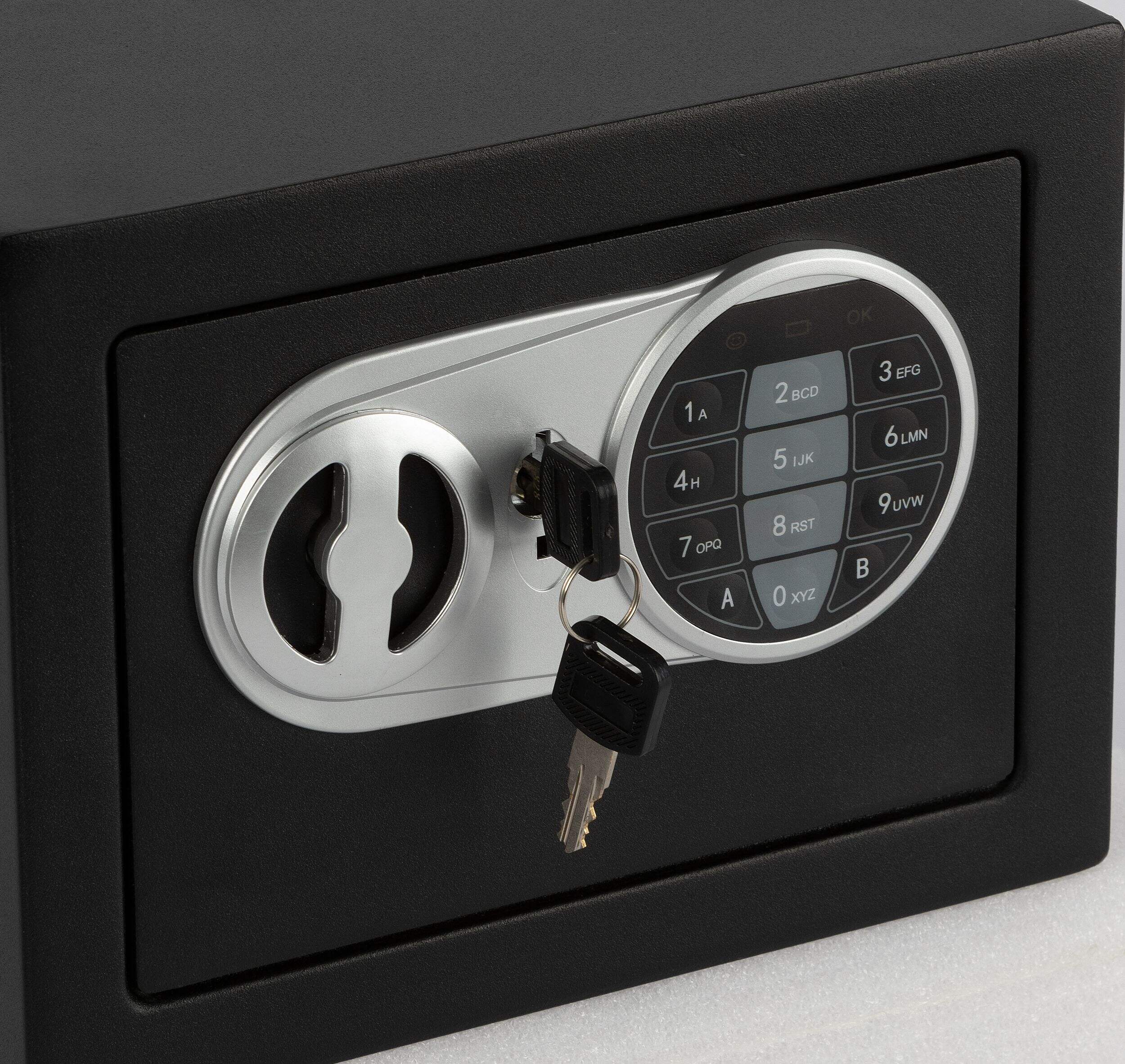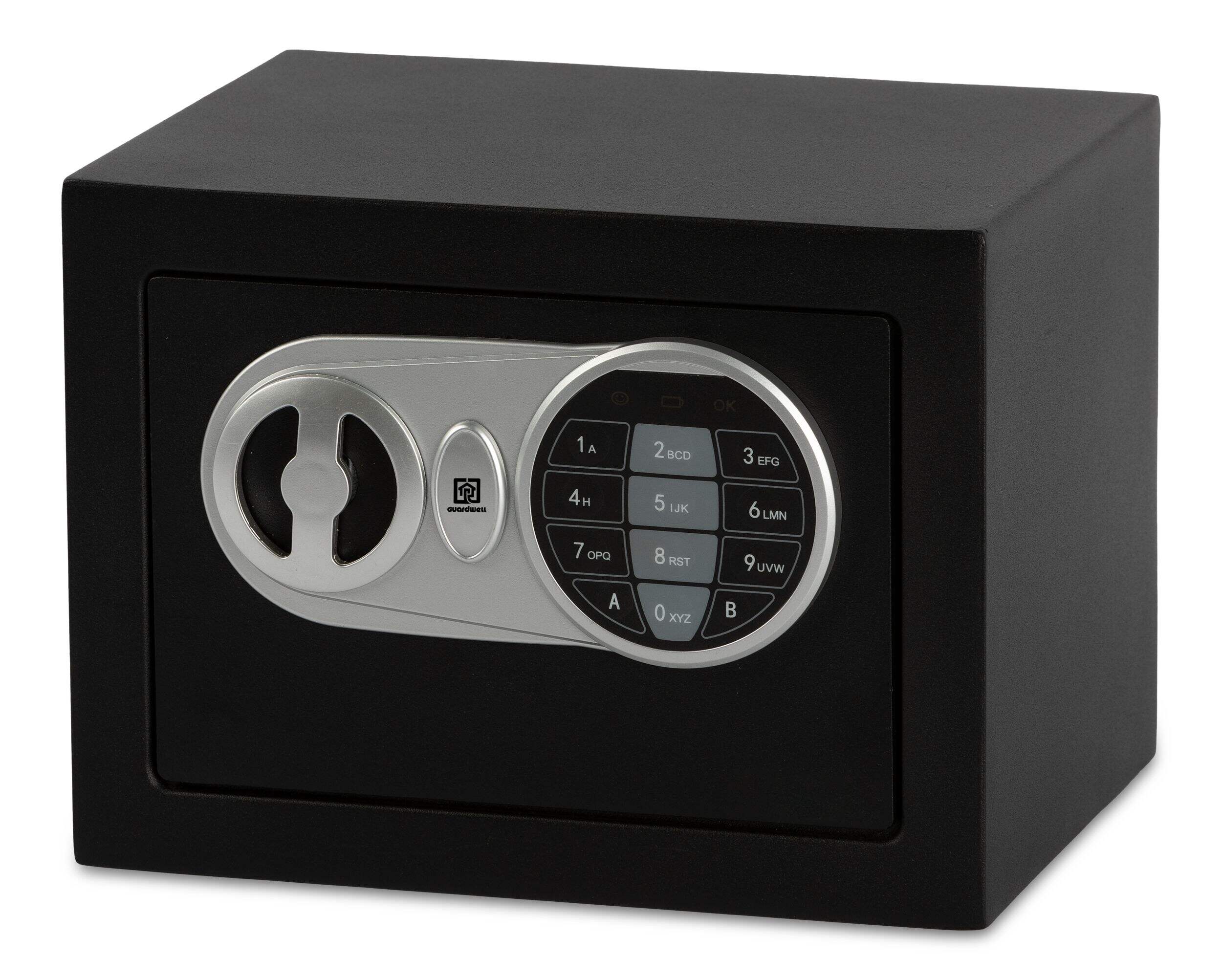 Keep your valuables secure with the Guardwell Safe Box with Digital Keypad. This safe box features a thick steel body and door to protect your belongings. The digital keypad allows you to set a custom passcode for quick, easy access. The body thickness, digital passcode, and moderate capacity make the Guardwell Security Safe a reliable choice for storing small important items or documents.