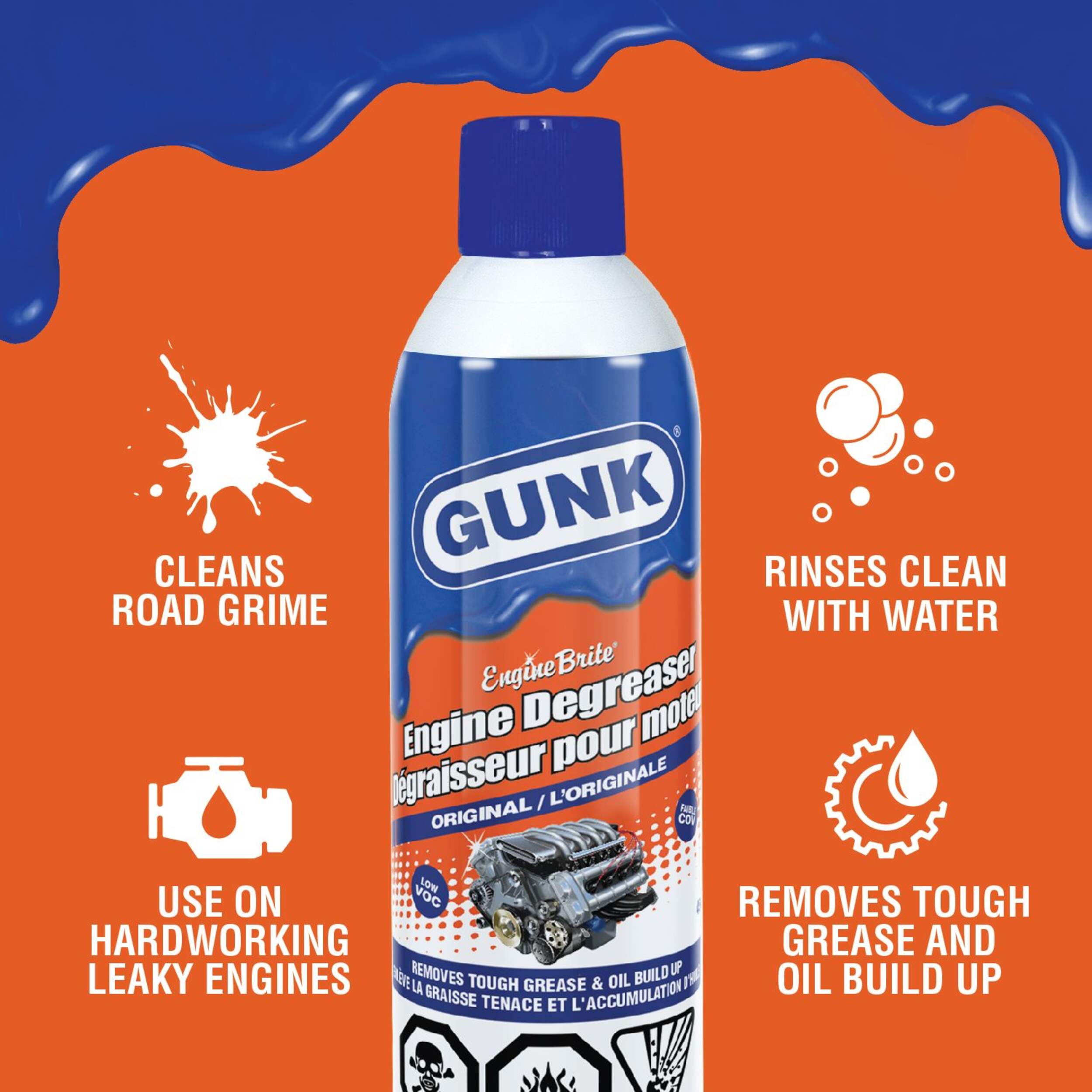 GUNK Original Engine Degreaser is one of our best selling formula that is specially formulated for older, greasy engines. It boasts a deep cleaning and fast acting formula. Save the elbow grease for other jobs. Just spray GUNK’s Original Engine Degreaser on your engine, wait 10-15 minutes, hose it down and you’re done! Use GUNK’s Original Engine Degreaser on cars, trucks, power mowers, RV’s, ATV’s, bikes, farm equipment, tractors and more!