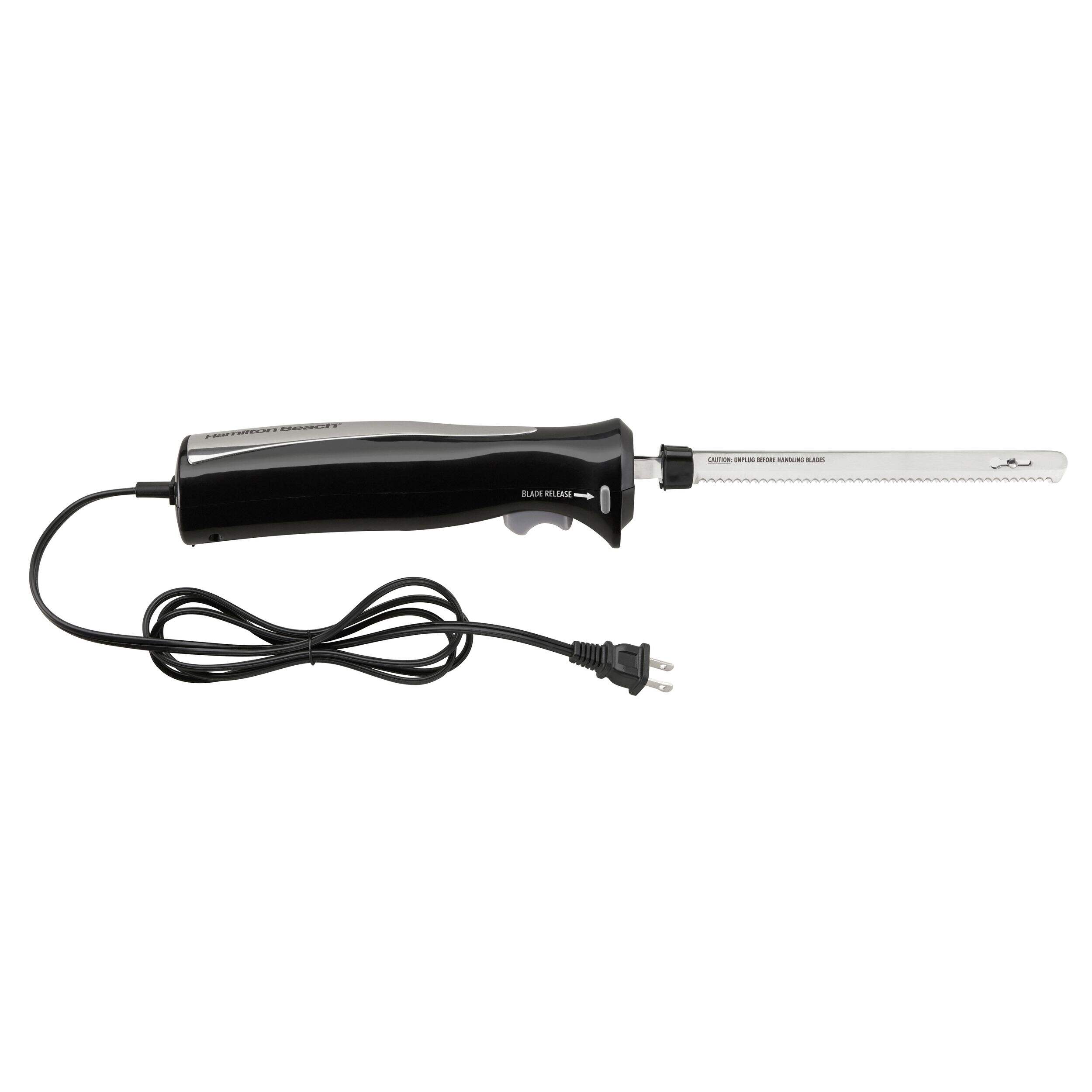 Slice and dice with ease with this Hamilton Beach Carve 'n Set™ Electric Knife Set. Designed for easy use, this powerful electric knife allows you to slice and cut almost anything from large cuts of meat to crusty bread with less effort than standard carving knives. Plus, this electric knife set comes with a convenient storage case that keeps the blades and other parts organized, so you'll always know where to find it when you're ready to serve your next holiday roast or meal.