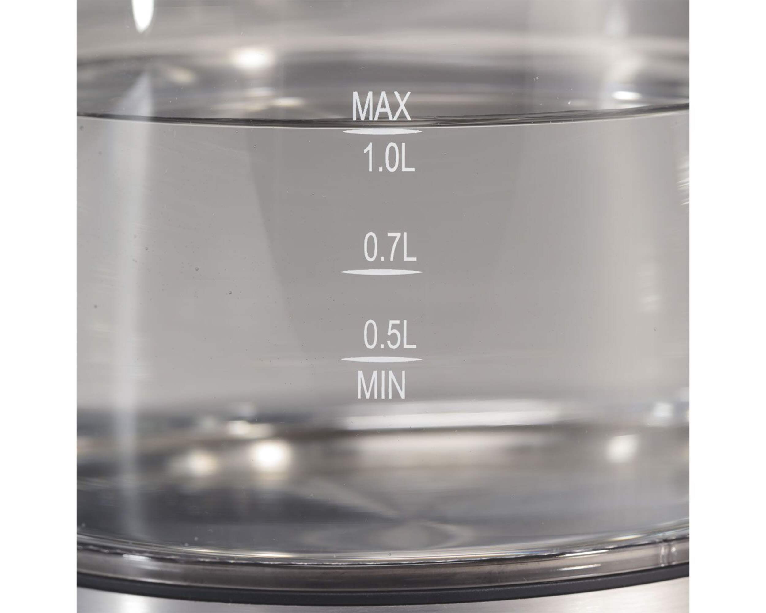This Hamilton Beach Cordless Electric Kettle with Auto Shut Off & Blue LED Light is perfect for small spaces yet still packs a punch. Quickly boil water for tea, coffee, soup or hot chocolate in this 1-litre design with a push-button lid without compromising precious countertop space. The electric kettle comes with easy-pour spout and stay-cool handle which ensures comfort while the 1500 watt rapid boil and auto shut-off help prevent boiling dry. With its attractive design, this space-saving kettle elevates any kitchen while its cordless and lift-off base make serving at the table a breeze.