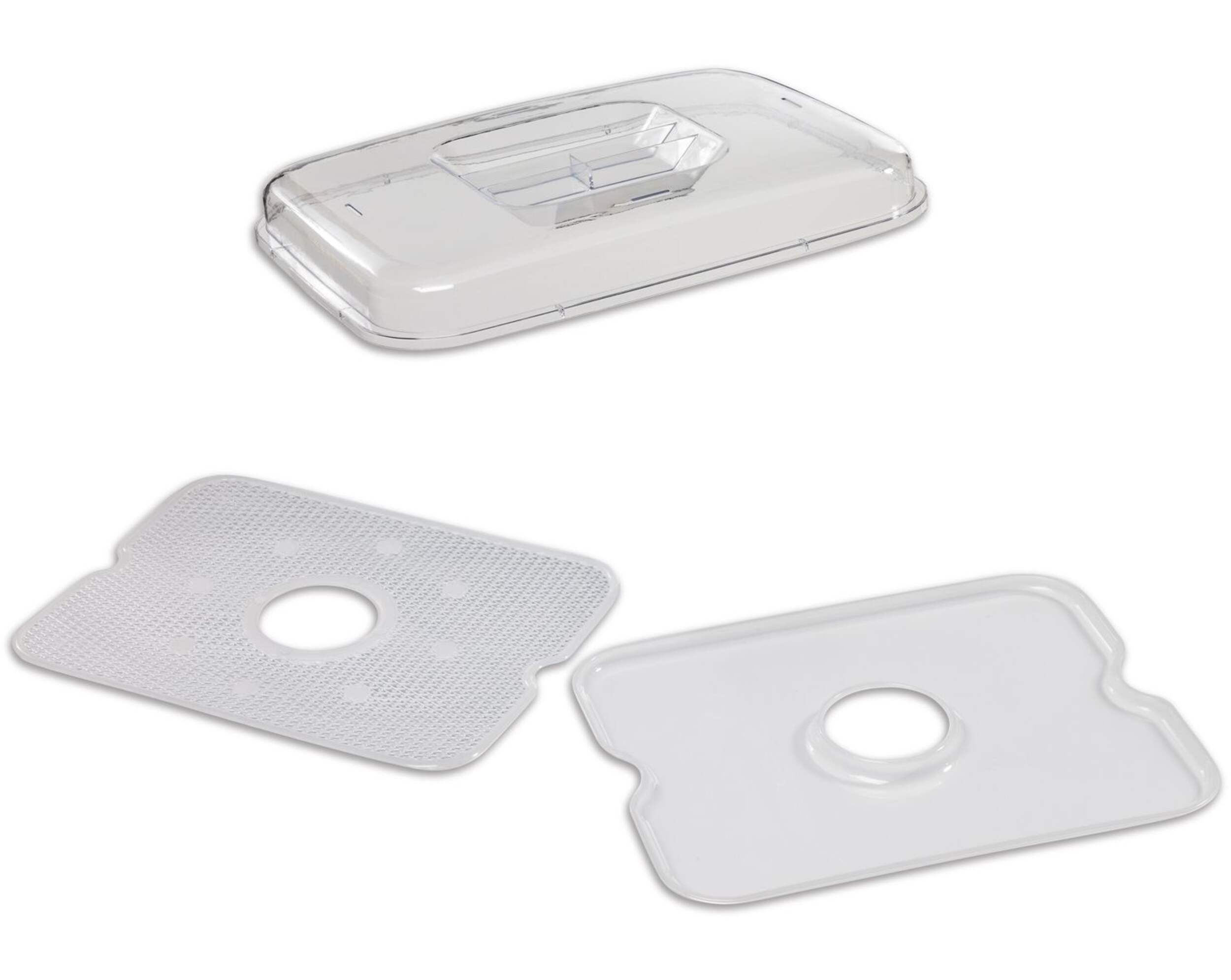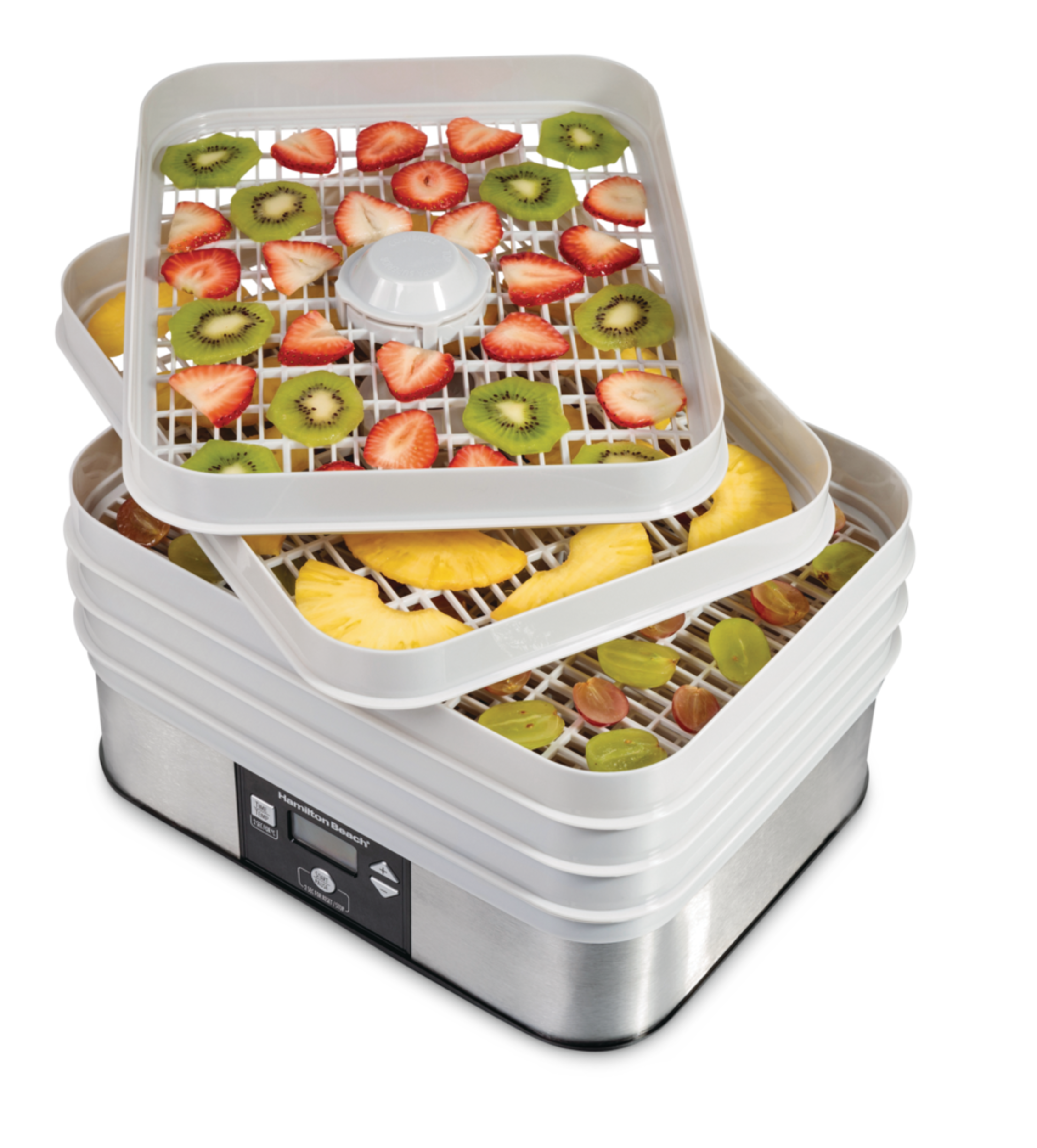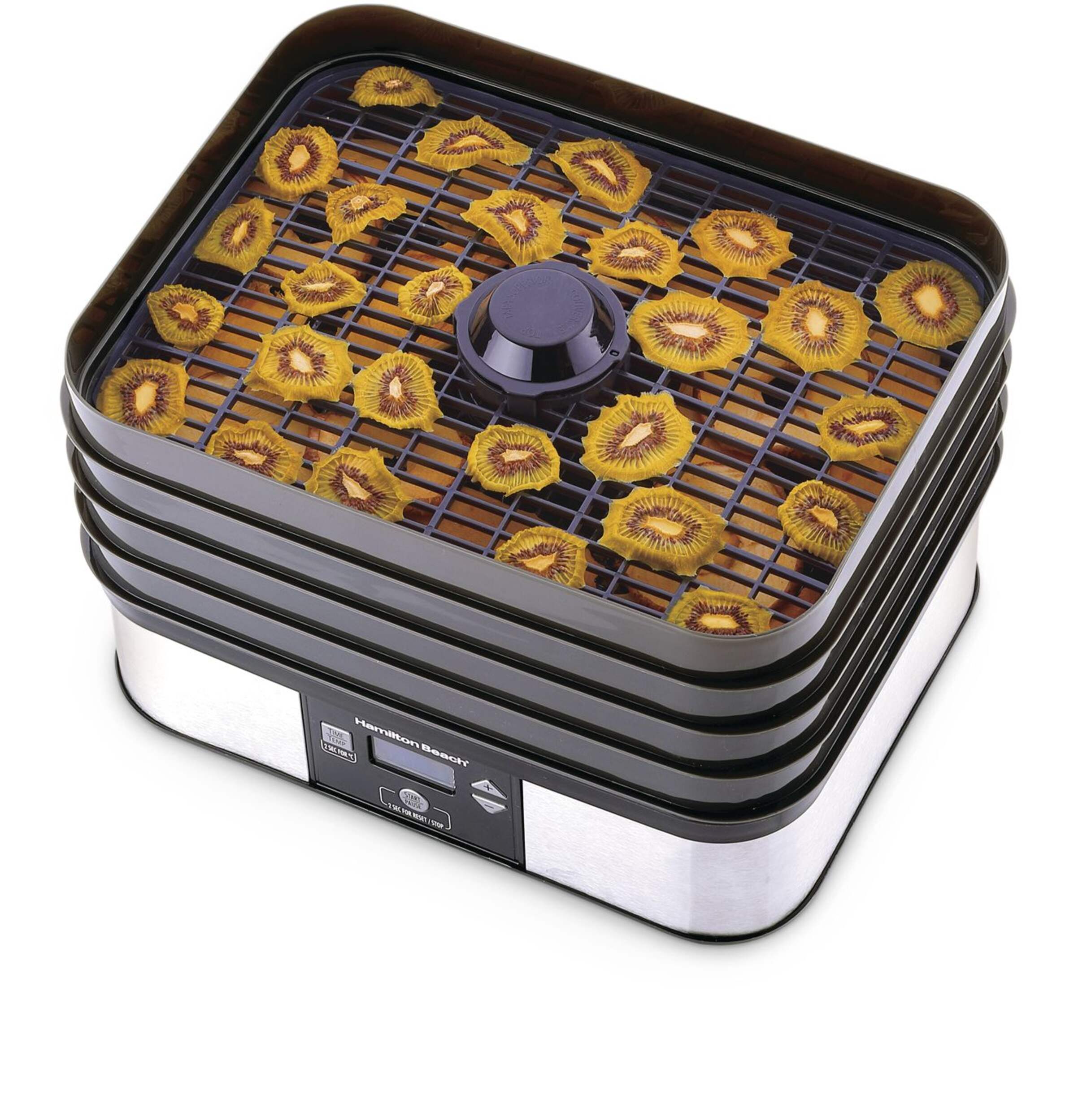 Includes (5) stackable drying trays, (1) fine-mesh sheet for small foods like herbs and (1) solid fruit roll sheet
