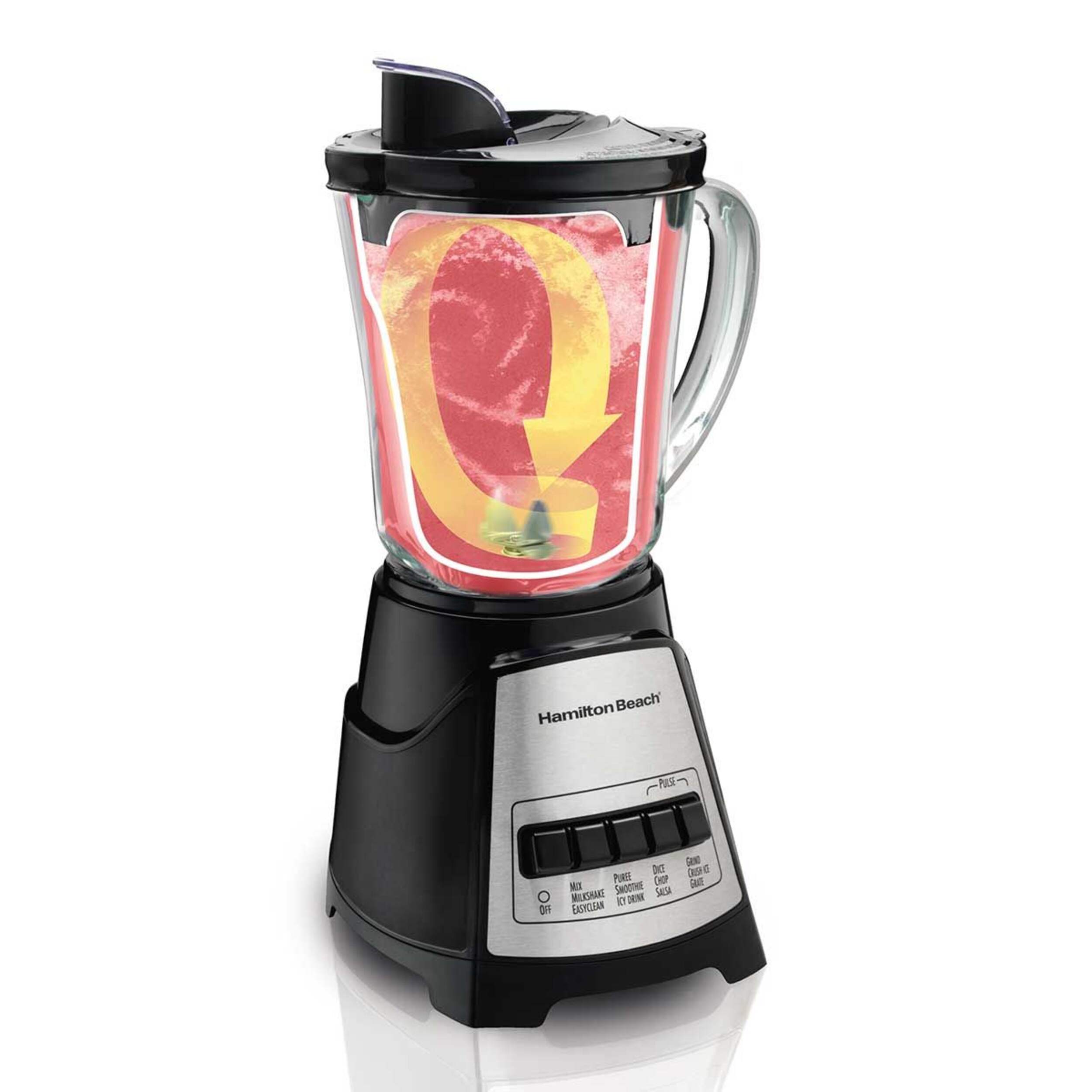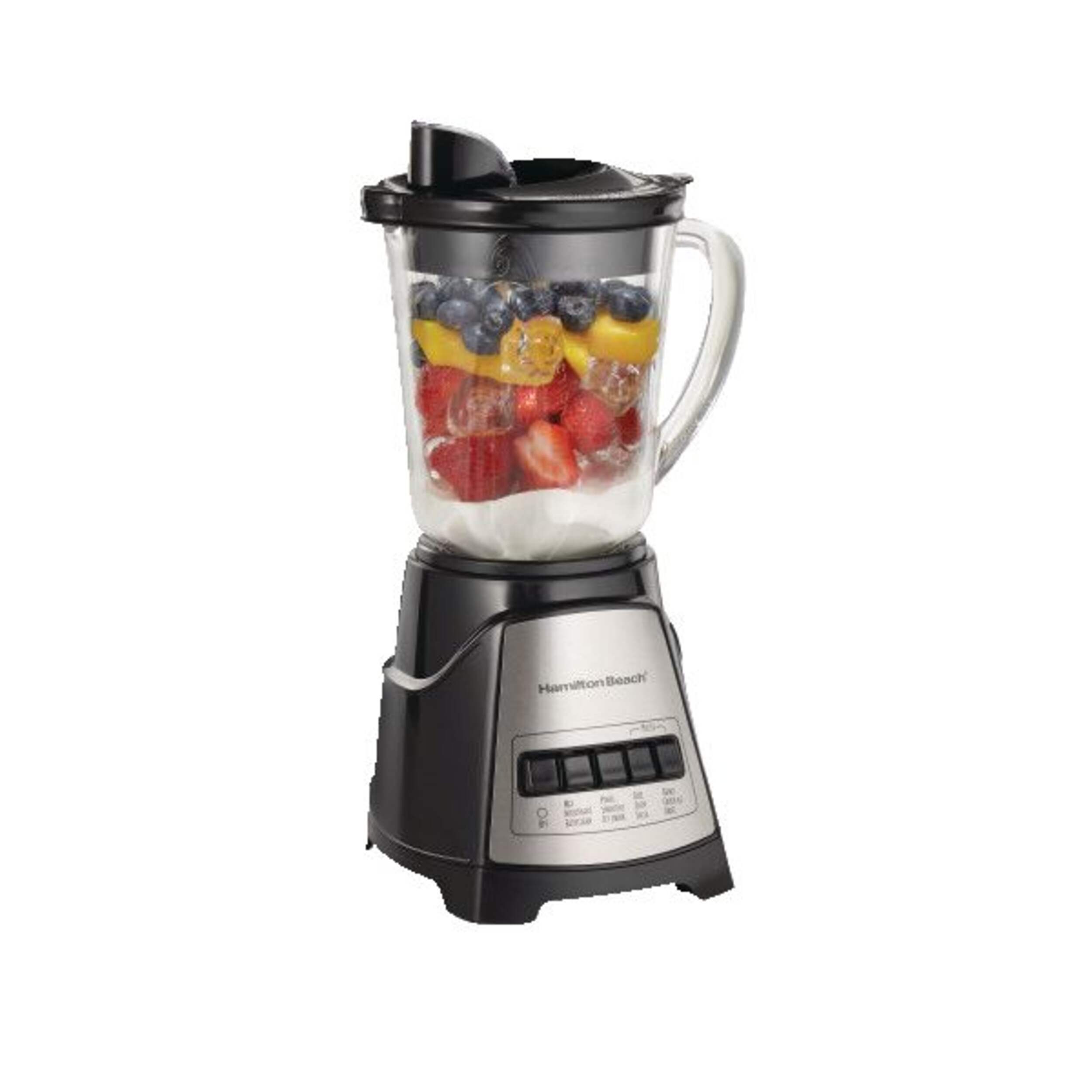 The Hamilton Beach Power Elite Blender with Wave Action is a multi-tasking kitchen appliance. With just the press of a button, you can simplify blending classic beverages like smoothies and frozen drinks as well as prepare foods like salsas and purées. The 4 simple blending functions take the guesswork out of blending tasks so you can quickly pulse, dice, chop or grate ingredients to create flavourful meals and snacks in this blender.