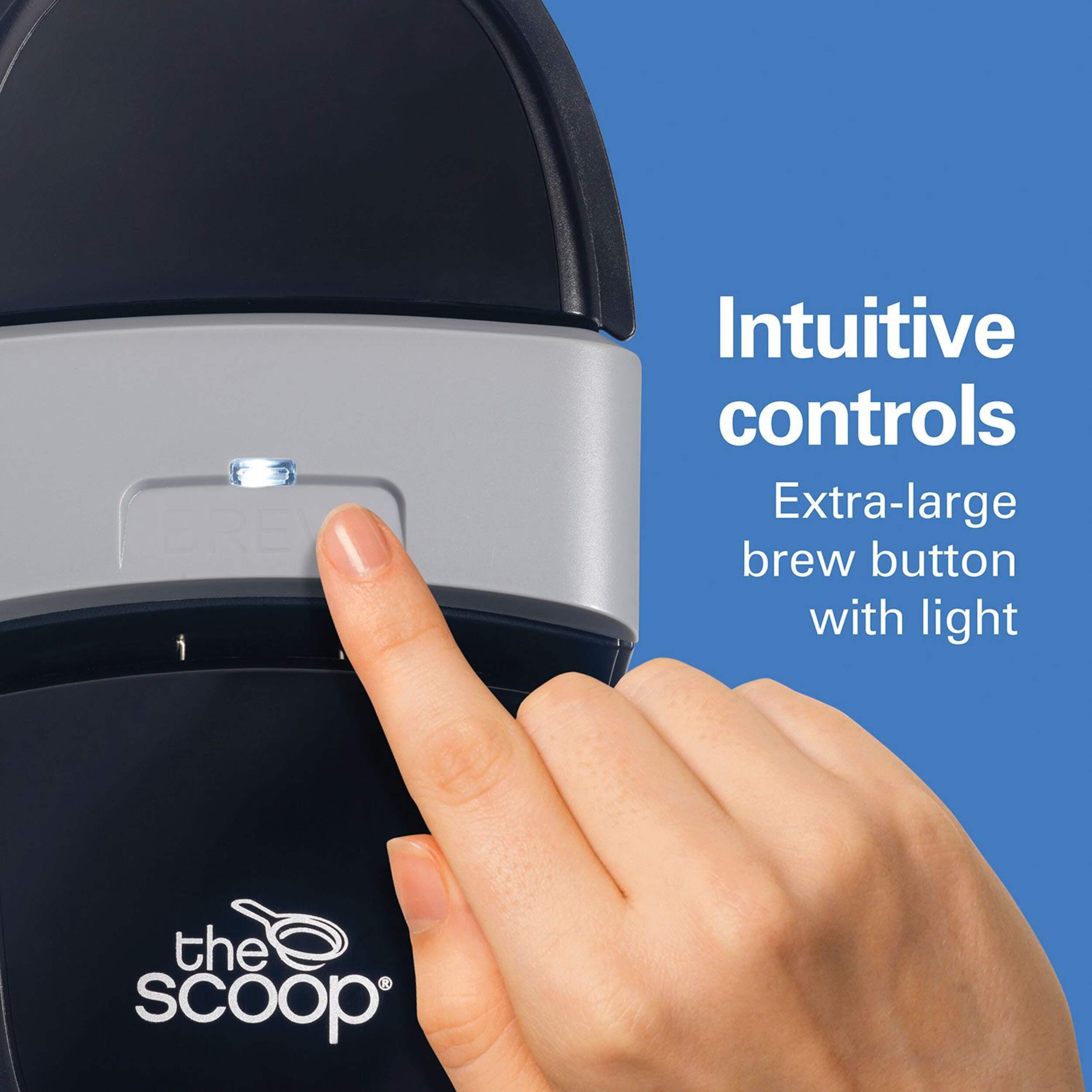 Intuitive controls — extra-large brew button with light