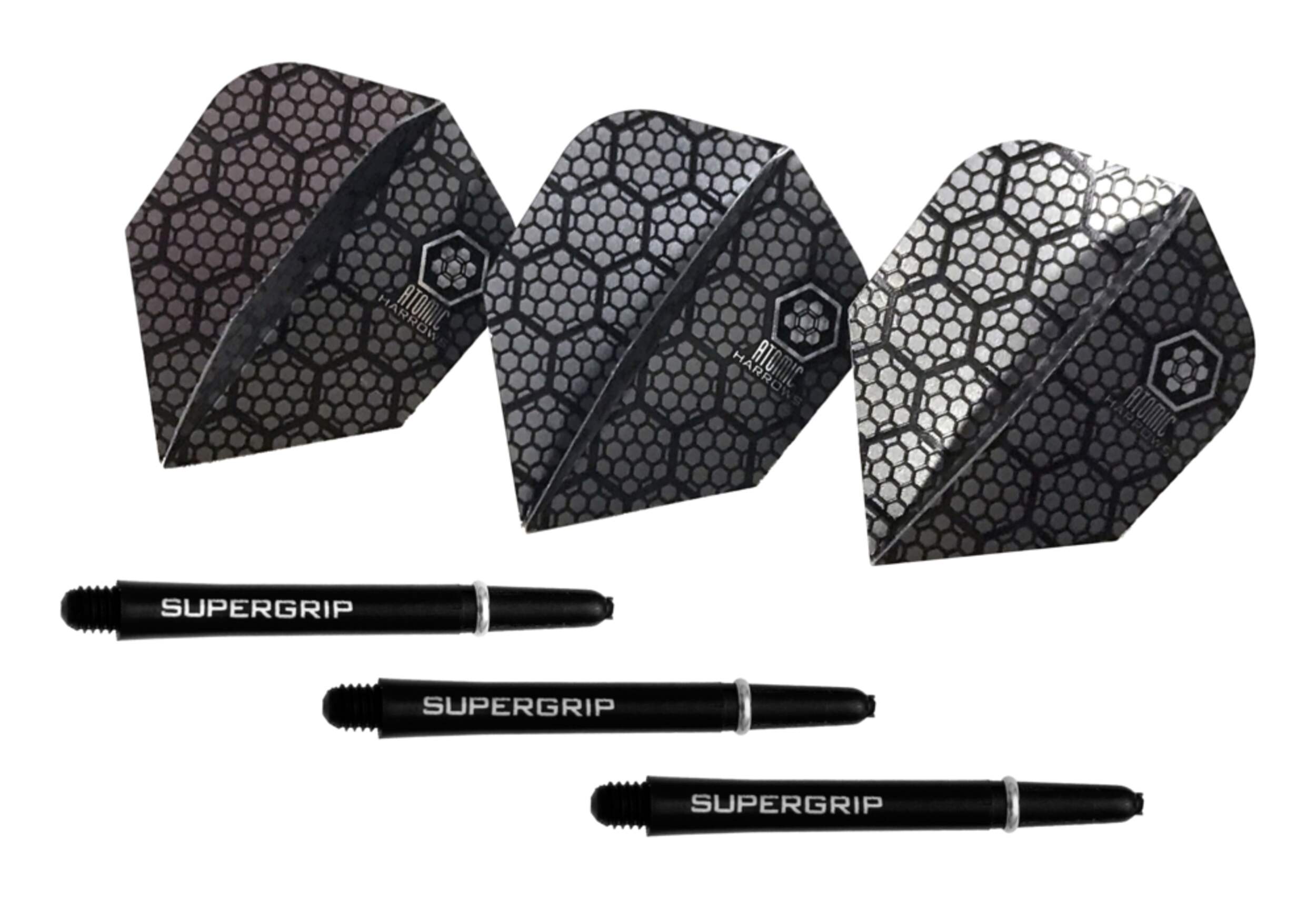 Harrows Dart Accessory Twin Pack features world beating Supergrip shafts and aerodynamic Atomic flights