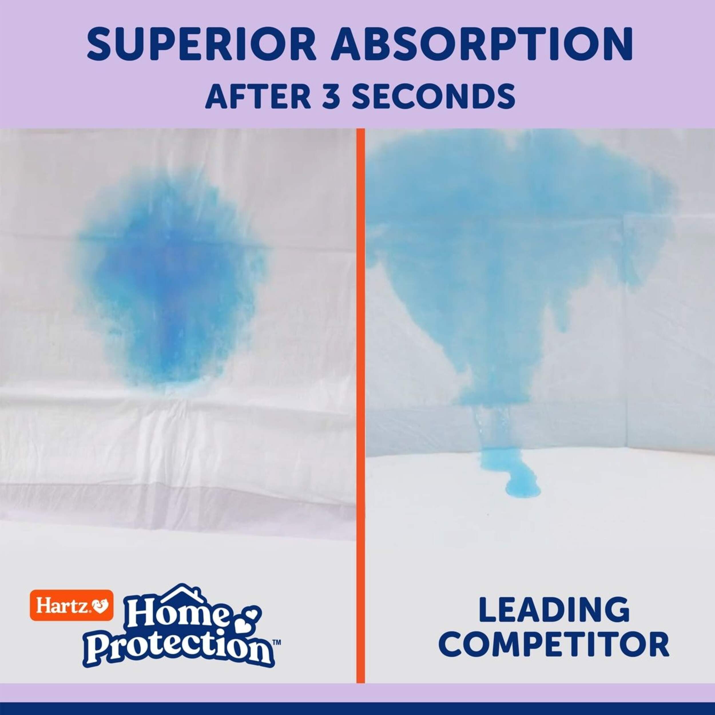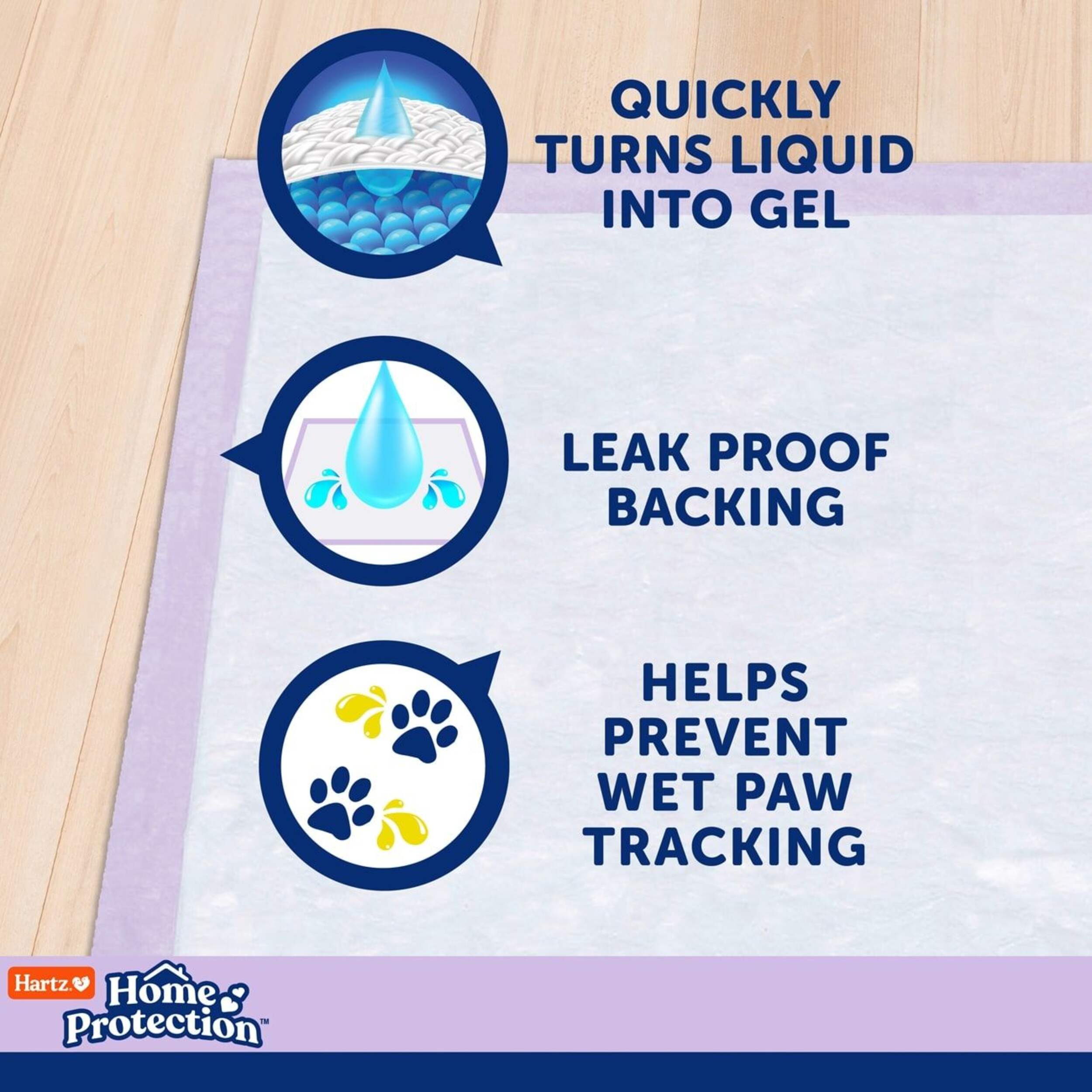 Hartz Home Protection Odor Eliminating Dog Pads features unique Flash-Dry technology instantly that turns liquid into gel, locking in moisture to prevent messy leaks and unpleasant odors