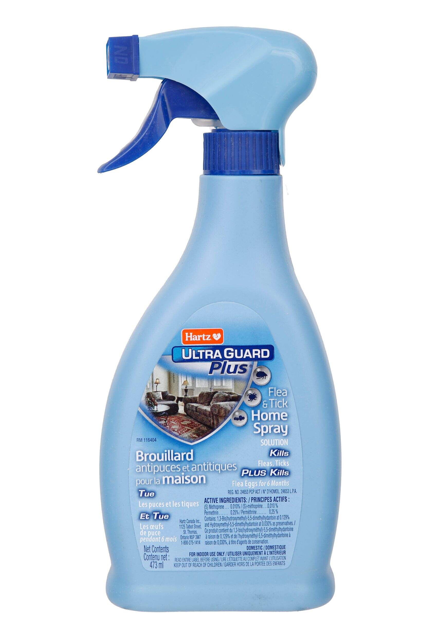 Hartz Ultra Guard Plus Flea and Tick Home Spray For Dogs and Puppies eliminates fleas, eggs, and ticks. This easy-to-use spray bottle can be sprayed on surfaces like carpets, floors, and furniture. The formula inside kills fleas and ticks on contact while preventing future infestations. This effective home spray keeps your dog flea- and tick-free without the need for monthly applications.