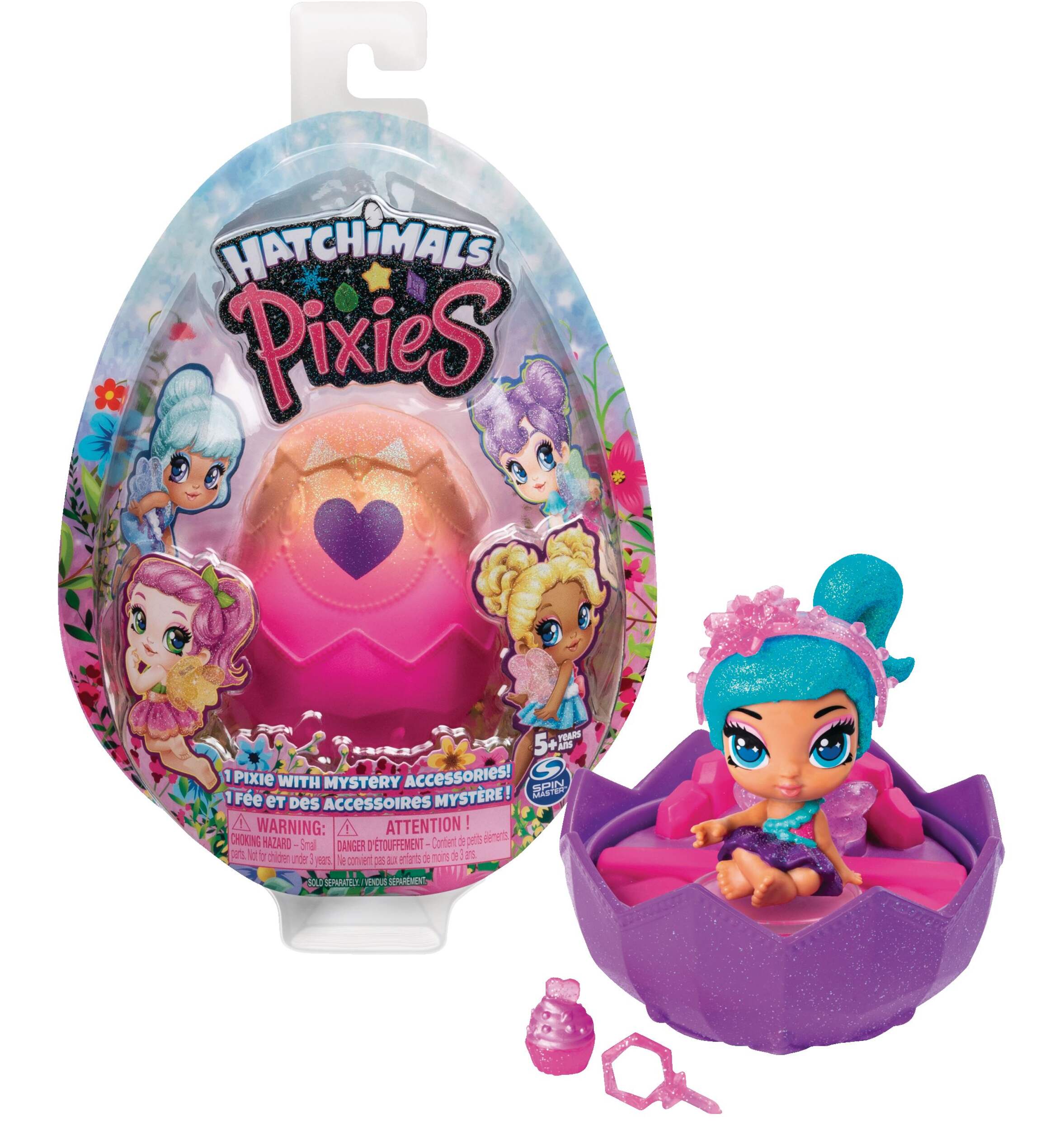You may be interested in these similar products shown below.New friends have arrived in Hatchtopia! Meet the Hatchimals Pixies, collectible dolls that hatch to life with your loving touch. There are 4 different Hatchimals Pixies eggs available! To hatch, hold the egg and rub the purple heart until it turns pink. Gently press down to crack the shell and find out which perfect Pixie is inside!