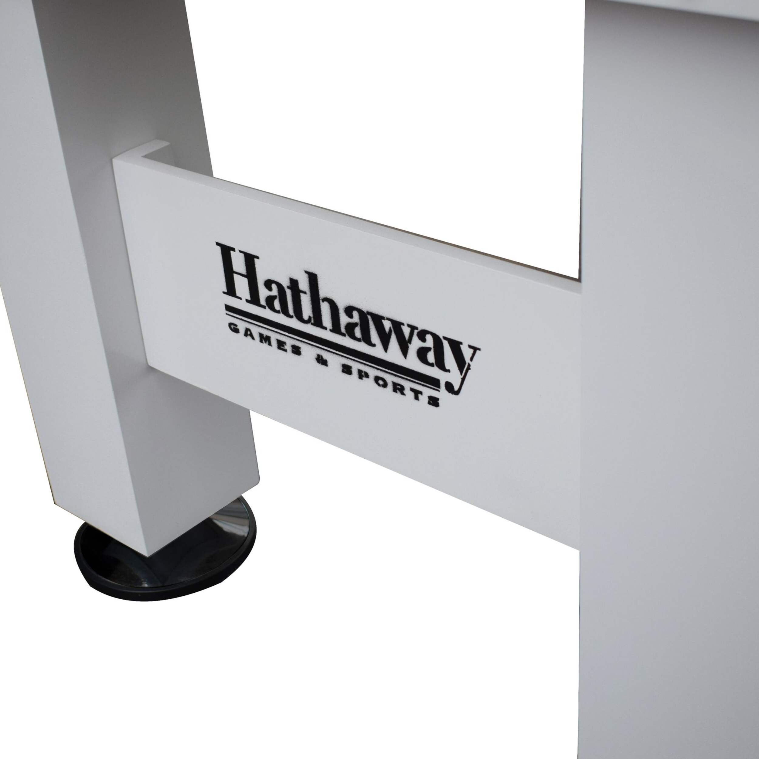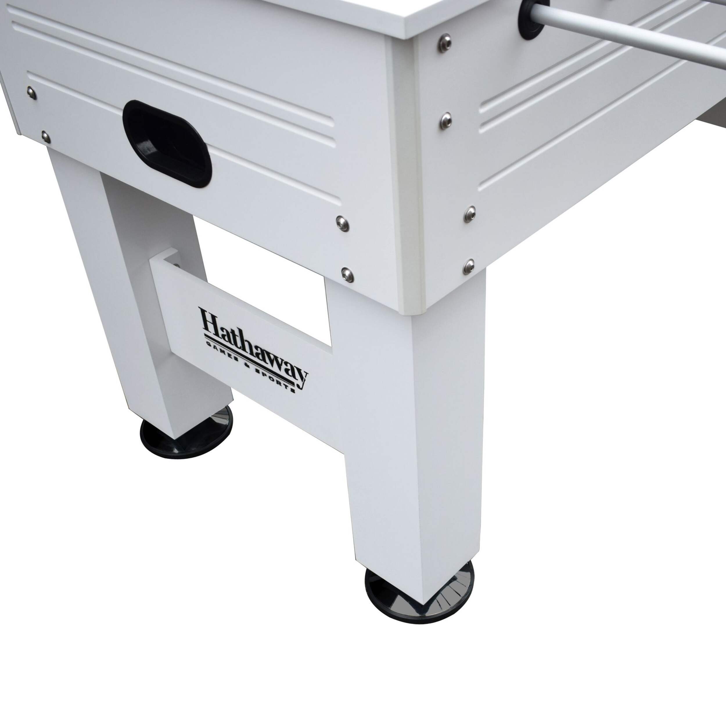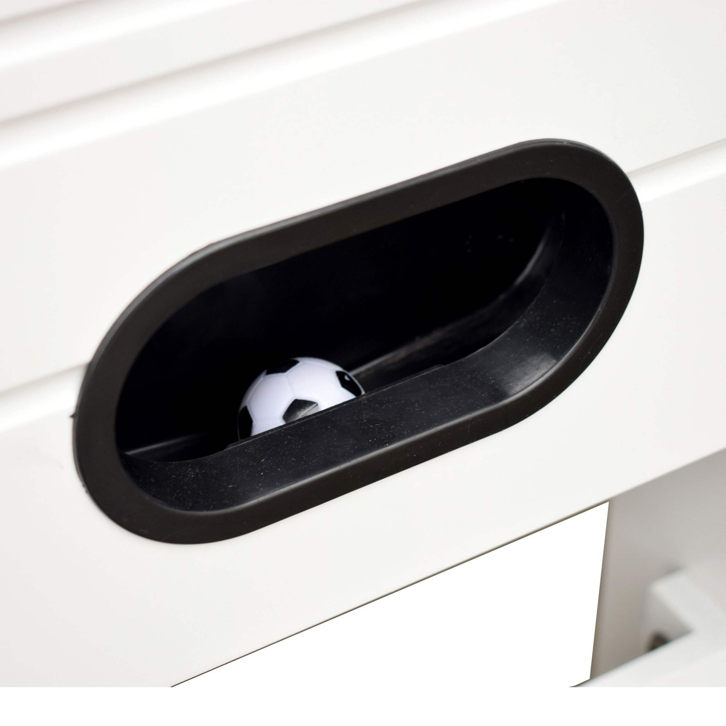 Hathaway Highlander Outdoor Foosball Table with Waterproof Surface is a laminated weather resistant HDF frame cabinet that is finished in a durable gloss white finish