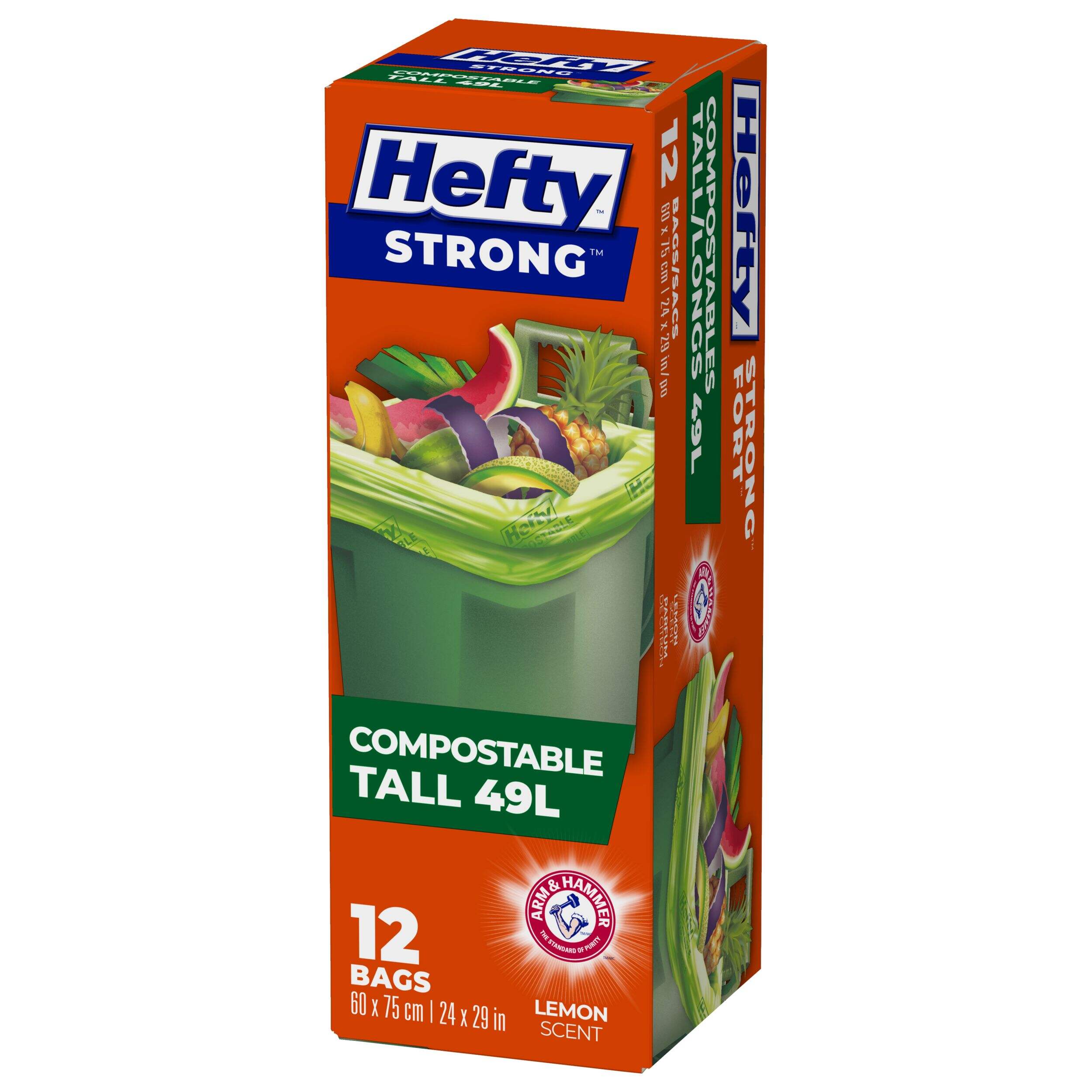 Hefty® STRONG™ Tall 49-L Compostable Garbage Bags with ARM & HAMMER™ & Lemon Scent, 12-pk
