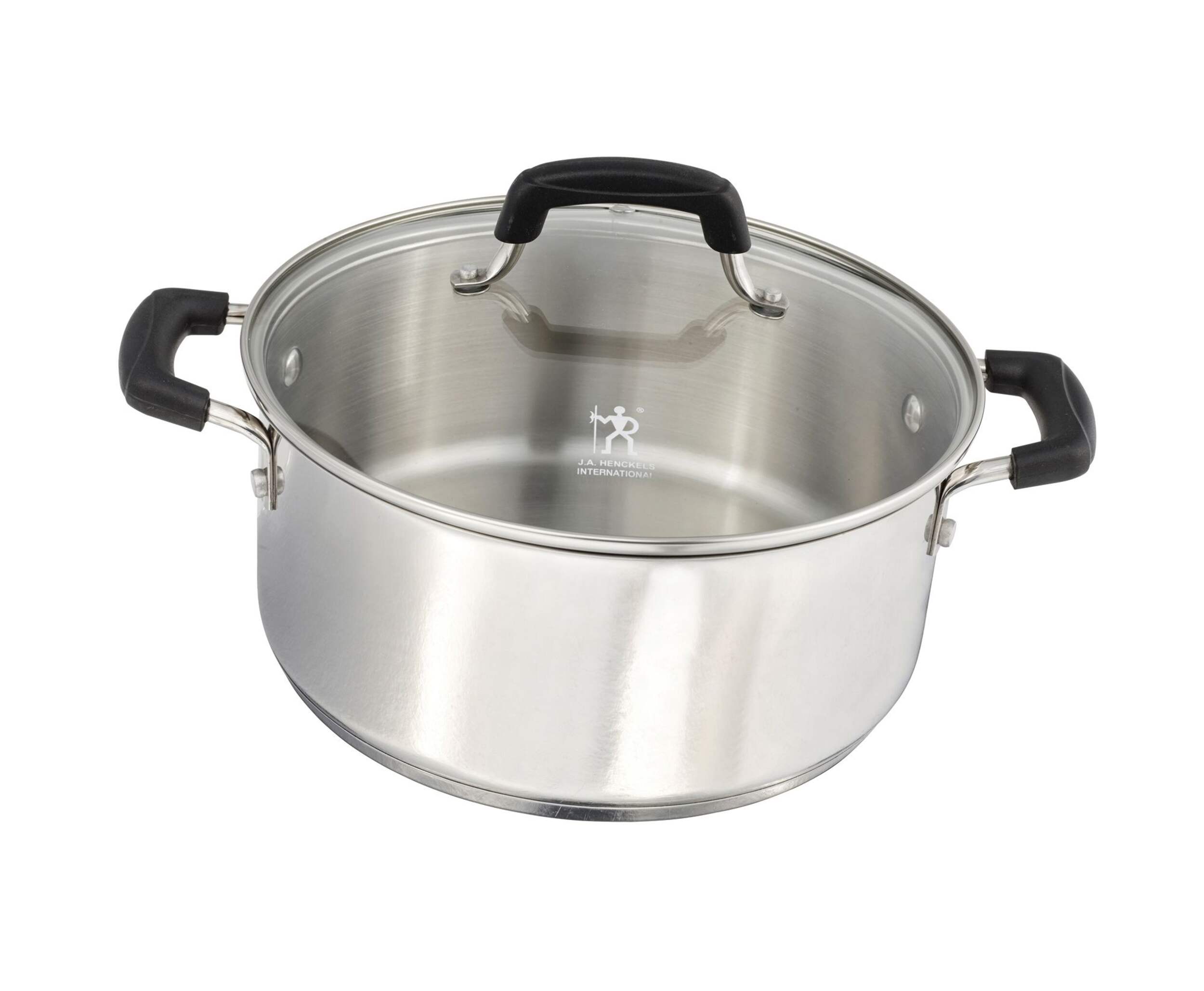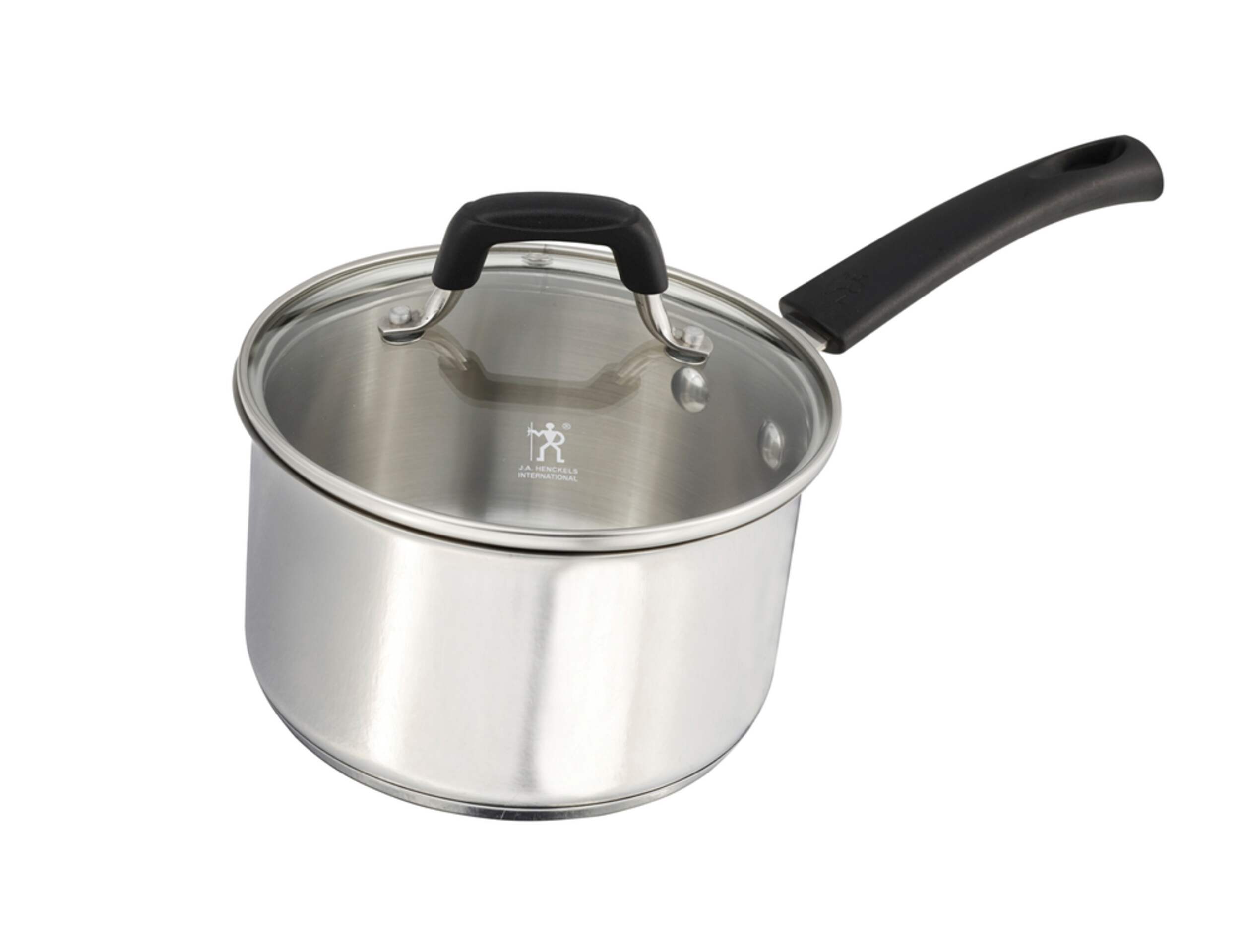 Henckels Stainless Steel Cookware Set is made of heavy gauge stainless steel and includes an impact bonded encapsulated base for fast and even heat distribution