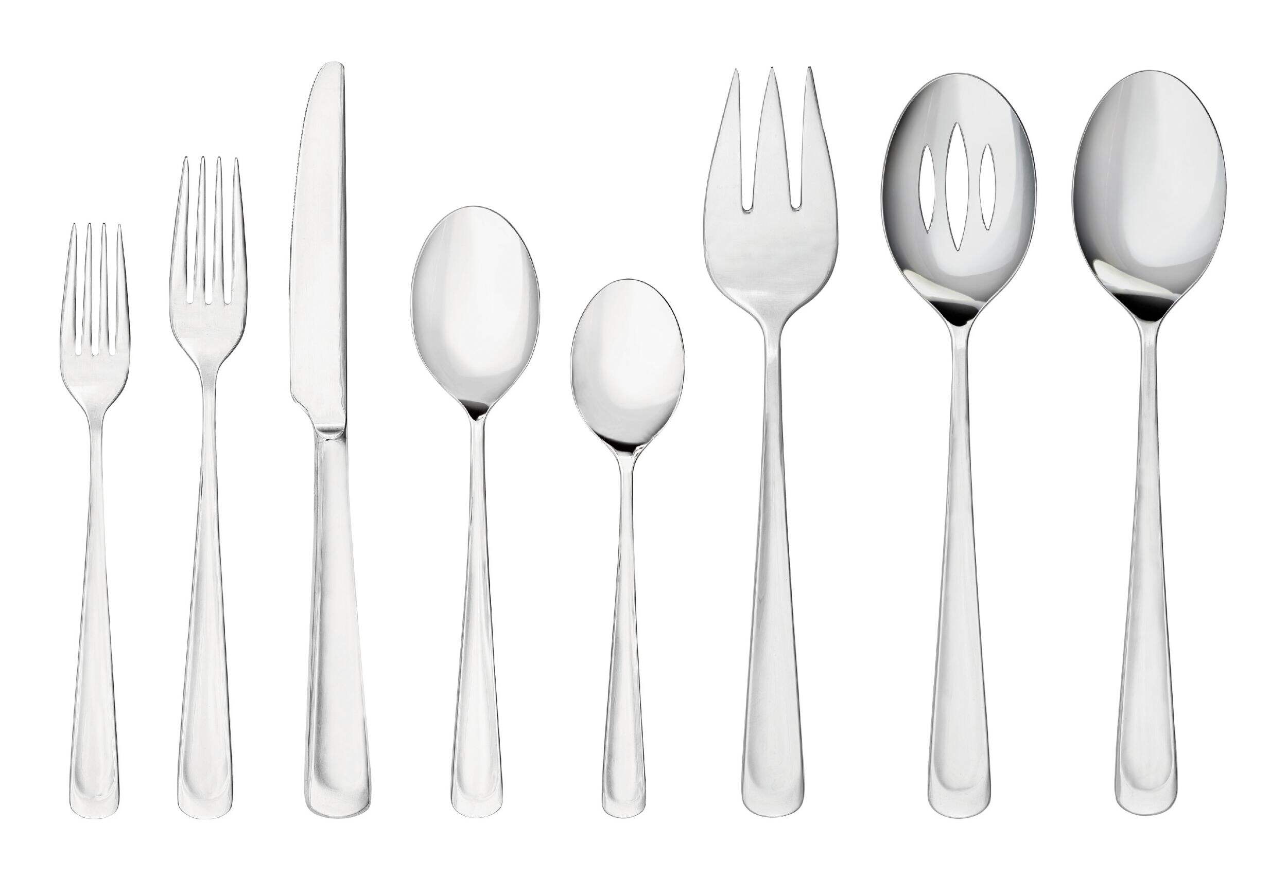 | Pieces Included | Dinner Fork, Dinner Knife, Dinner Spoon, Salad Fork, Teaspoon, Serving Spoon, Slotted Spoon, Meat Fork |