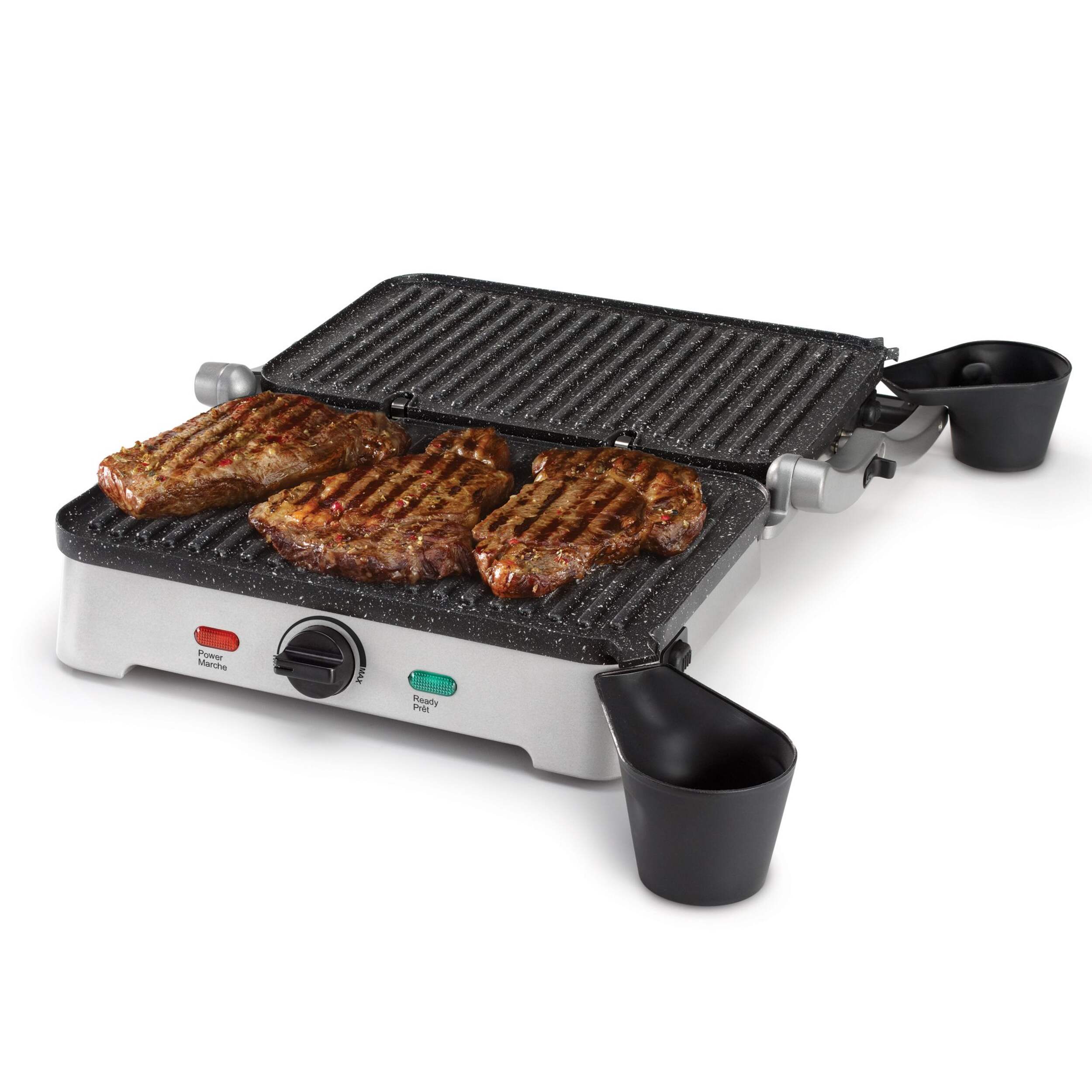 • Detachable grill plates are extra-thick and treated with our patented Rock.Tec surface treatment to provide optimal heat distribution for even cooking and superior food release