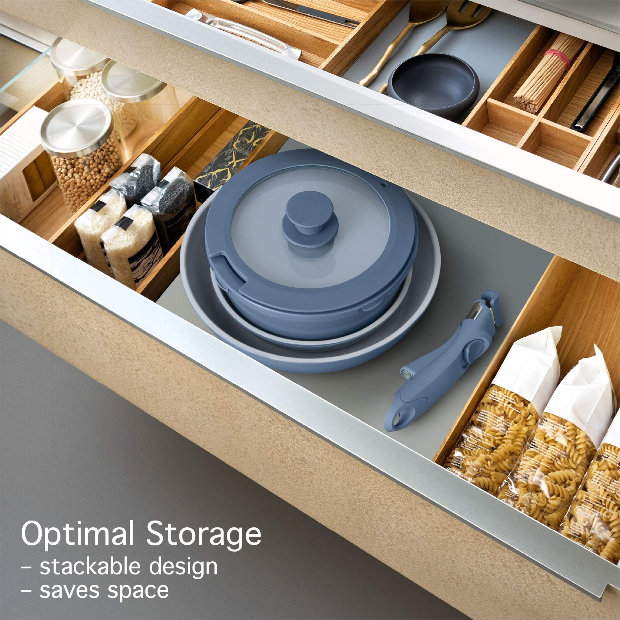 • Versatile detachable handle with a secure locking system- from stovetop to oven to table