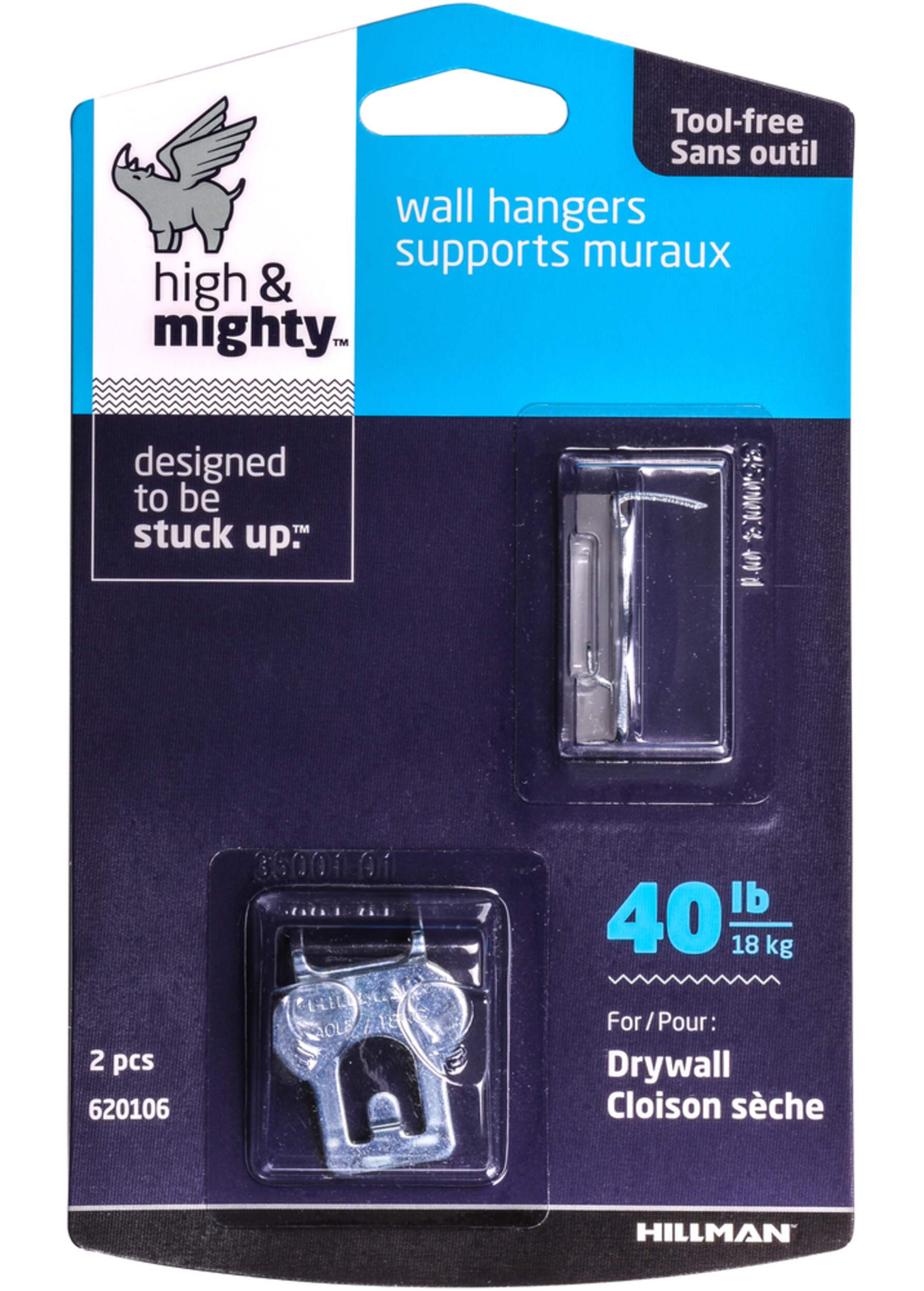 High & Mighty wall hangers allow you to easily display pictures, mirrors, decor and gallery walls without any tools - simply place, push and hang. Using just your thumbs, you can instantly transform inspiration into installation. The various weight options mean there's a hanger for anything you want up on your walls, no matter the size. Pictures, mirrors and wall decor go up in seconds - and removing or replacing the hangers is as simple as using a flathead screwdriver.