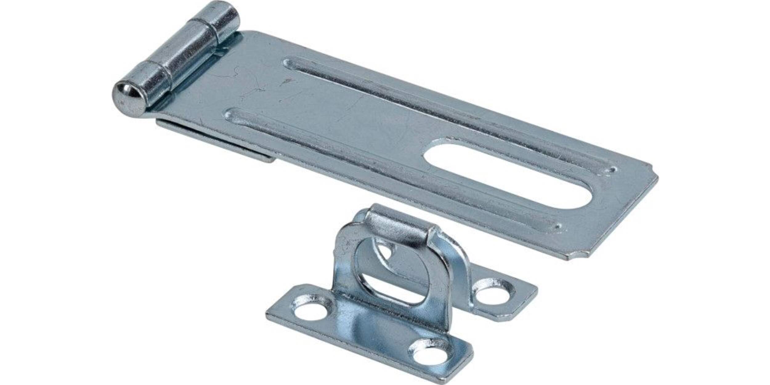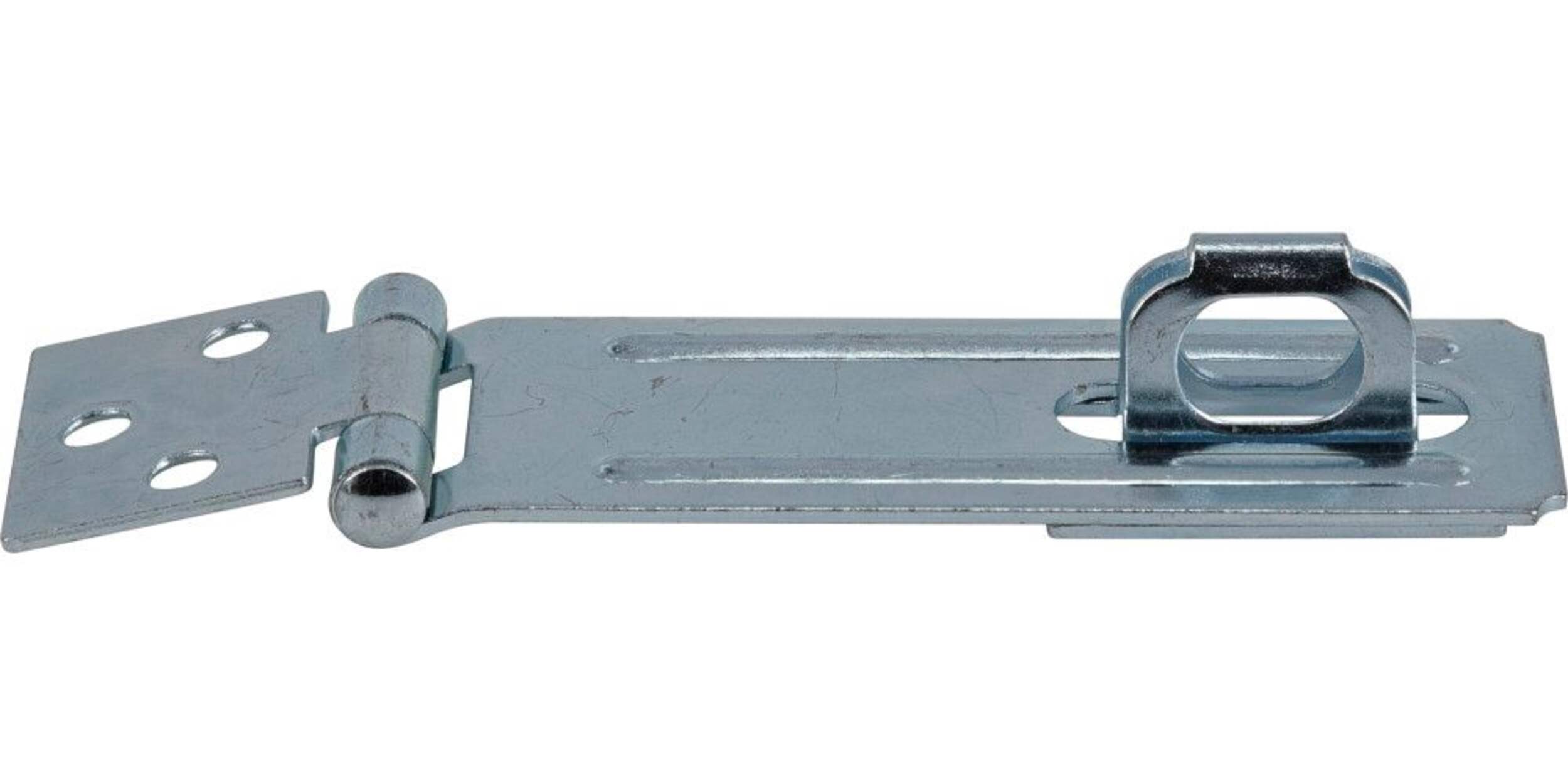 Hardware Essentials Fixed Staple Safety Hasps Zinc (4-1/2") are great for corner applications. Use on gates, doors, or any pieces you want an added measure of security on.