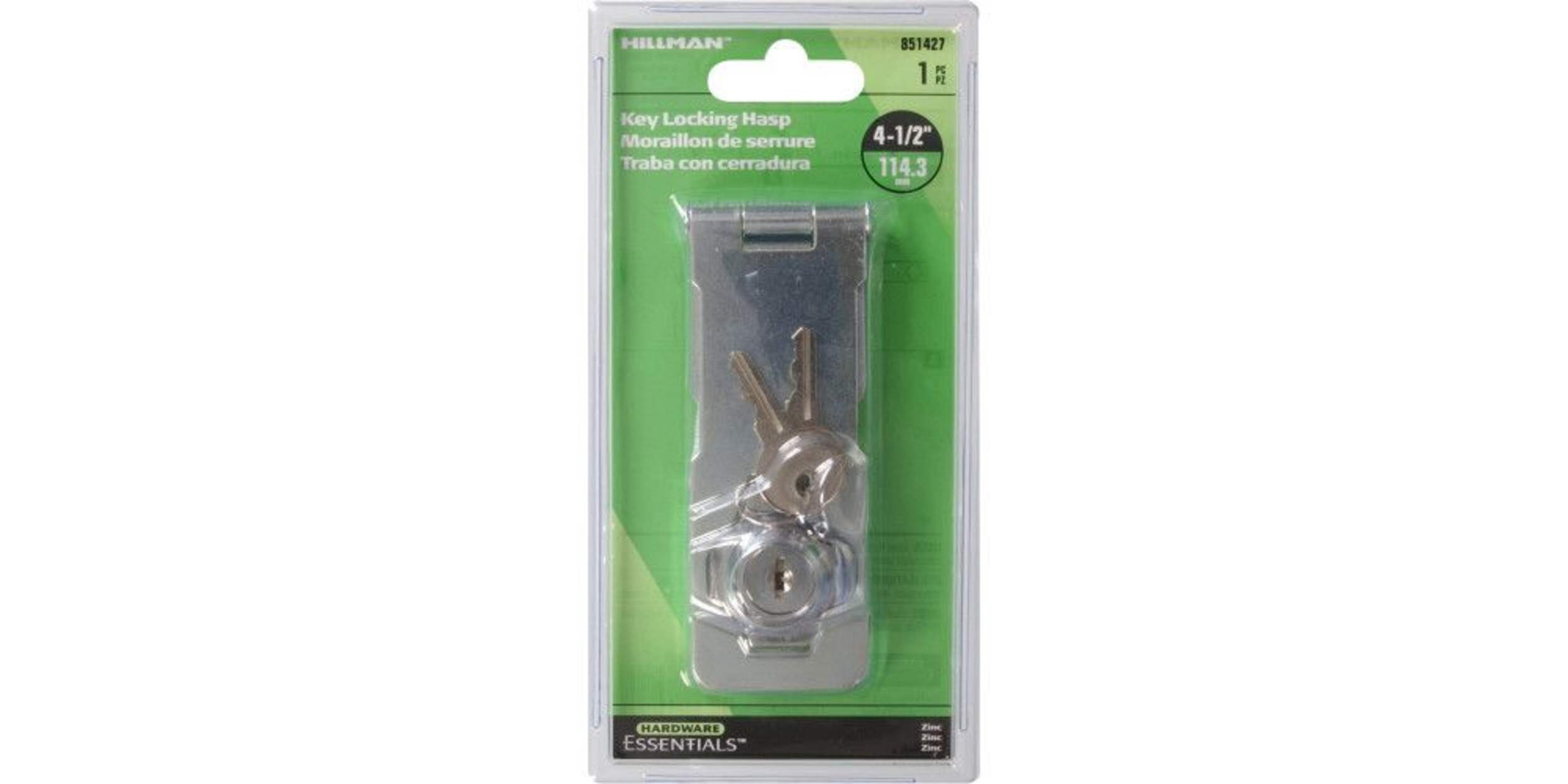 Hillman Gate Keyed Safety Hasp is for securing and locking doors, cabinets, etc.
