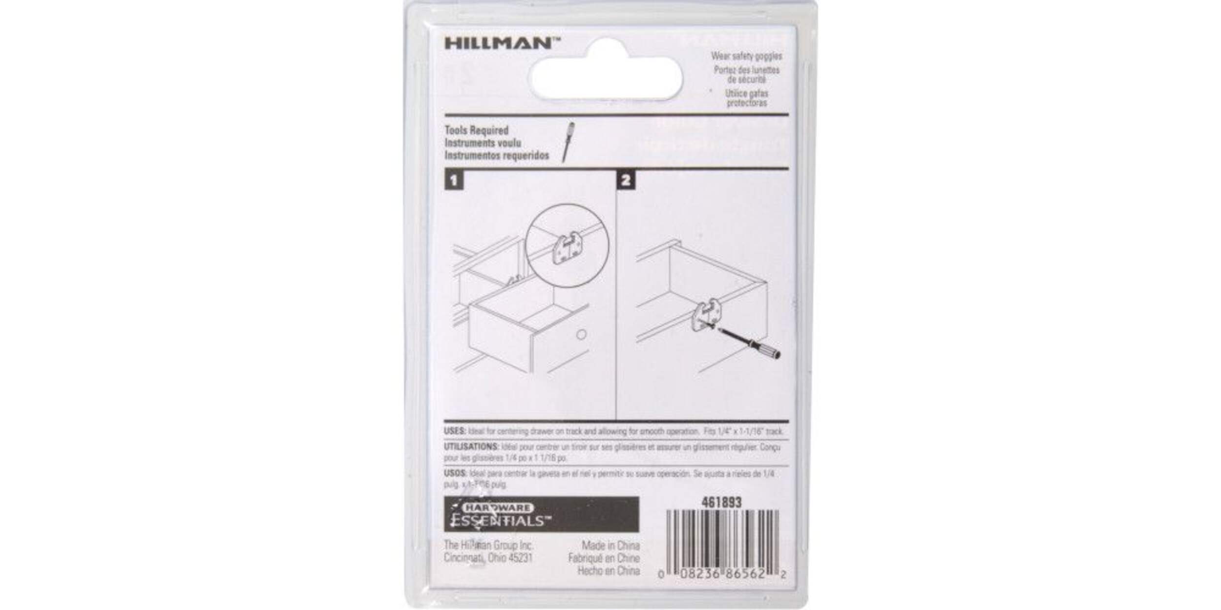 Hardware Essentials Drawer Guides help to center and align the drawer by reducing drawer binding and allowing for smooth operation. Idea for a 1/4" x 1-1/16" track. Made of a durable plastic material. Packaging comes with instructions and mounting hardware.