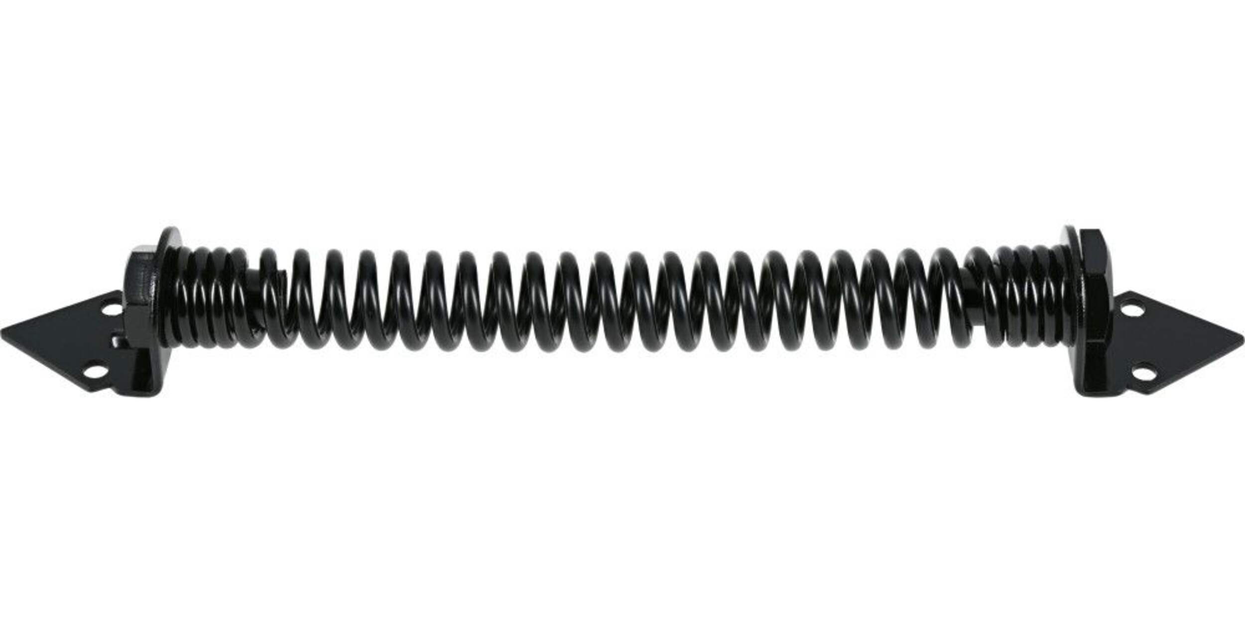 Hardware Essentials Self Closing Adjustable Tension Gate Spring Black (12") features an adjustable gate spring. Great for outdoor applications such as pools, patios, and gates. Has a decorative finish to match with other hardware.