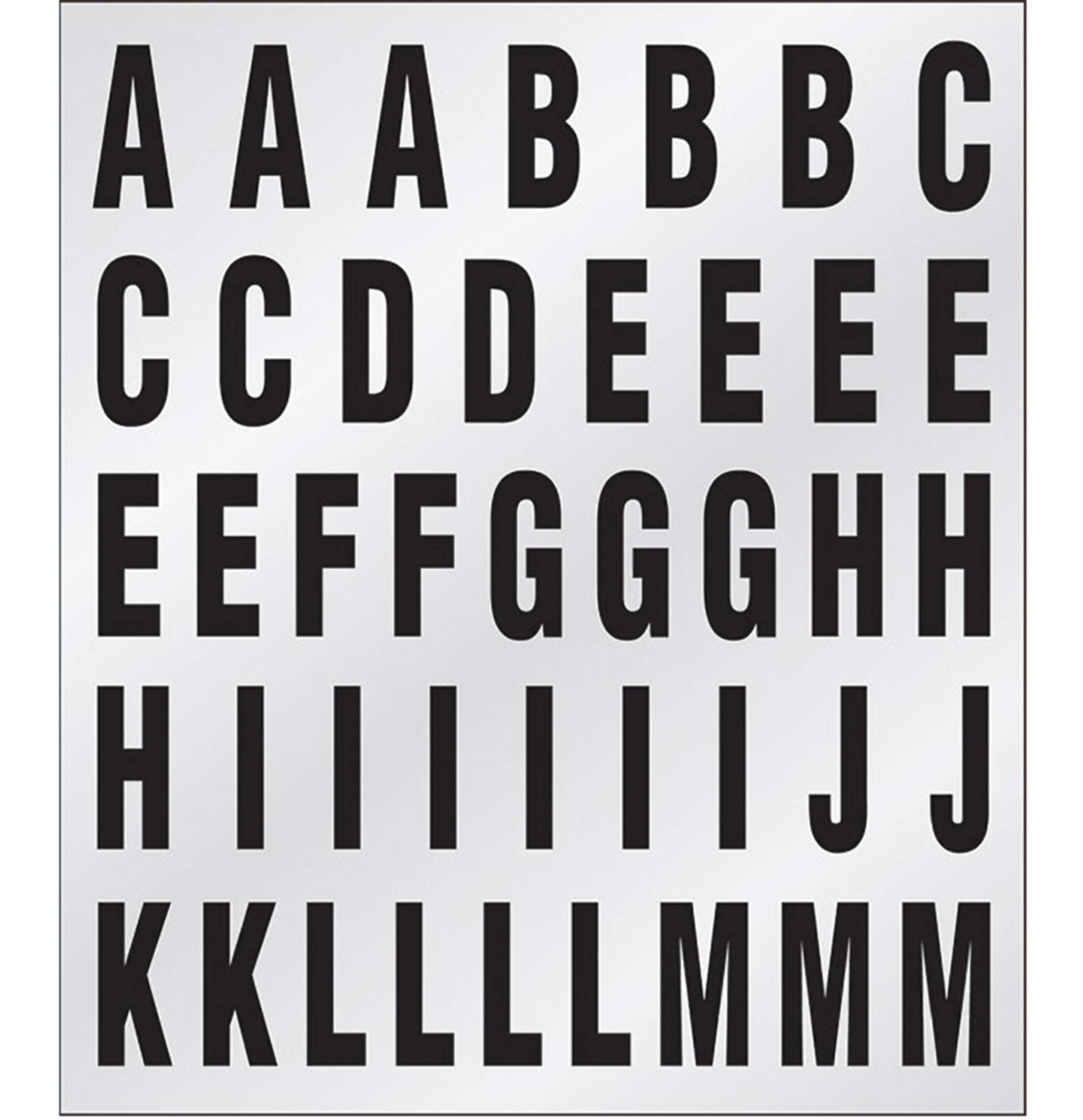 Letter and number size: 1" (2.54 cm)