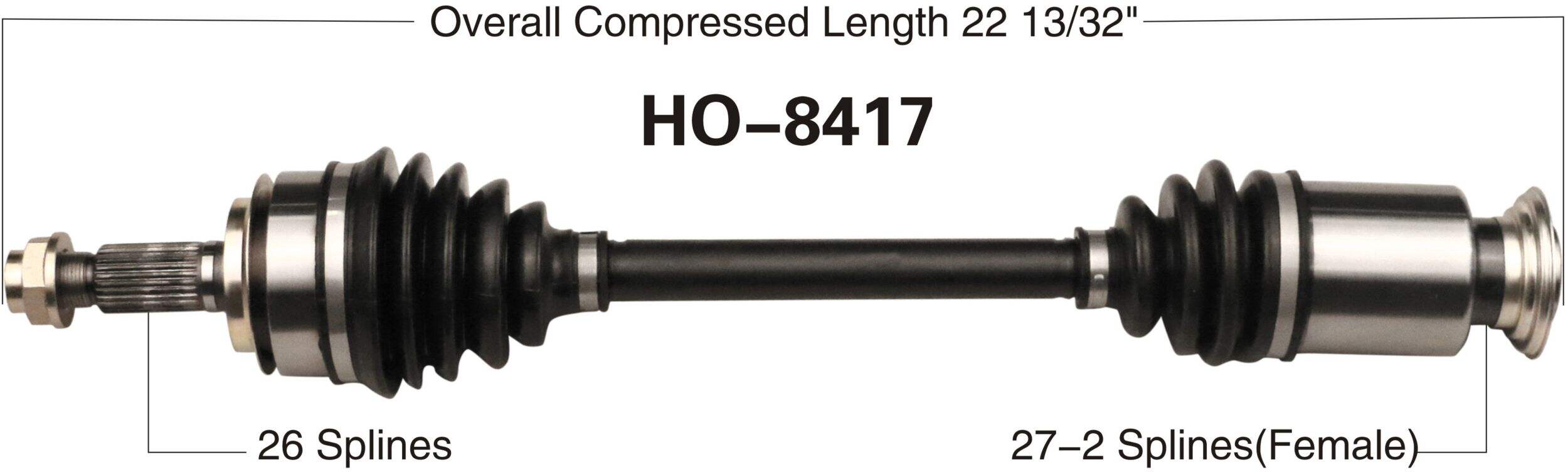The TrakMotive New Premium CV Axle Shaft, Parts AD - JG, is meticulously crafted from top-tier materials to withstand the harshest conditions. This component is up to 20% more robust than OE and features high-performance moly grease. It boasts superior neoprene rubber dust boots for enhanced flexibility and durability. Plus, it efficiently operates at different angles and constant rotational speeds without any friction or play. Its new designs undergo rigorous torture tests to ascertain maximum durability. Additionally, the joints are filled with high-temperature, high-performance moly grease.