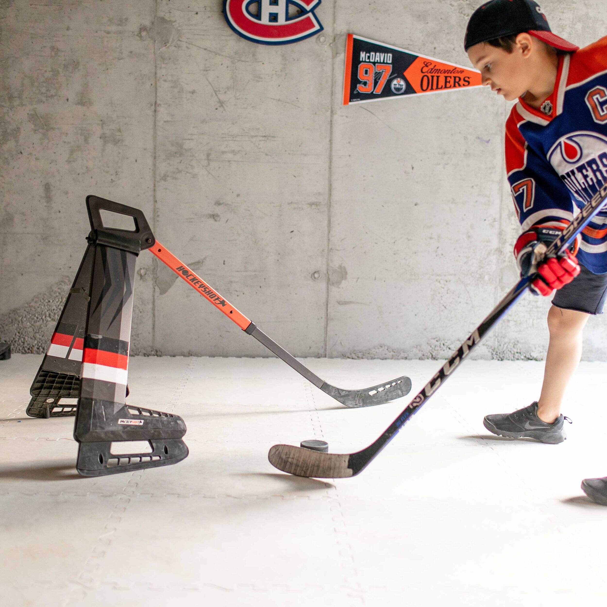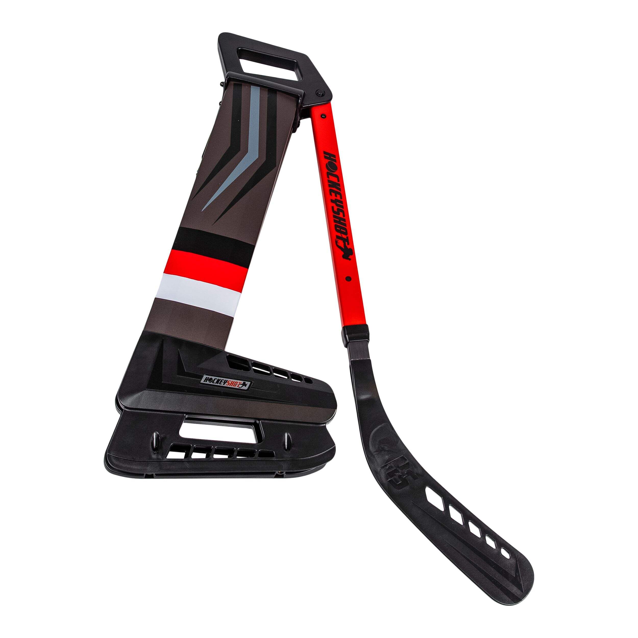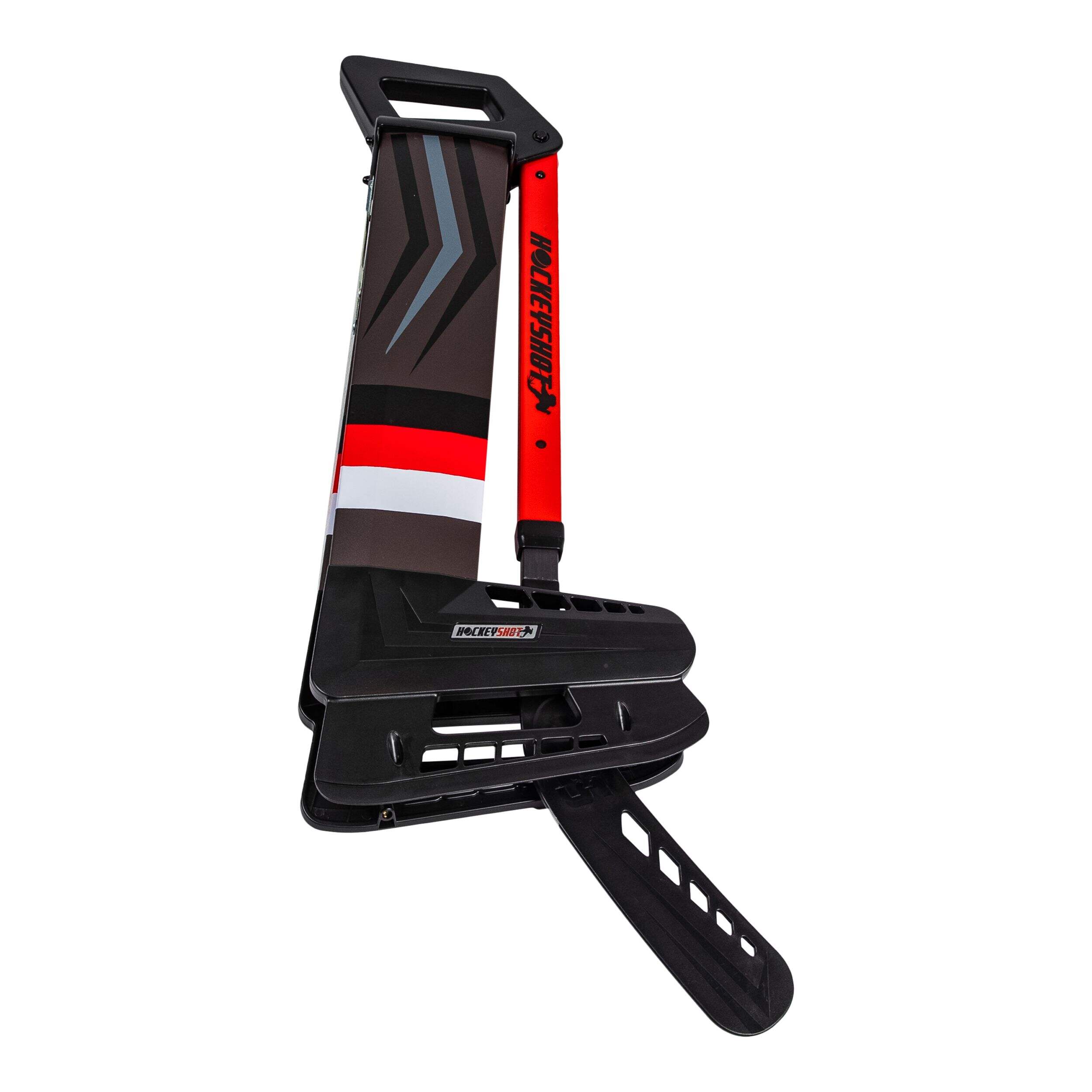 You can't beat the goalie if you can't beat the defender in front. That's what the foldable HockeyShot Extreme Defender is for. Shaped like a pair of skates and the blade of a stick with high impact plastic and aluminum, you can practice getting around (or through) your opponent. You can even lift the stick up to simulate face-offs and takeaways!