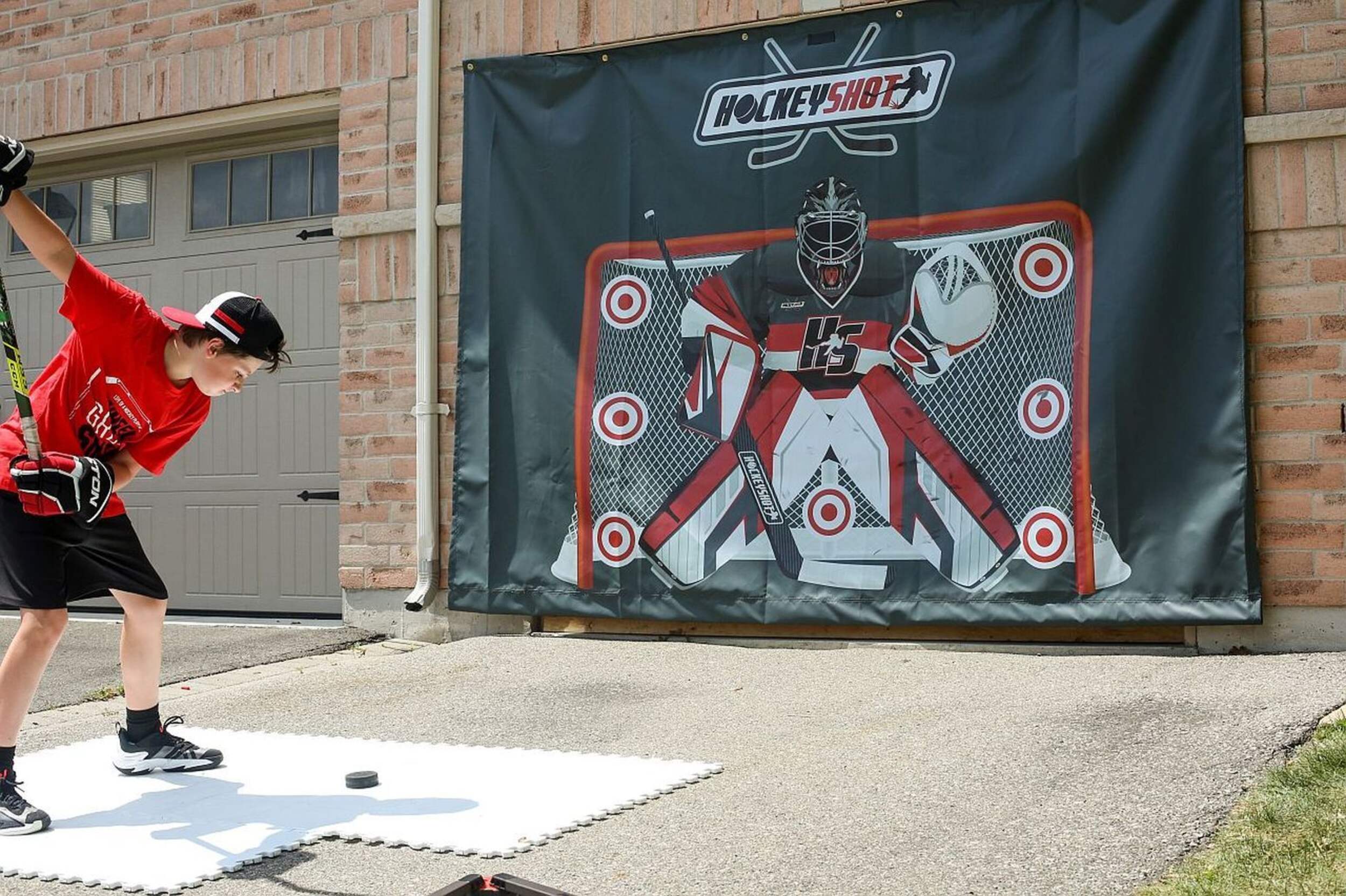 HockeyShot Extreme Tarp 2.0 is ideal for tighter spaces as you need less room between the tarp and the wall